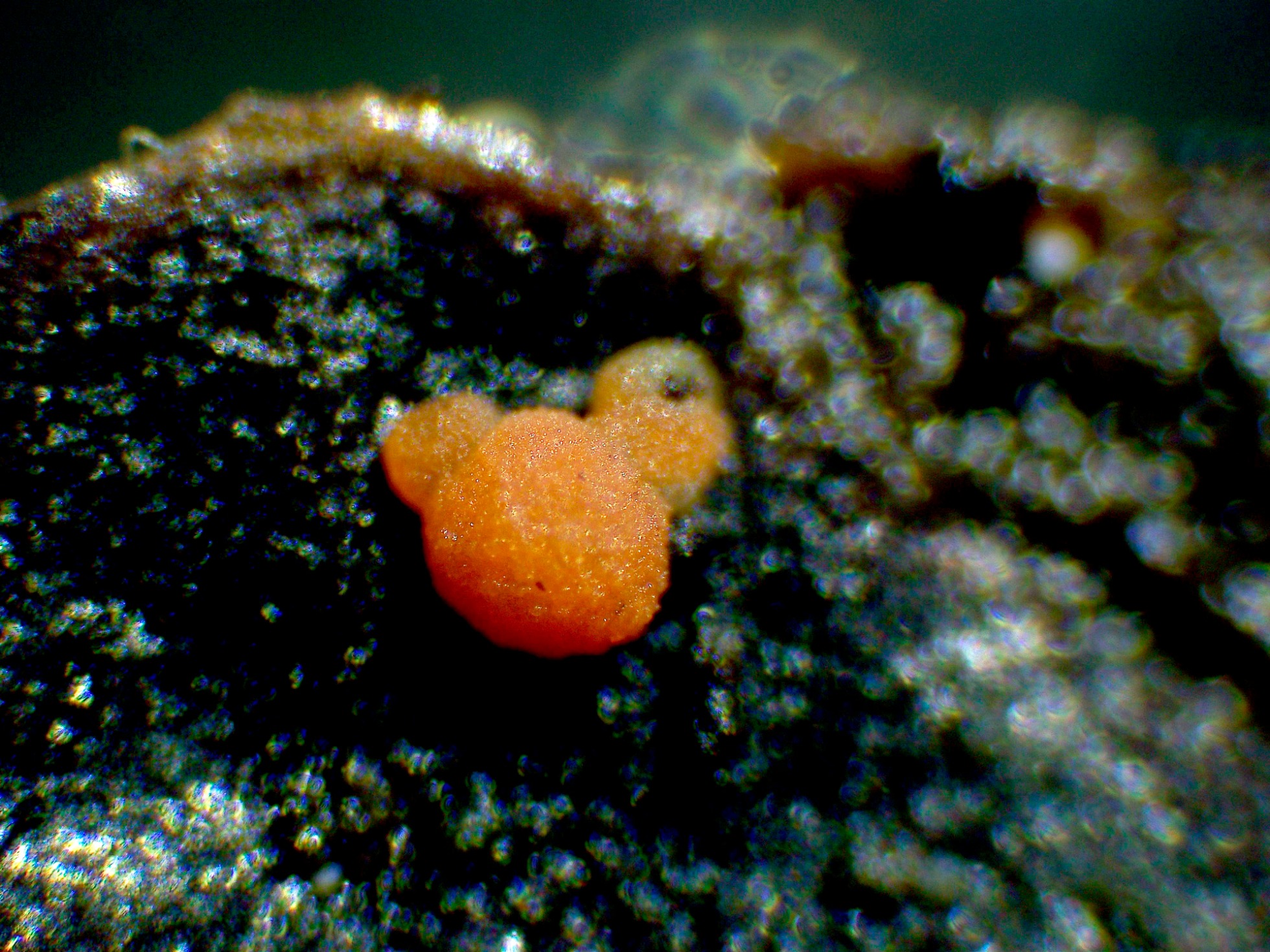Pues si Juan Andrés, en mi investigación ya me había encontrado con tu trabajo, según algunos autores la Pseudobovia benkertii, aunque se consideran hasta la fecha como especies distintas, la sinonimizan con la Boubovia ascoboloides, algo muy parecido a esto lo encontré justo al lado de los apotecios del estudio, añado un enlace: