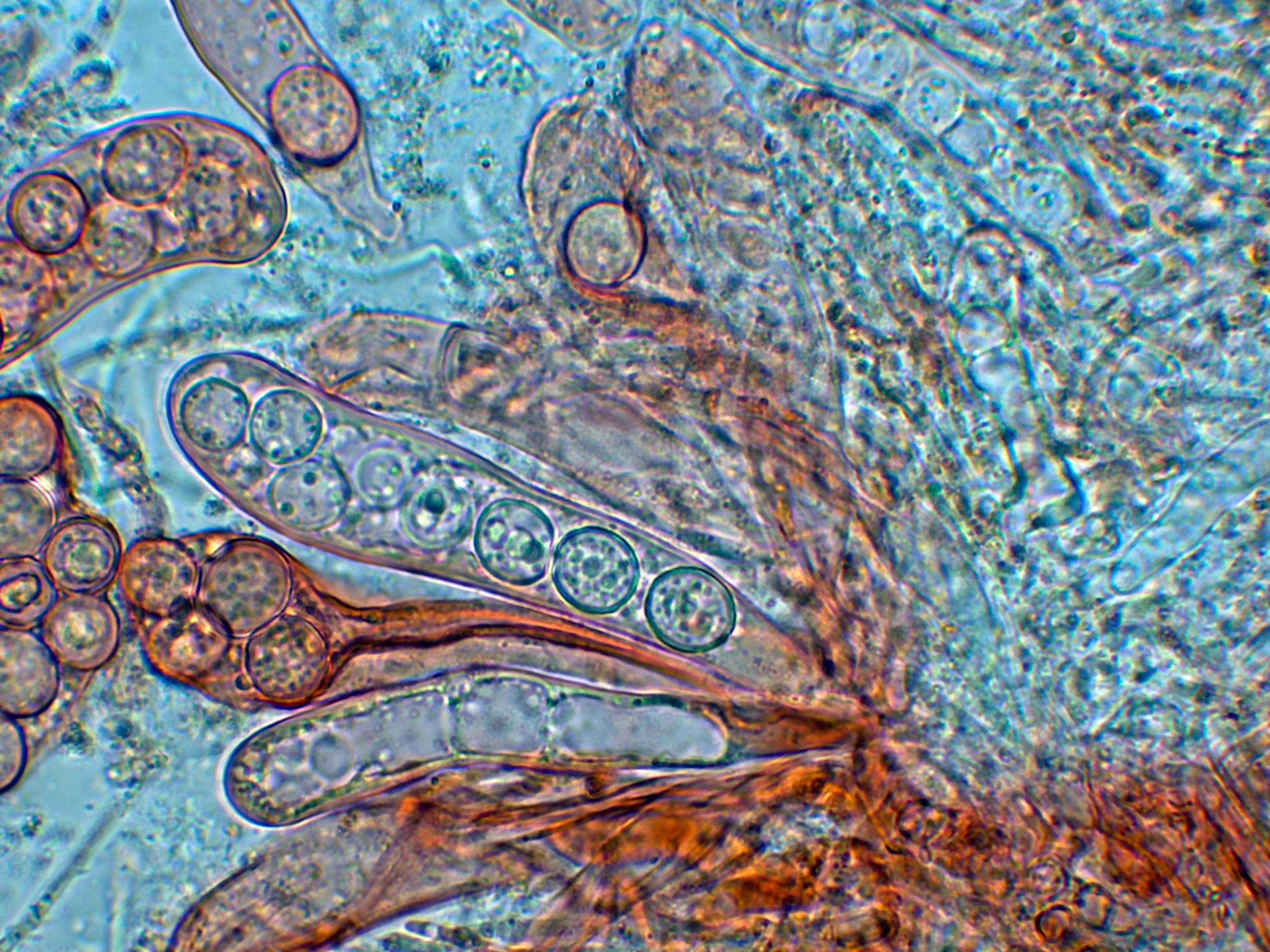Ascos en Reactivo de Melzer.