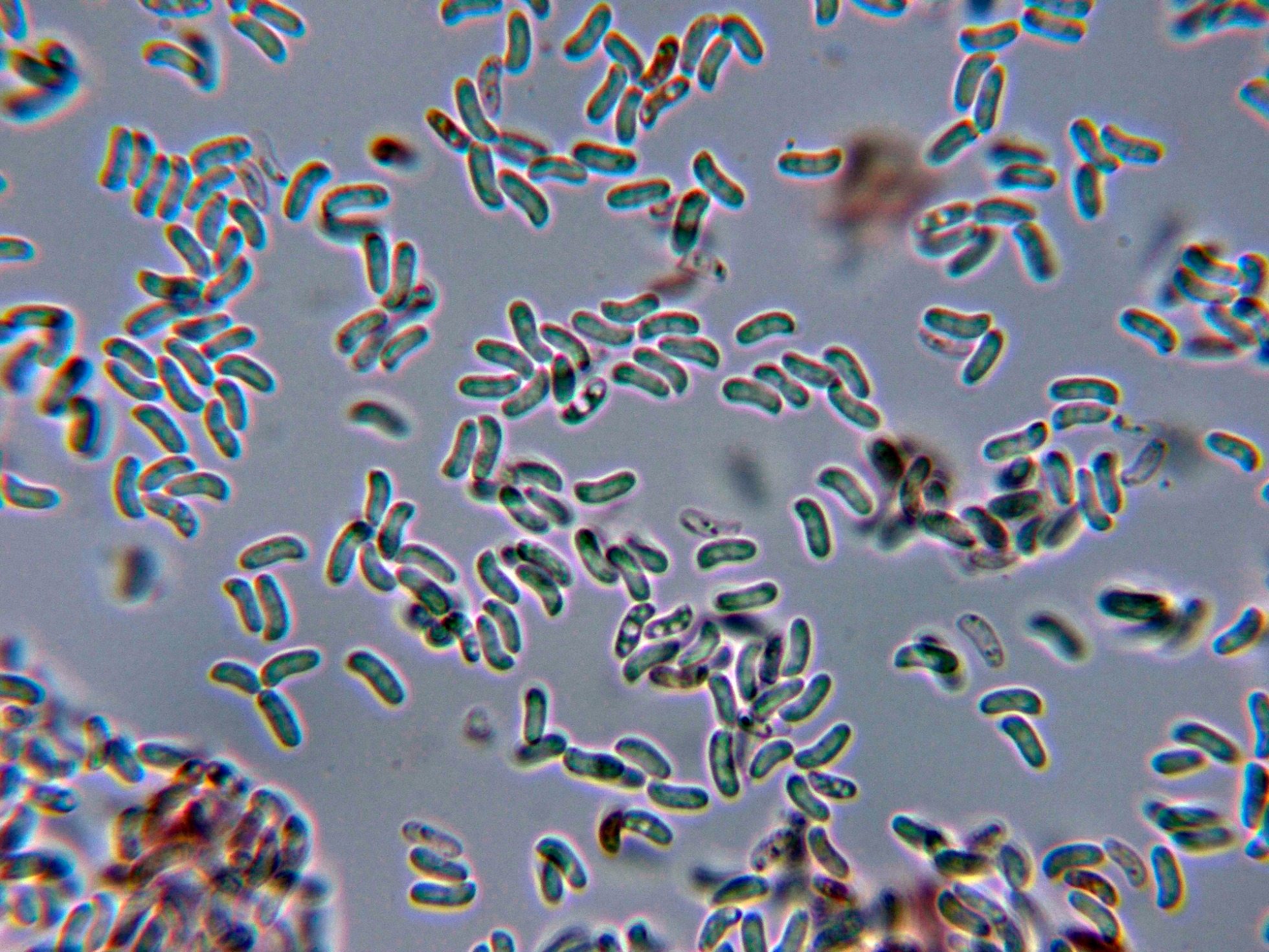 Las esporas en solución de Rojo Congo diluido.