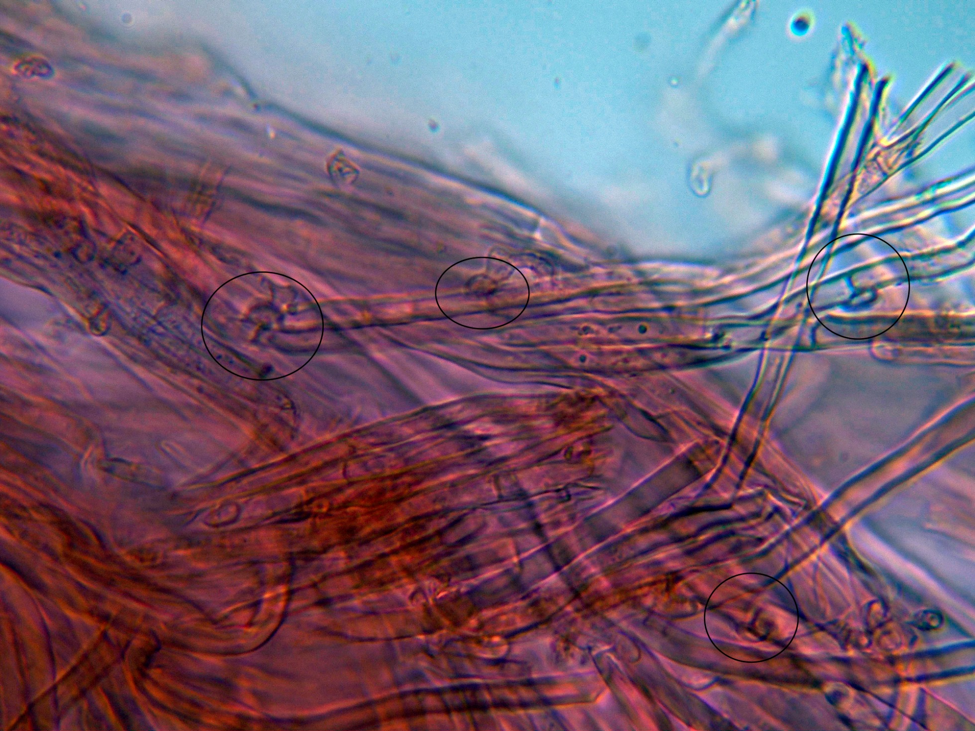 Con sistema hifal dimítico, con las hifas generativas provistas de fíbulas,
