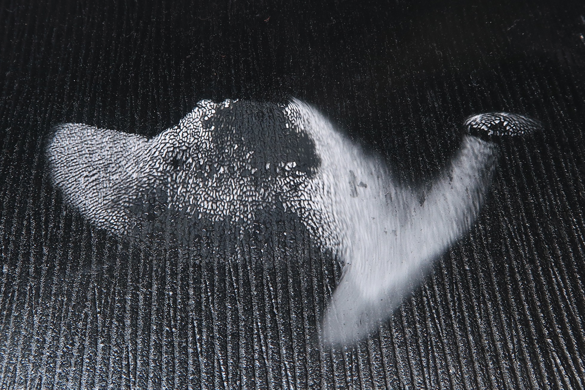 Al depositar el ejemplar sobre la mesa boca abajo, a las dos horas ya había soltado una buena cantidad de esporas, la esporada en masa de color blanco.