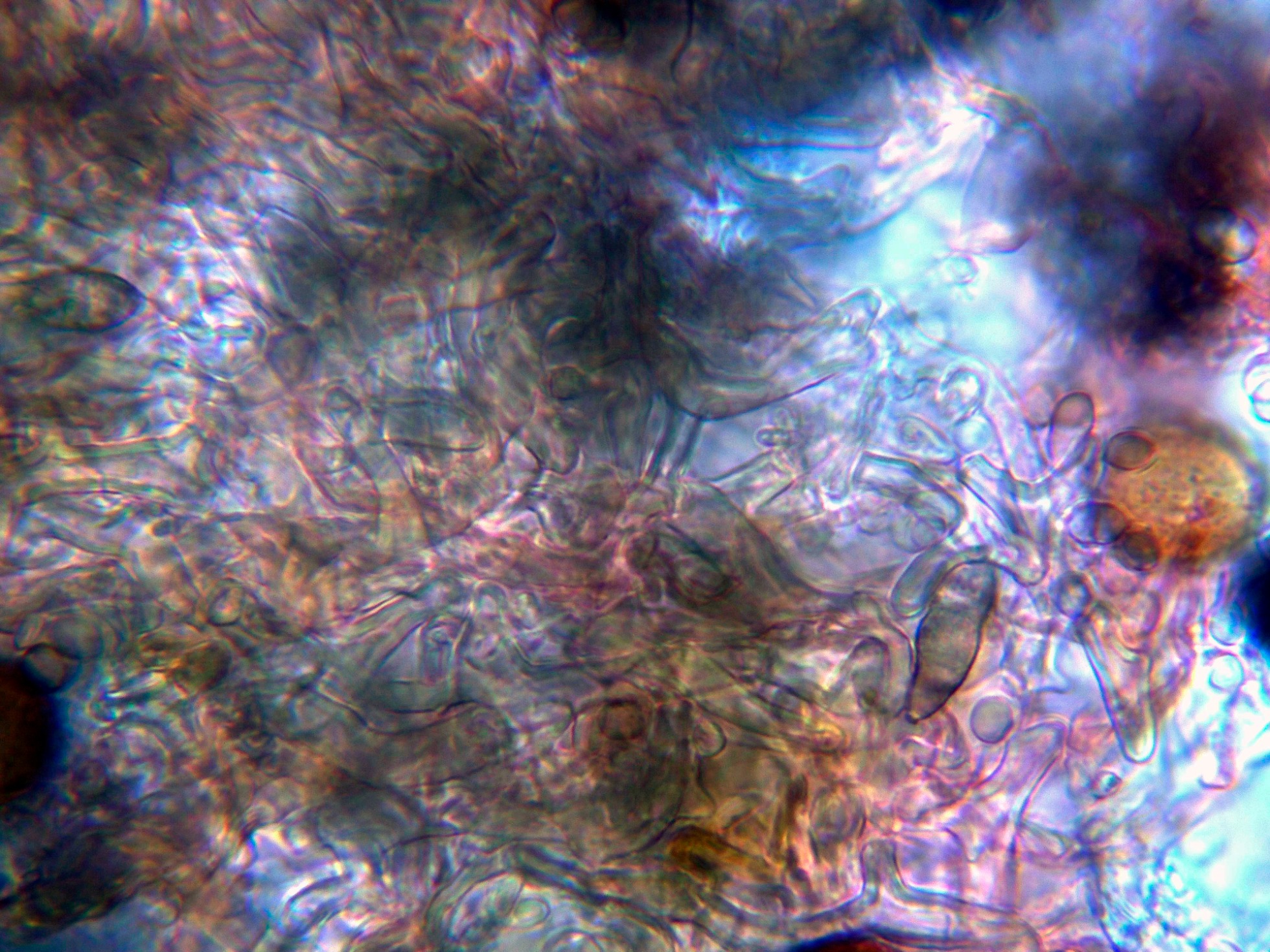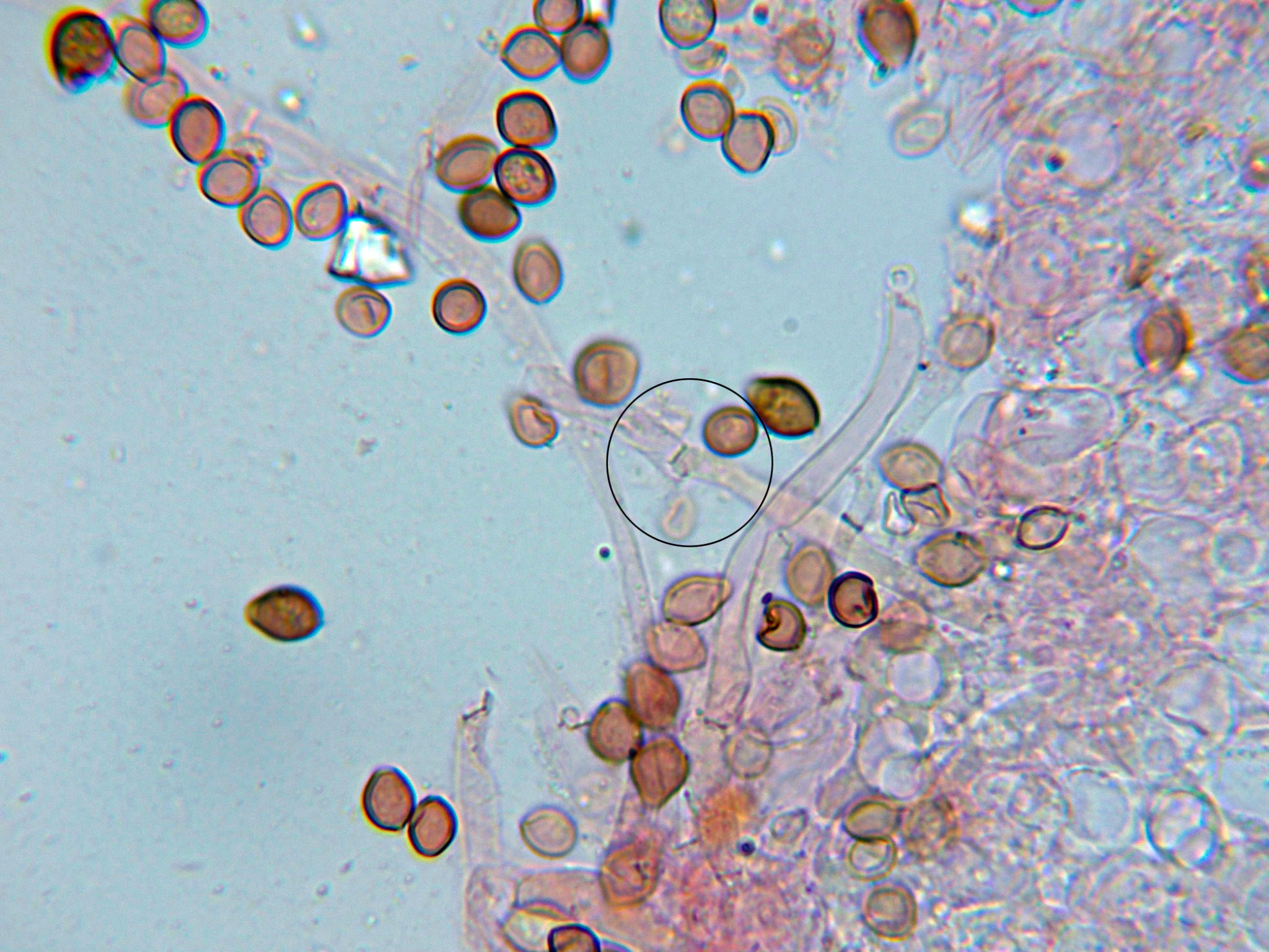Dada su morfología esporal me parecía un Coprinellus de la sección Micacei, pero la microscopía no coincidía para nada con ninguno, afortunadamente gracias a la secuenciación ya pude determinar que sin ninguna duda se trataba de una Coprinopsis, después de reabrir el tema pude constatar que todos los datos obtenidos apuntaban a la: