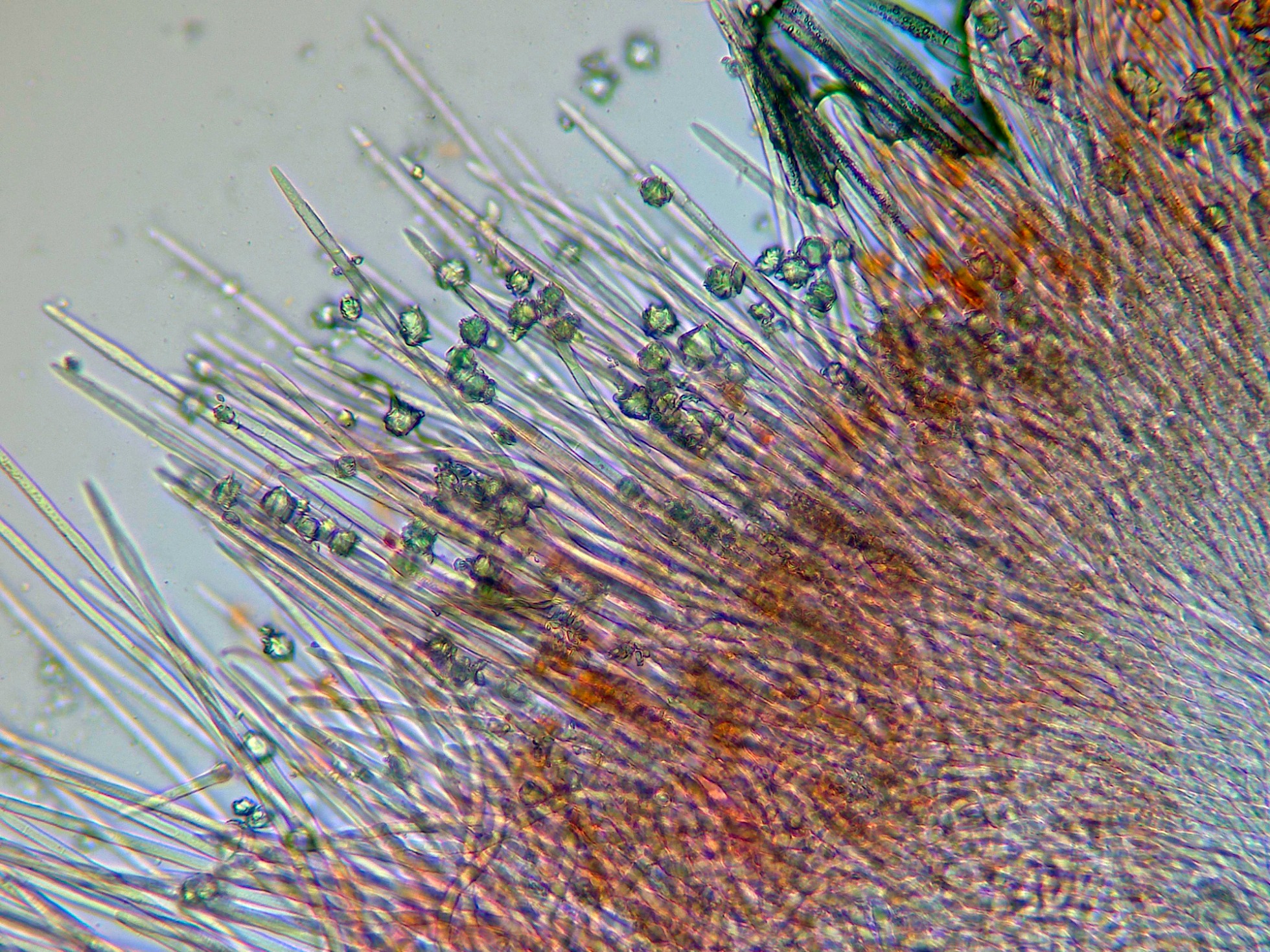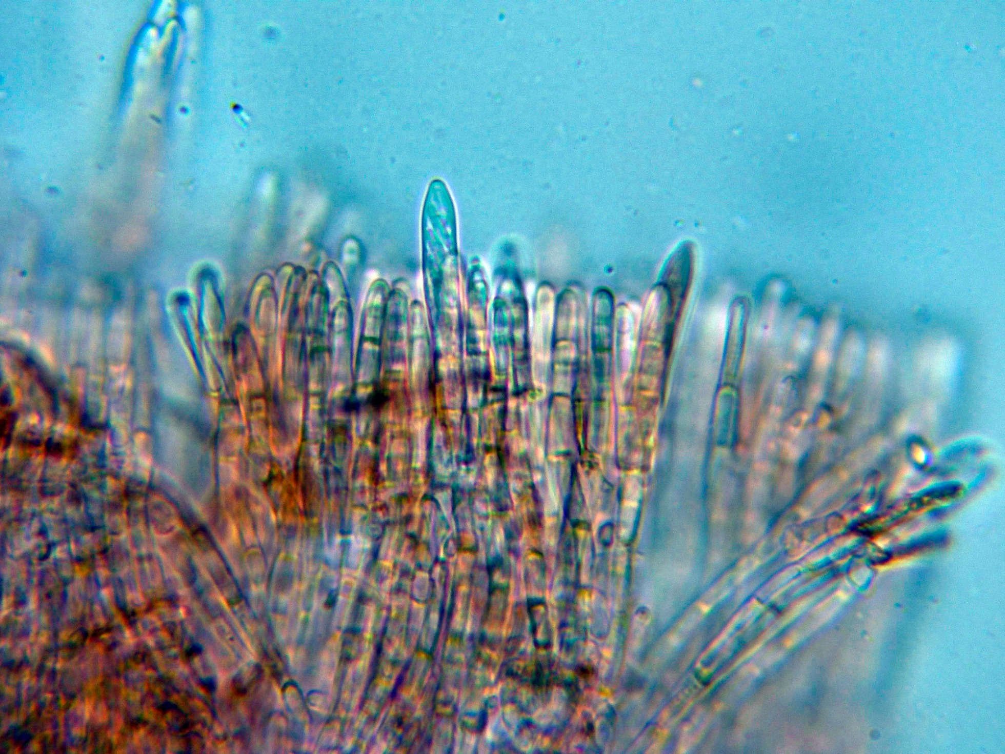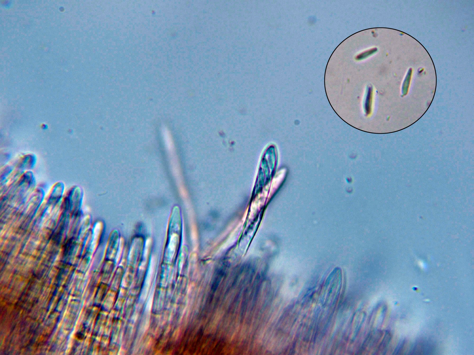 Los ejemplares aun eran inmaduros, con solo unos pocos ascos desarrollados y unas pocas esporas libres.