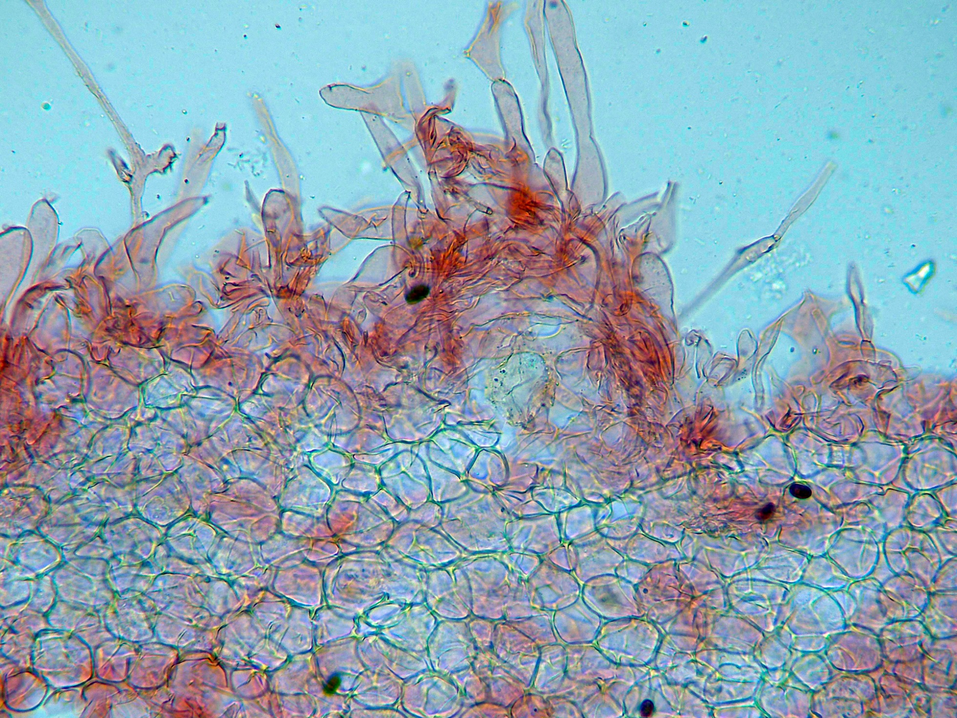 Suprapellis con algunas hifas terminales a modo de pileocistidios.