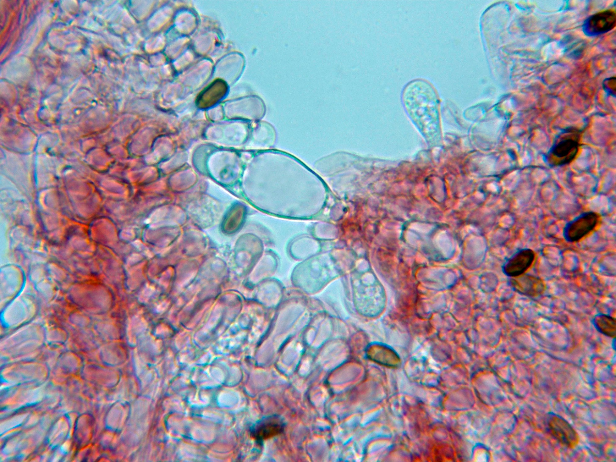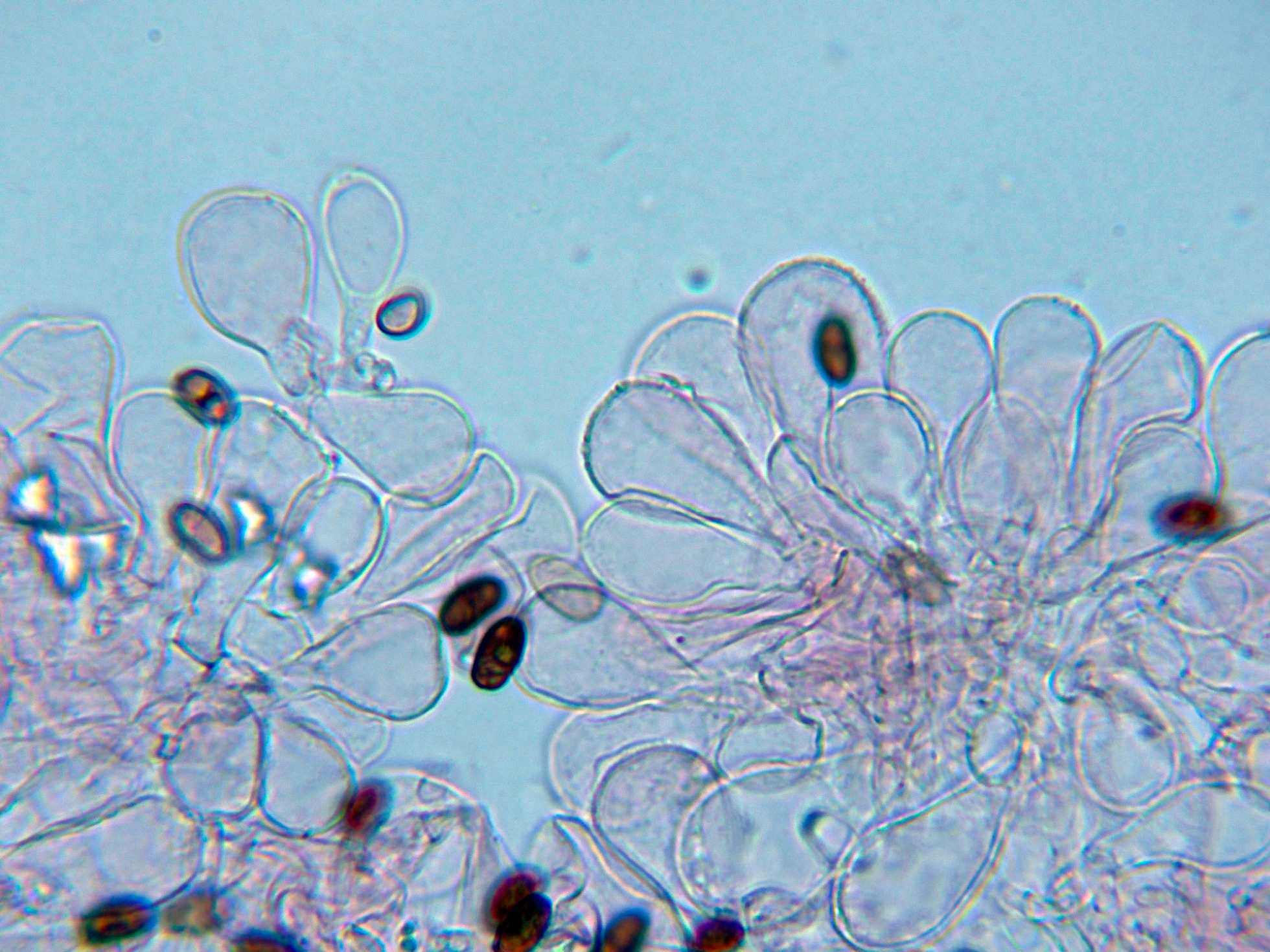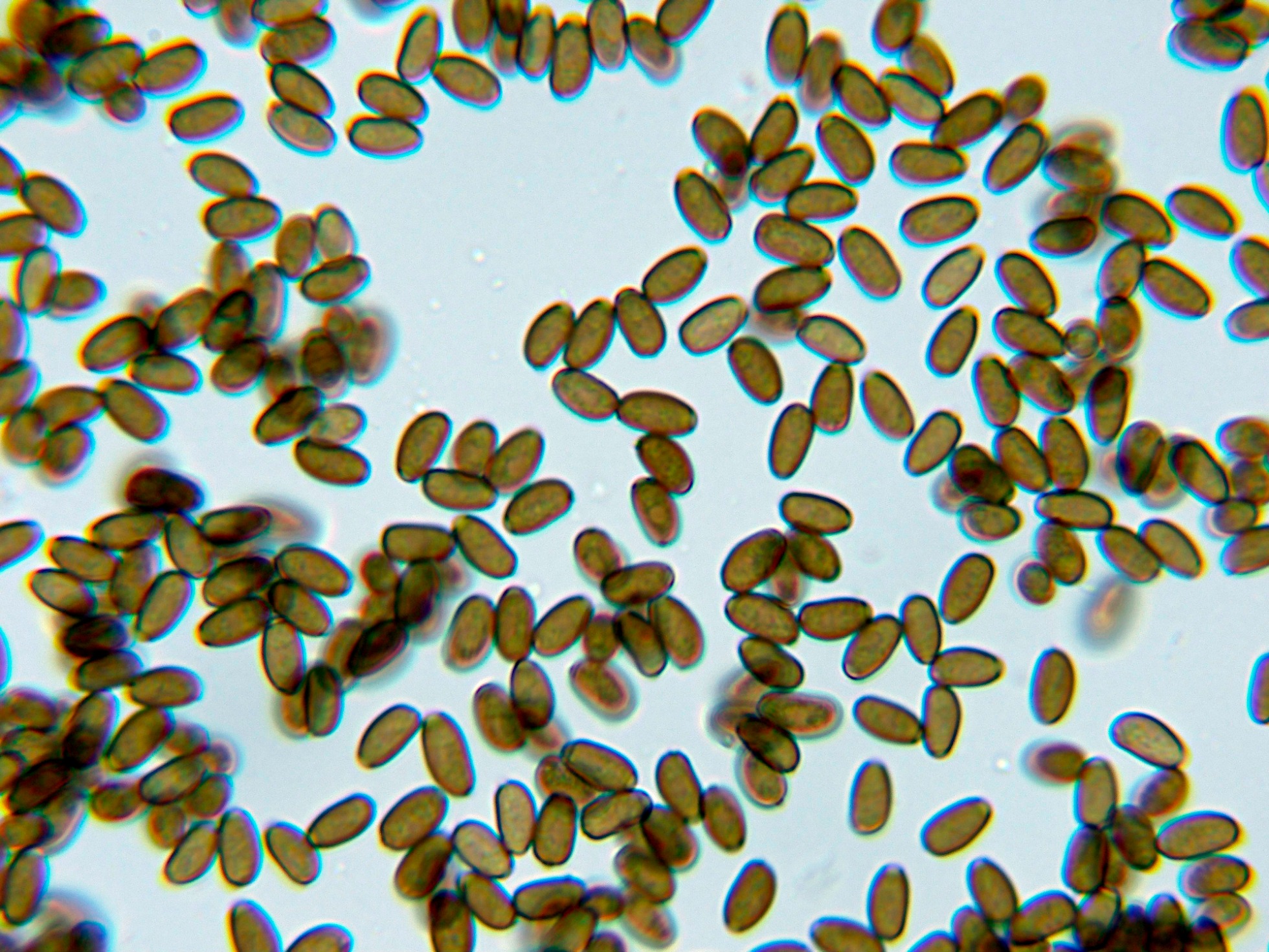 Las esporas en agua, poco pigmentadas teniendo en cuenta el género: