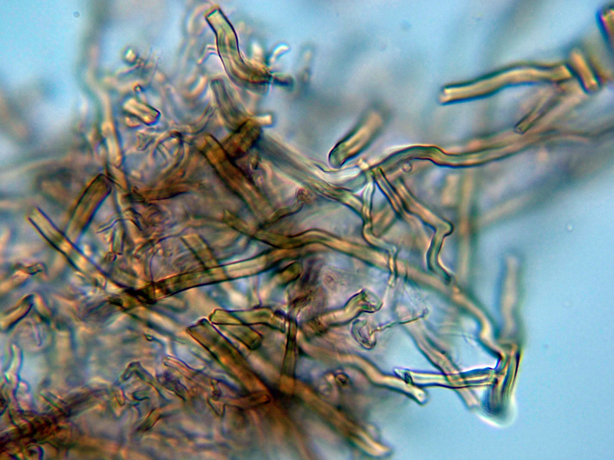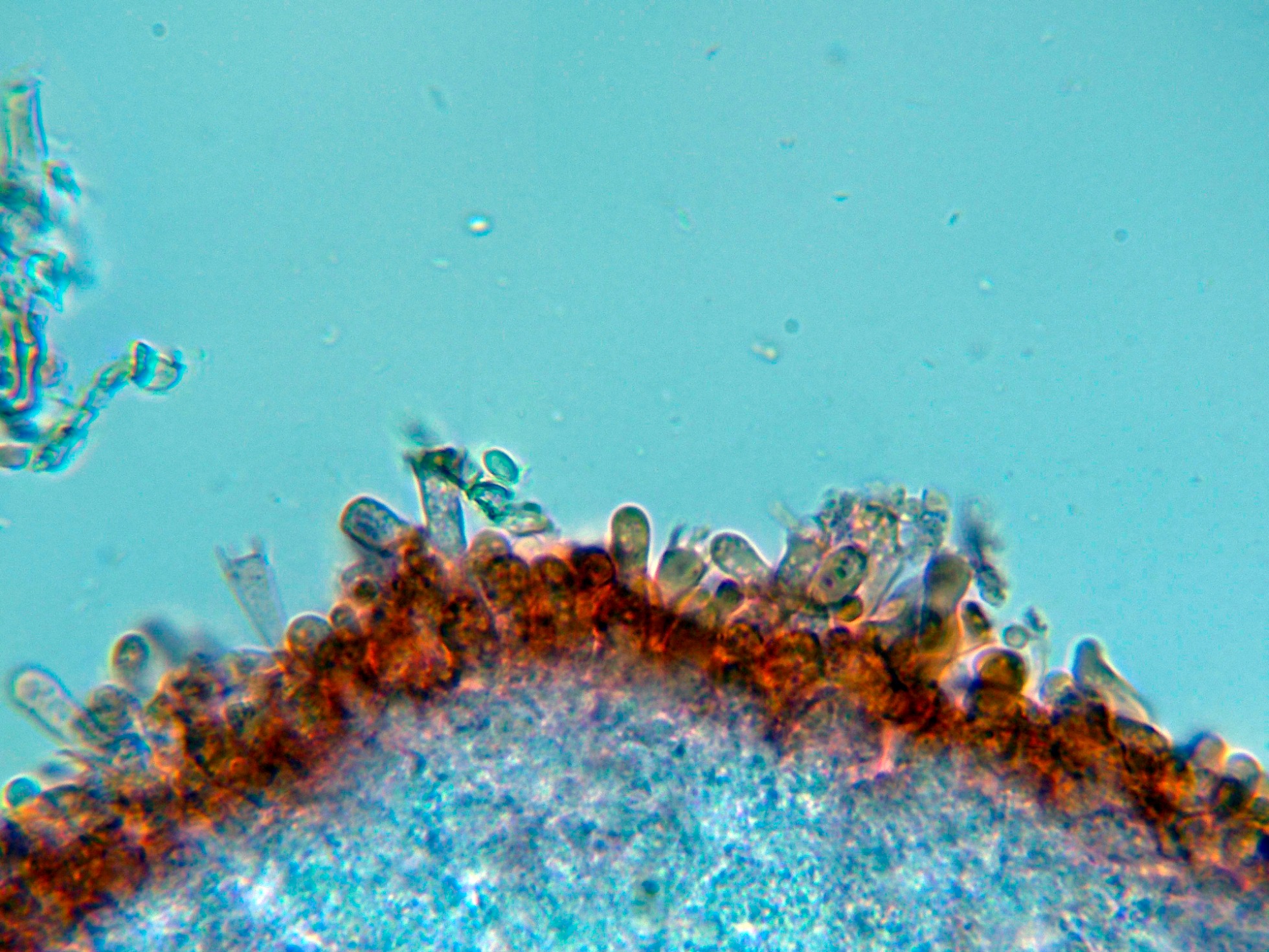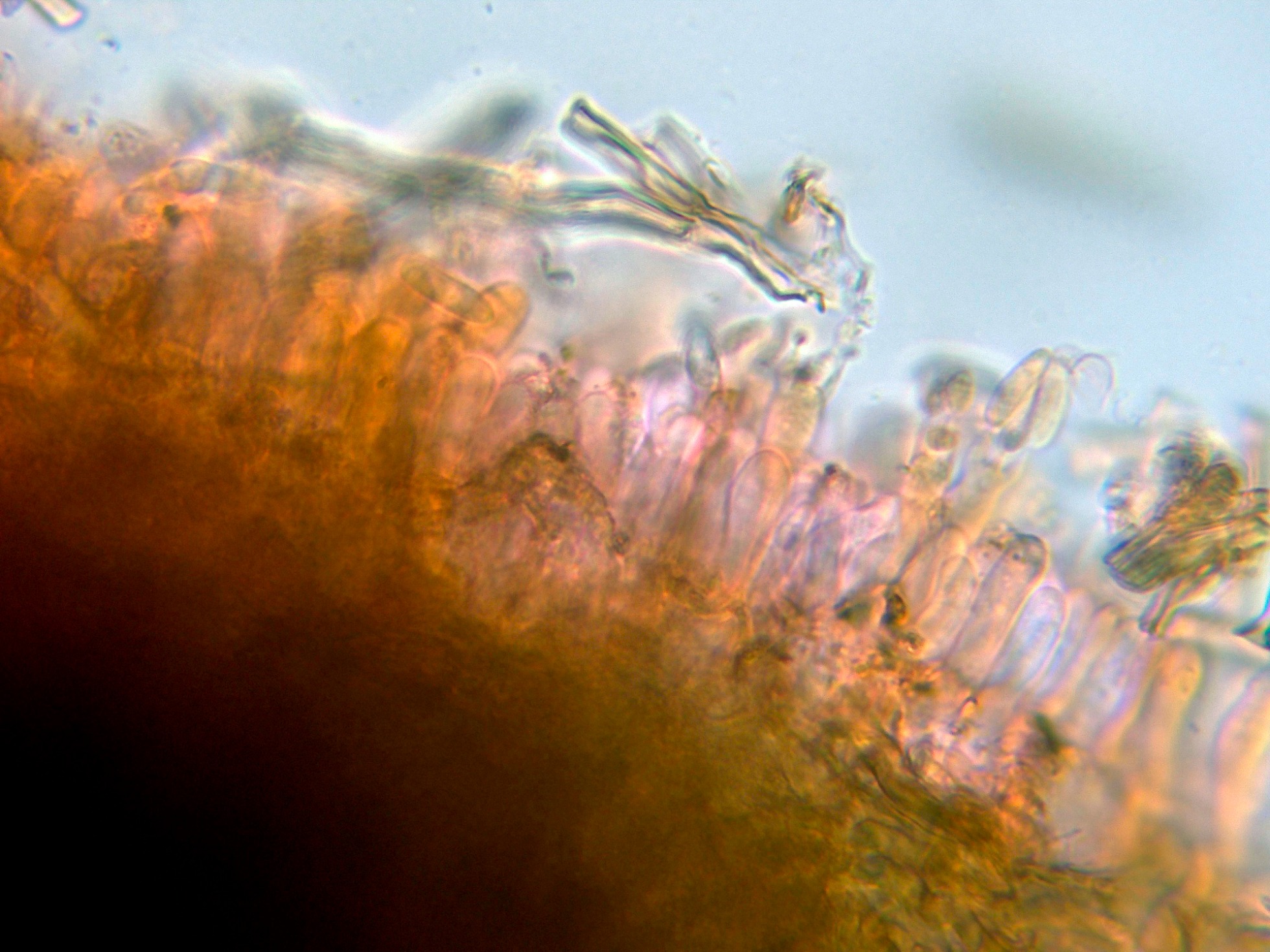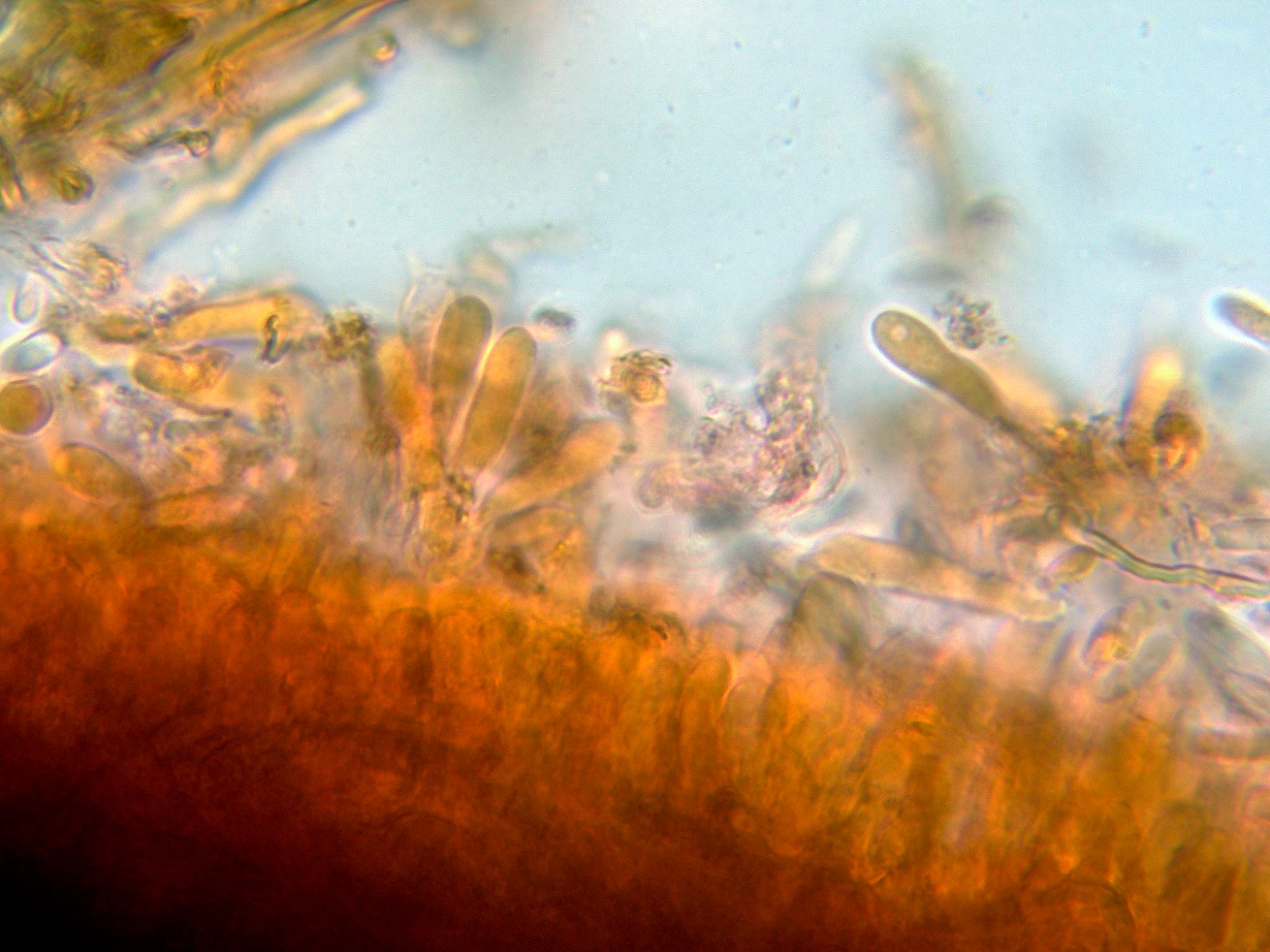 Los basidios muy inmersos en el himenio y de difícil observación.