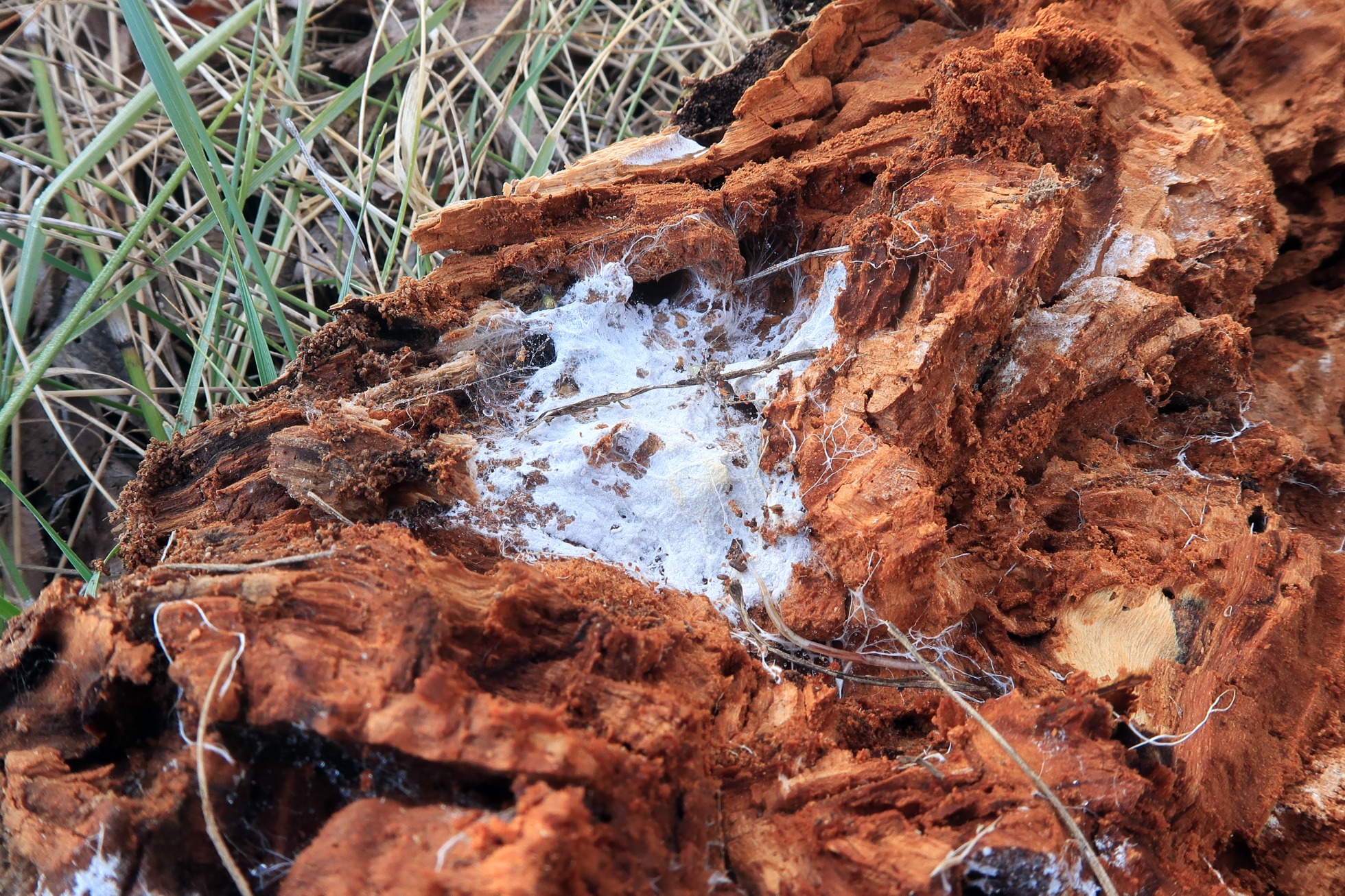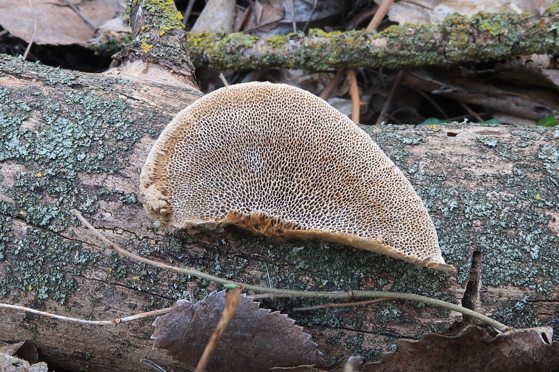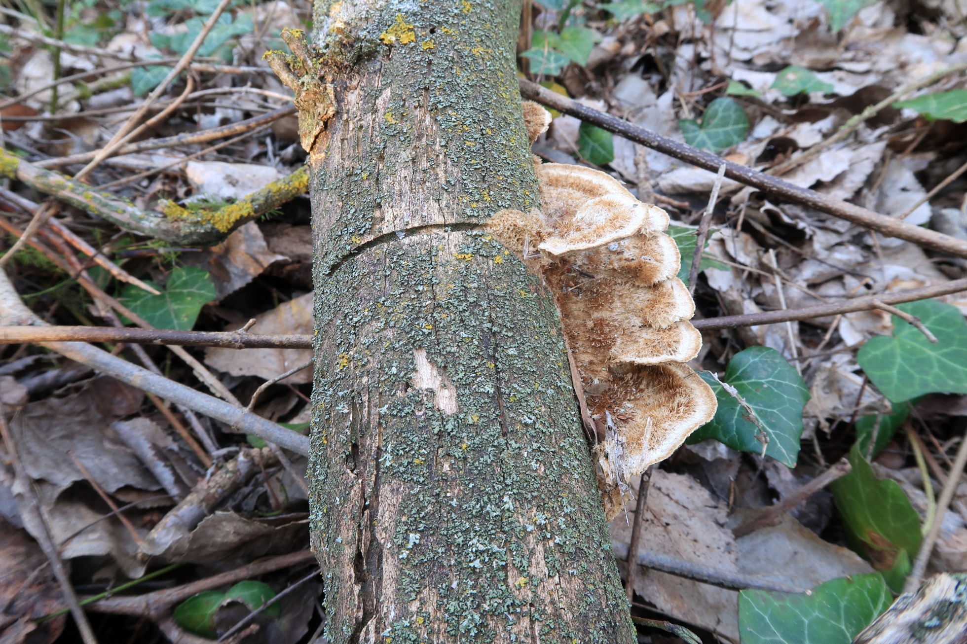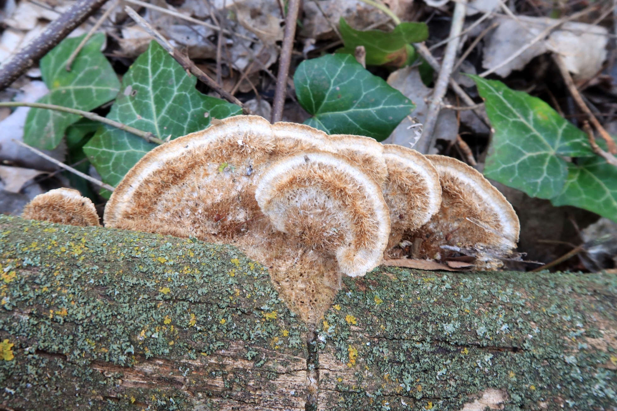 Un Polyporal con sombrero muy hirsuto, carne al corte de color marrón y grandes esporas, la Coriolopsis gallica.