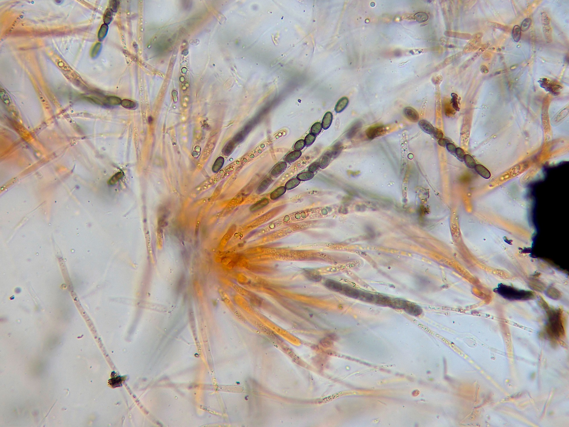 Aunque los ejemplares estaban completamente resecos y parecían muertos, solo tuve que sumergir las muestras en agua por espacio de un par de horas y ponerlos a esporular, en menos de 24 horas ya disponía de una gran cantidad de esporas y su textura era ya muy flexible, lo que me facilitaba su estudio.
