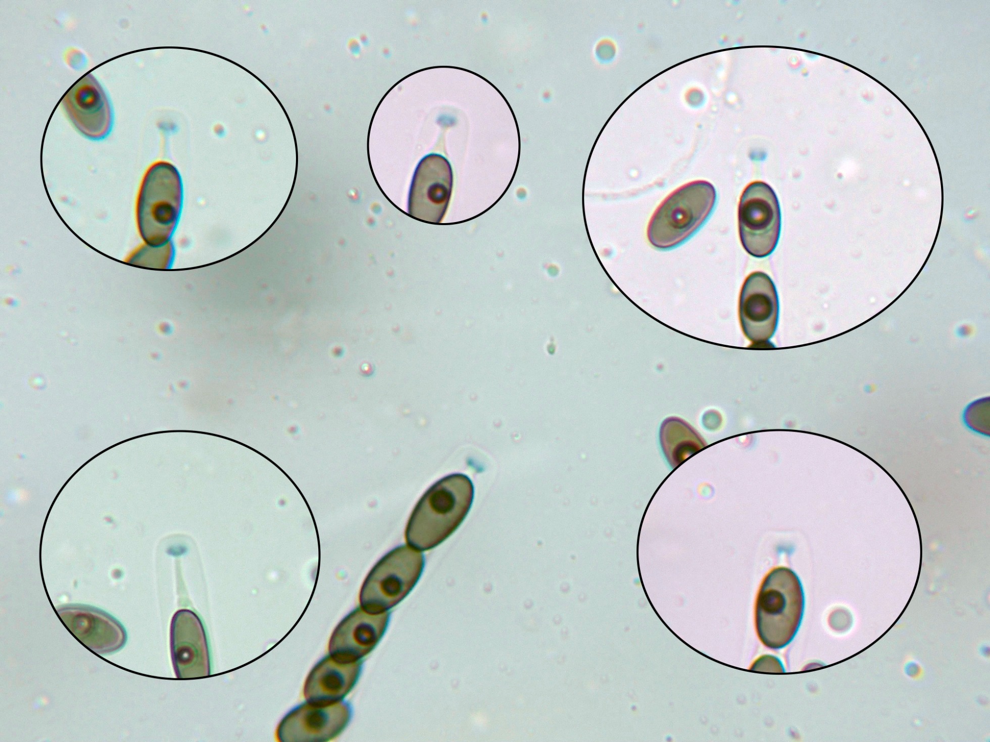 Las esporas en agua, en menos de 24 horas muchas de ellas ya habían empezado a germinar.