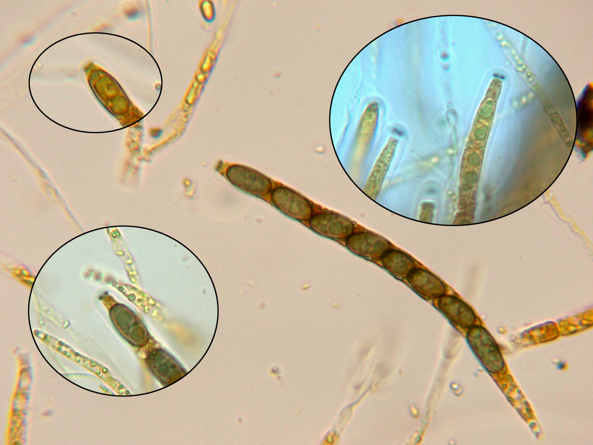Y por último una Nemania, prácticamente idéntica a la Nemania serpens que he presentado recientemente, pero con reacción claramente amiloide de su aparato apical, para algunos Nemania colliculosa, según Index Fungorum una simple variedad de la Nemania serpens, la Nemania serpens var. colliculosa.