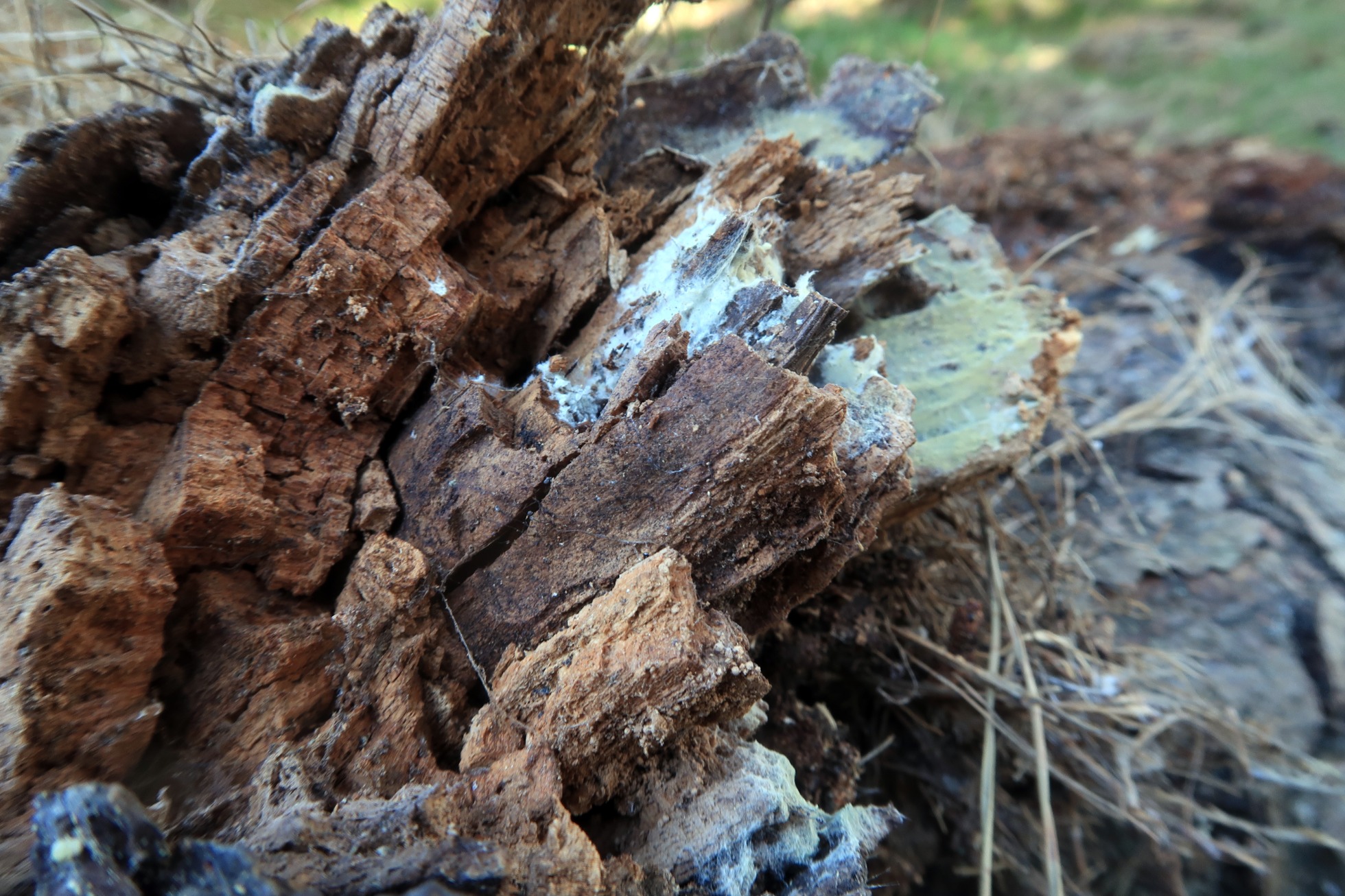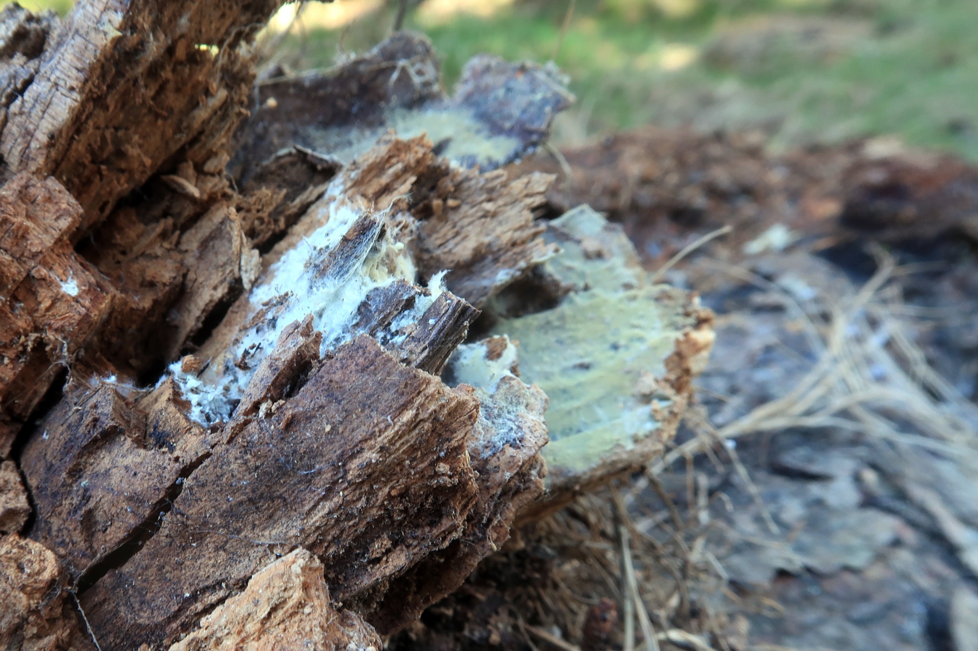 Corticial sobre el tronco en el punto de recogida, parecía presentar un color crema, sin tonos verdosos claramente apreciables.