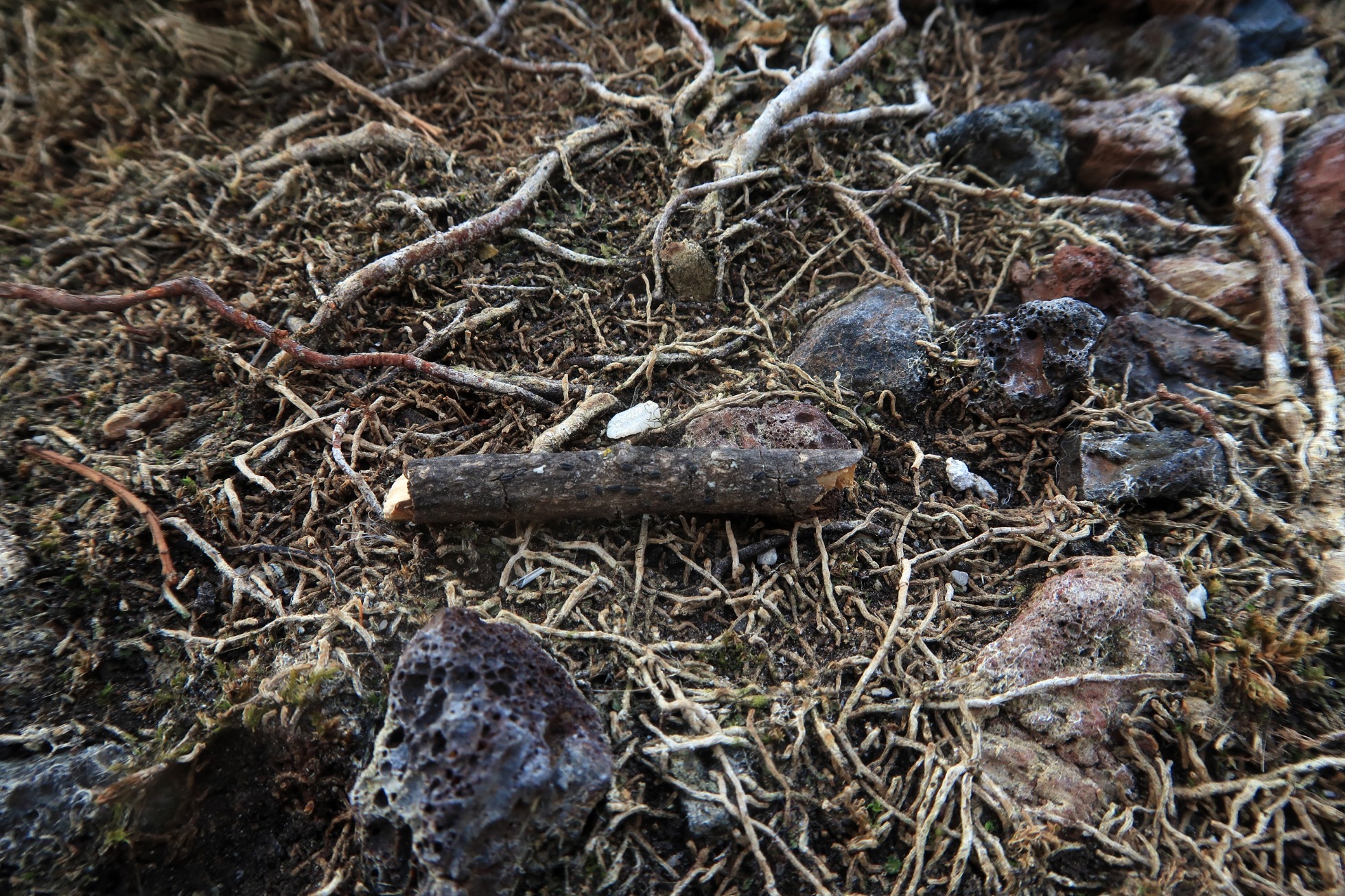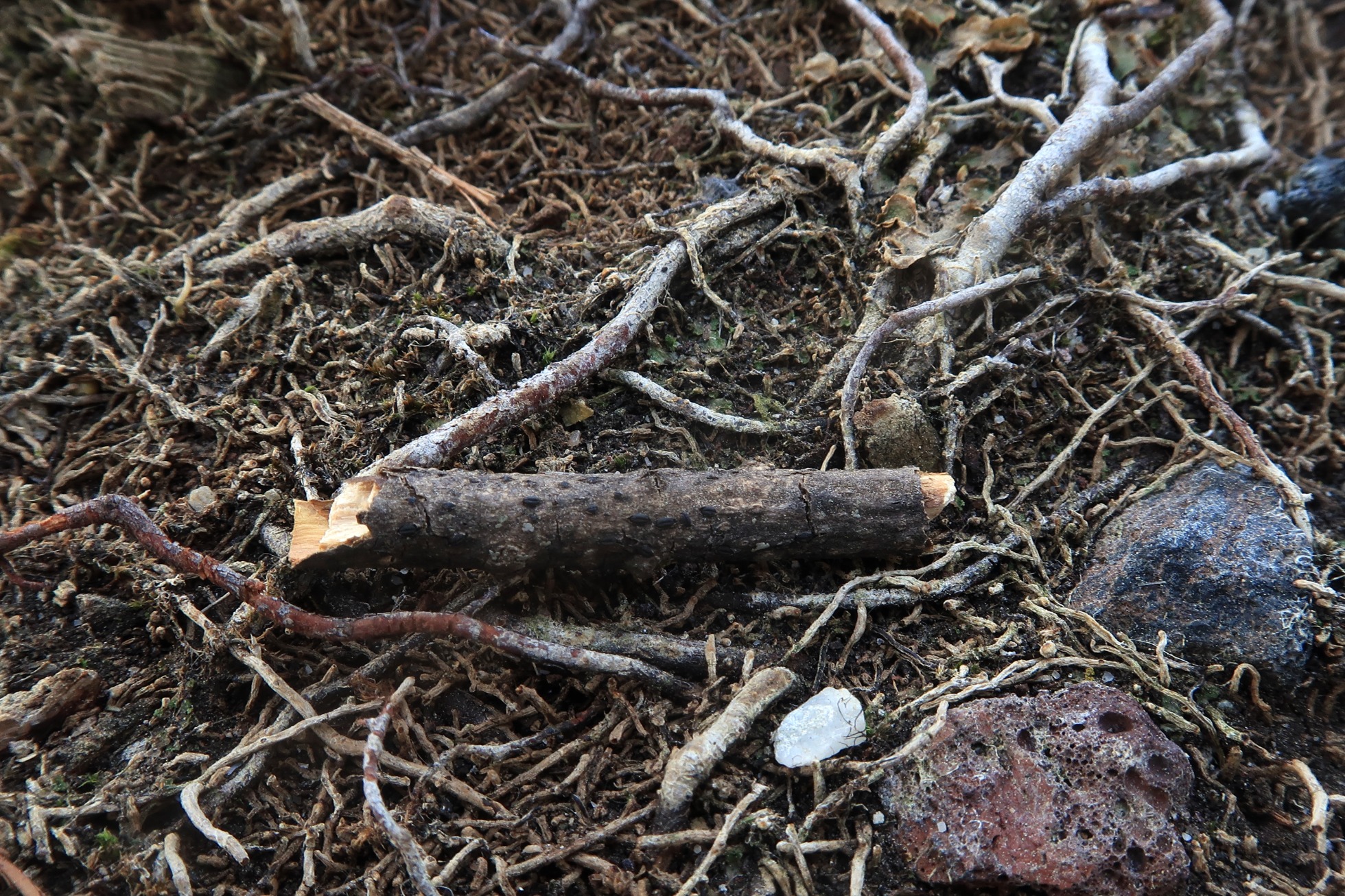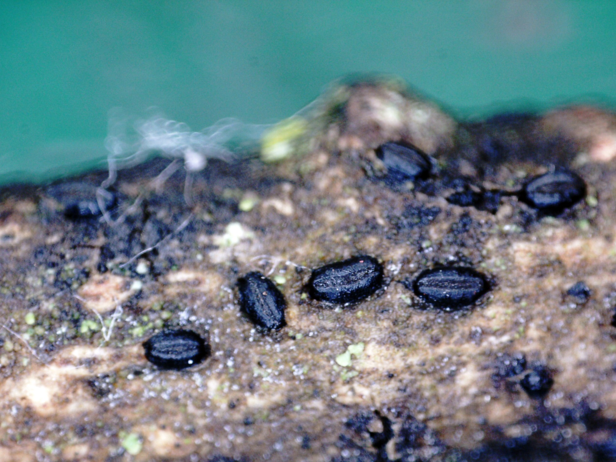 Un diminuto Dothideomyceto fotografiado el pasado 7 de Abril (Viernes Santo) sobre un fino tronco de planifolio en soto fluvial.