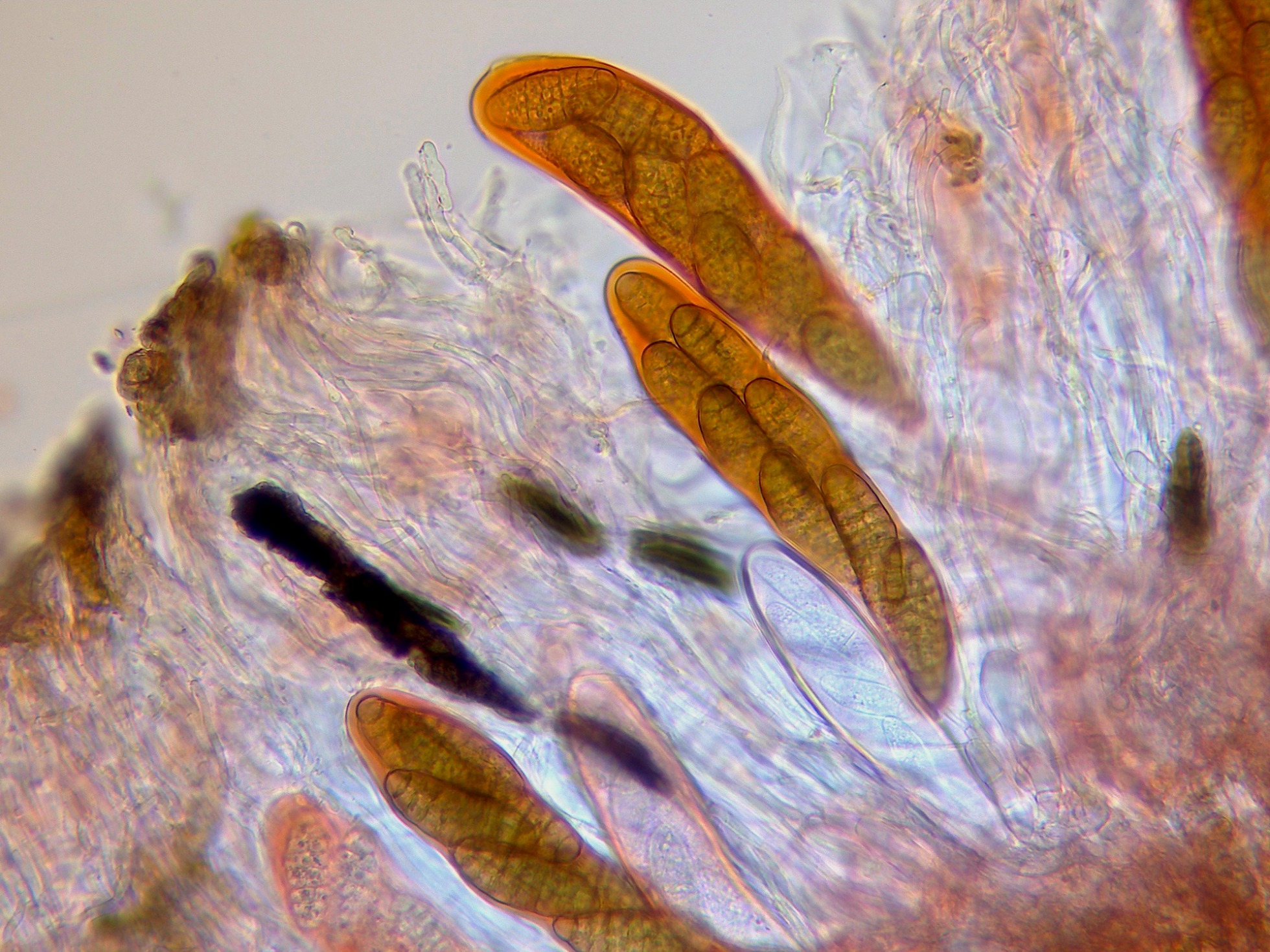 Hysterographium fraxini (Pers.) De Not. Microscopía.