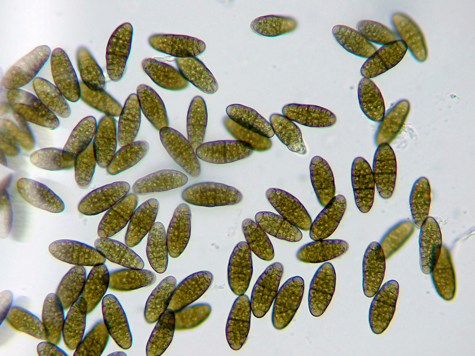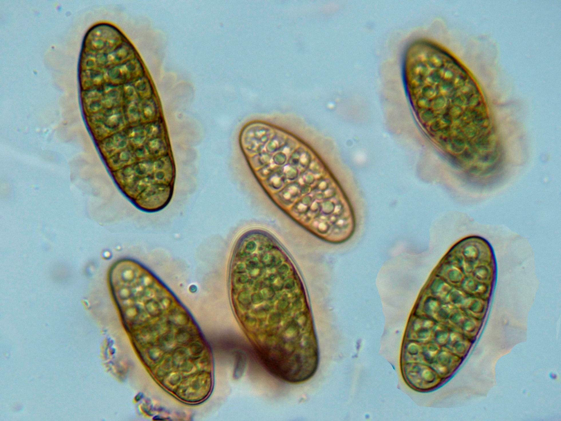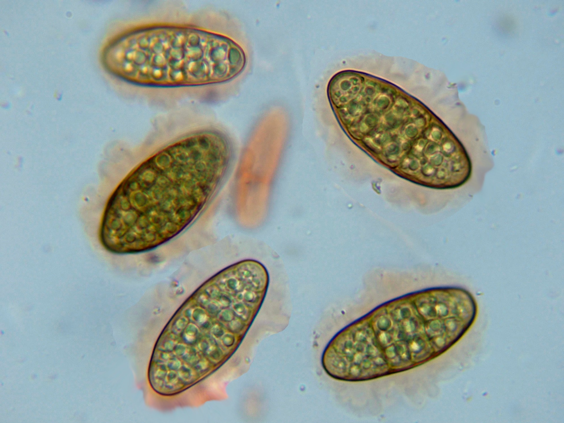 Las esporas en agua a 1000 aumentos.