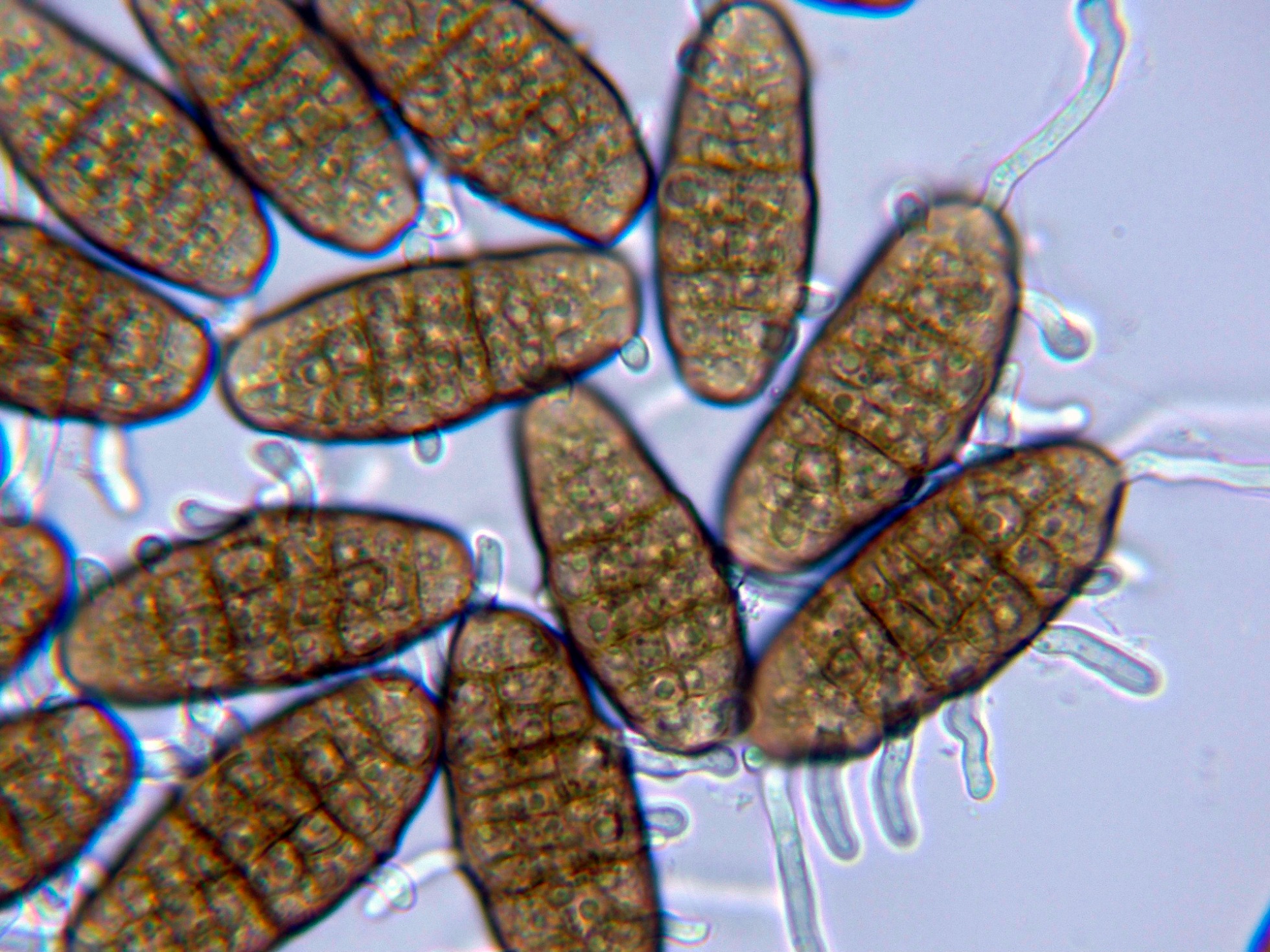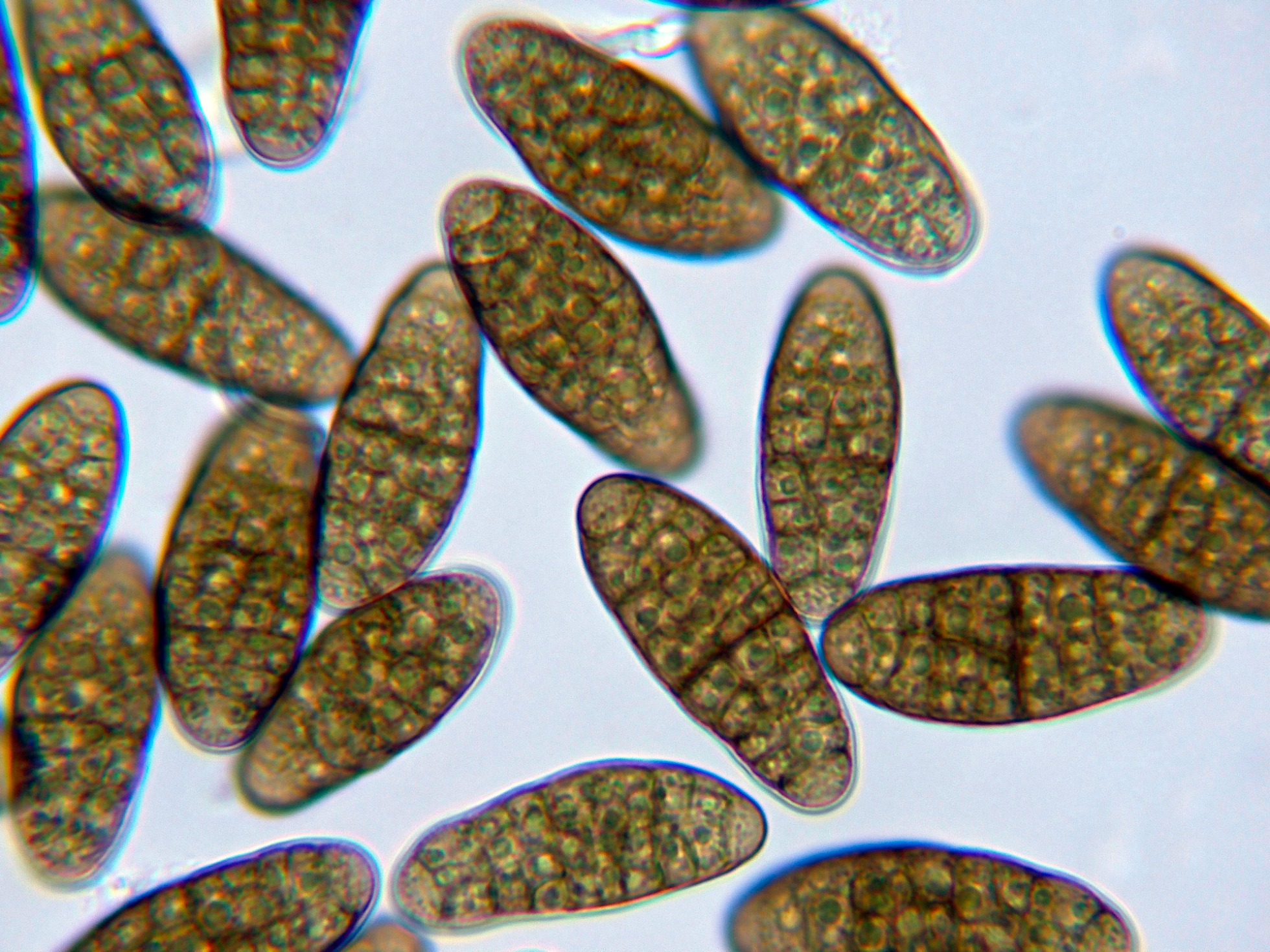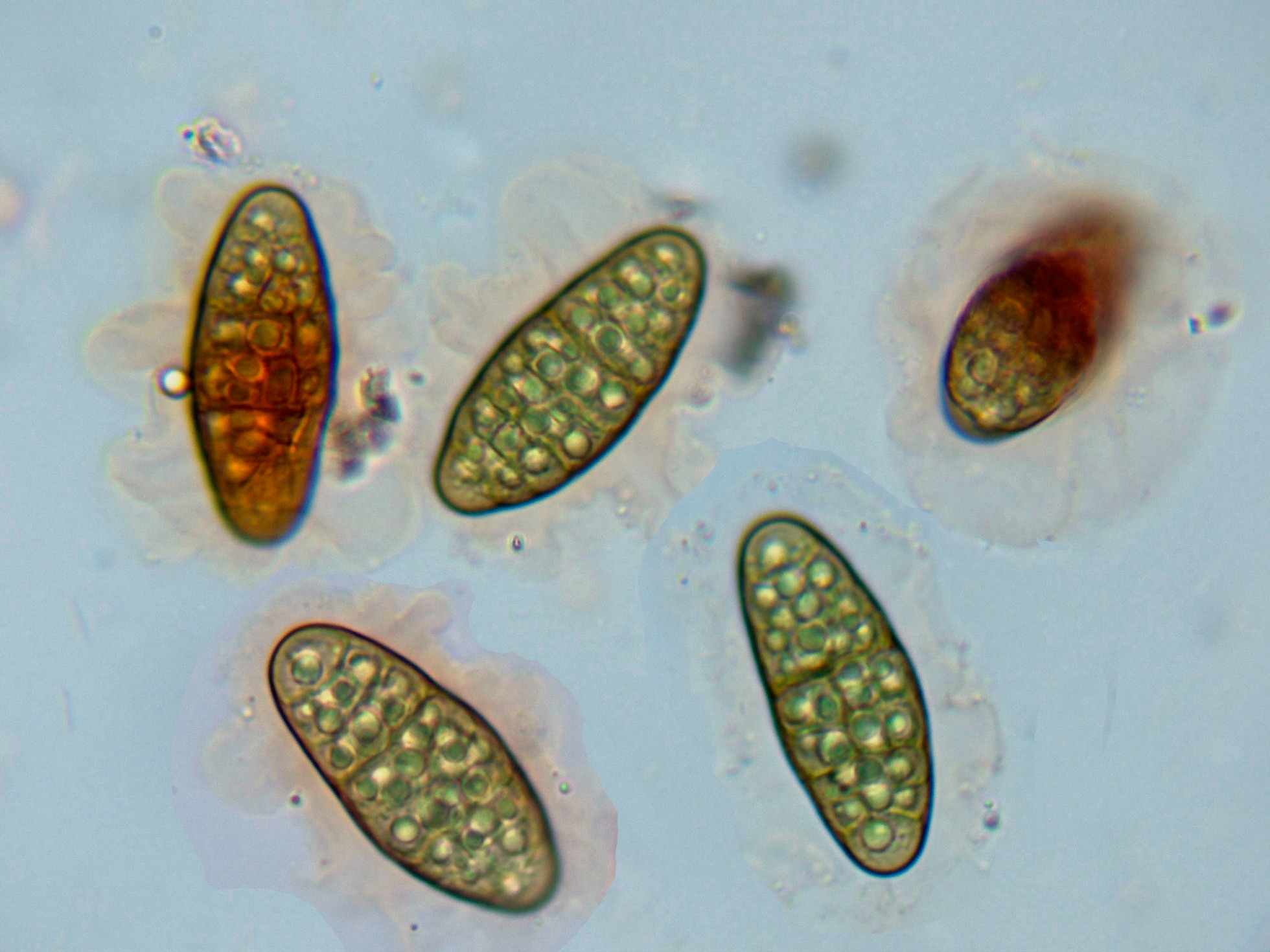 Las esporas en agua a 1000 aumentos.