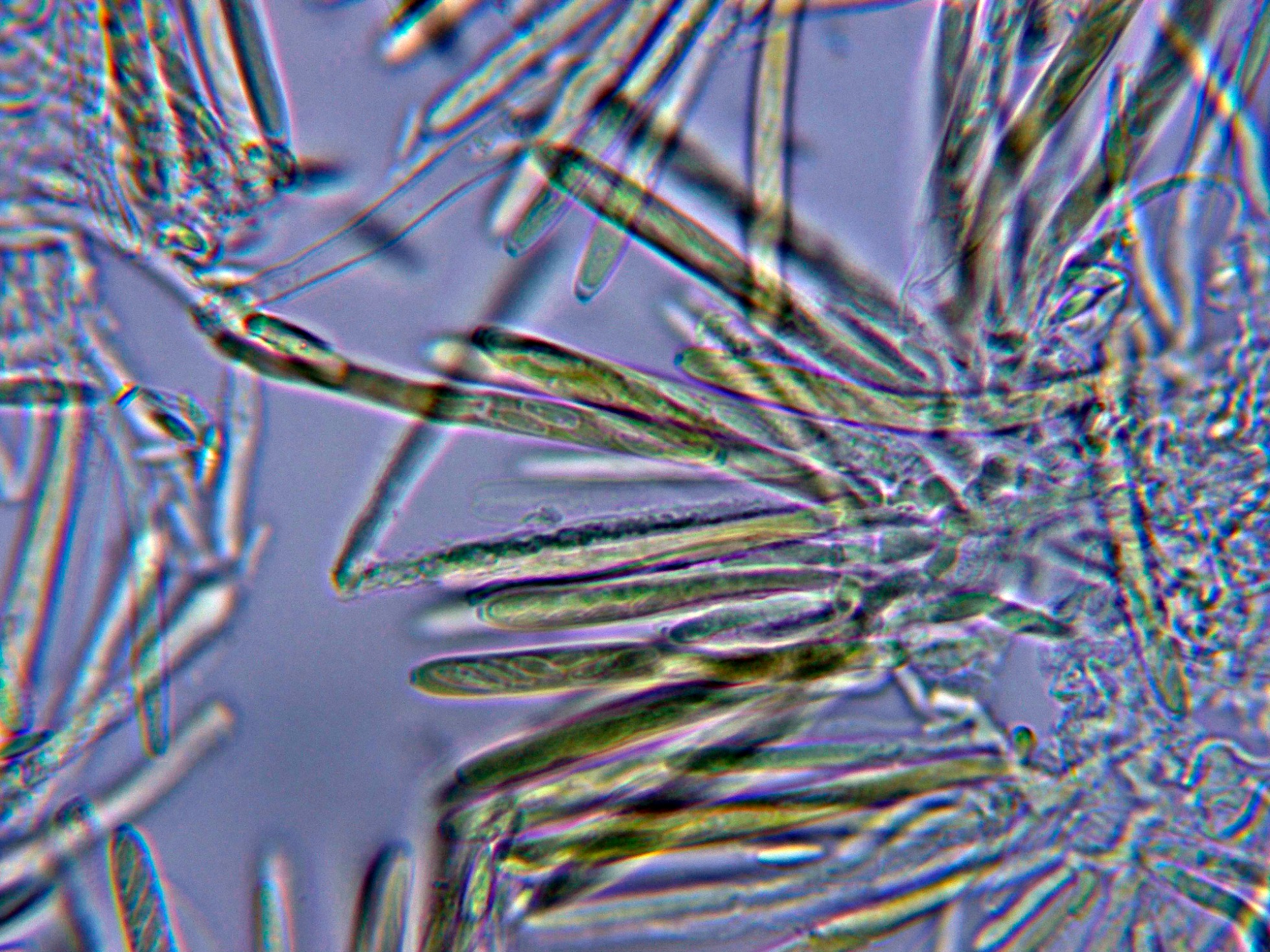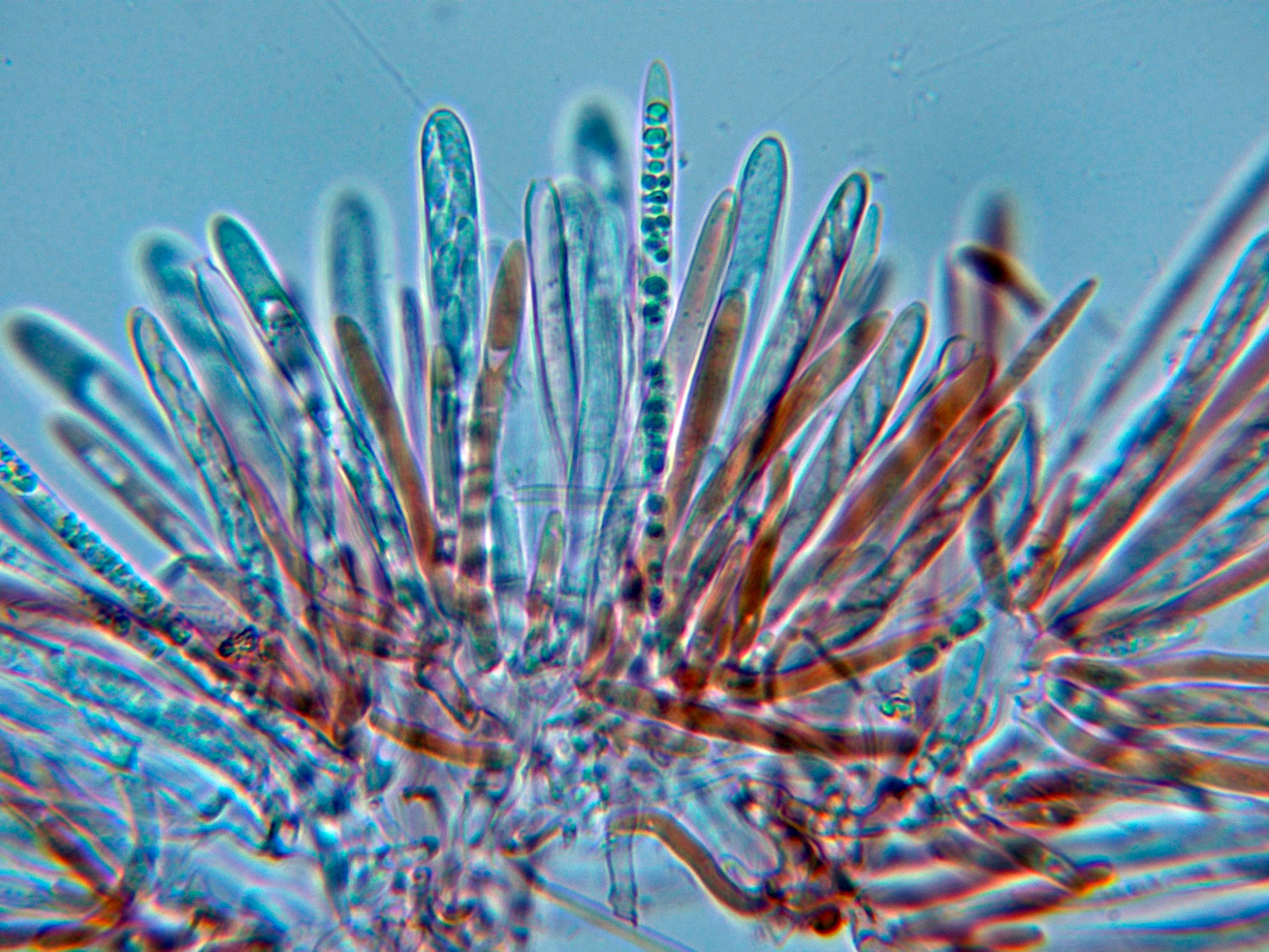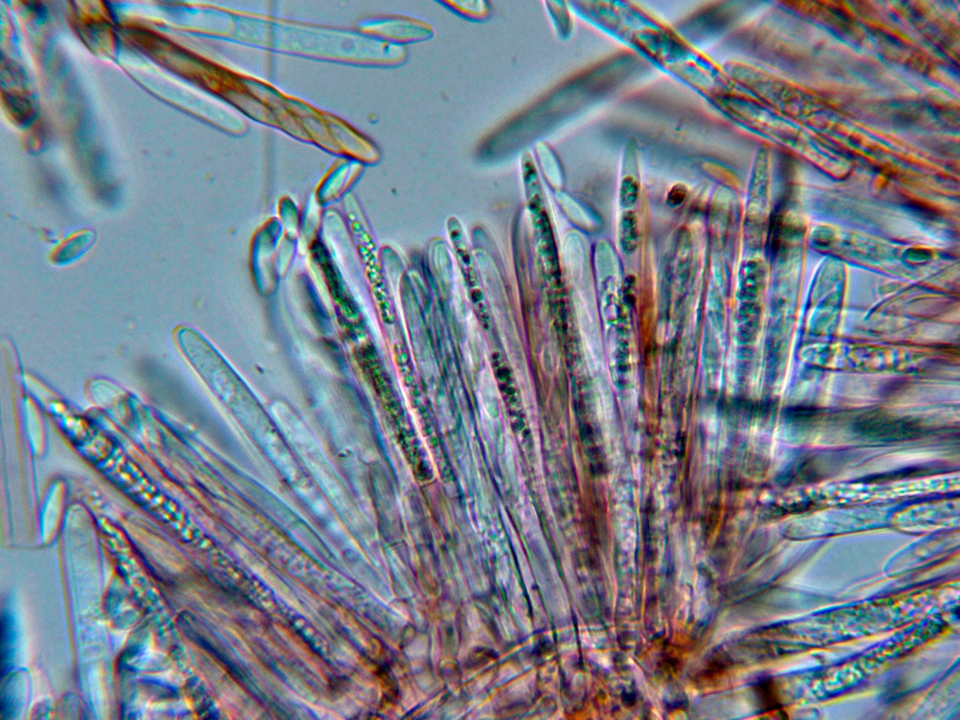 Ascos en Reactivo de Melzer, con reacción amiloide de su muy diminuto aparato apical.