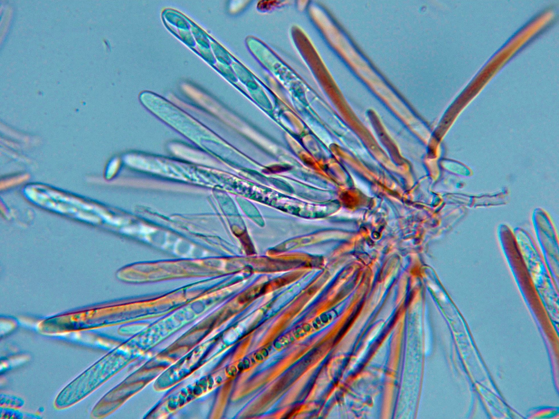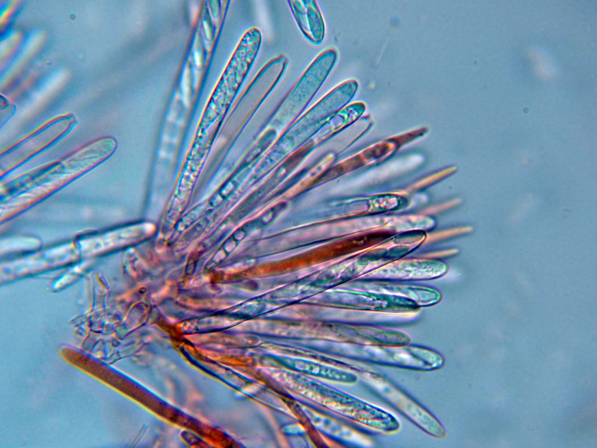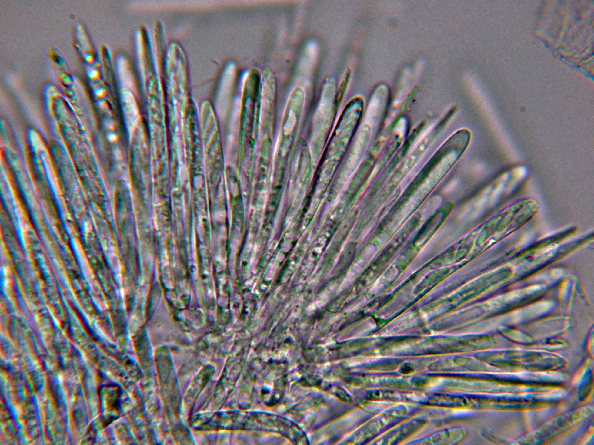 Ascos en Reactivo de Melzer, con reacción amiloide de su muy diminuto aparato apical.