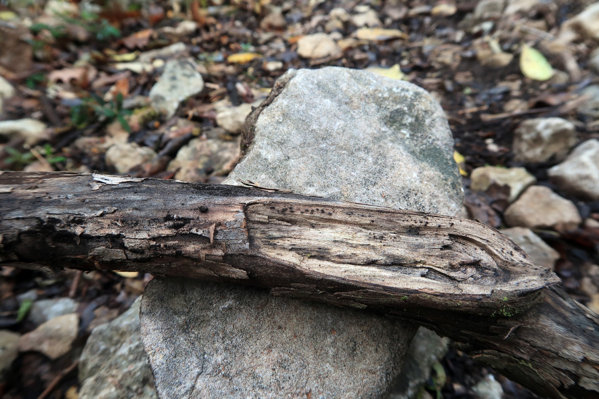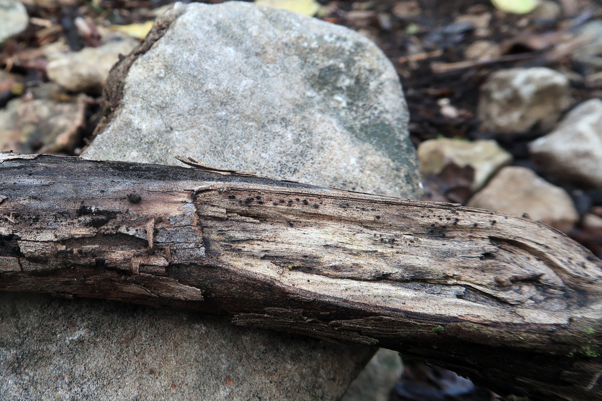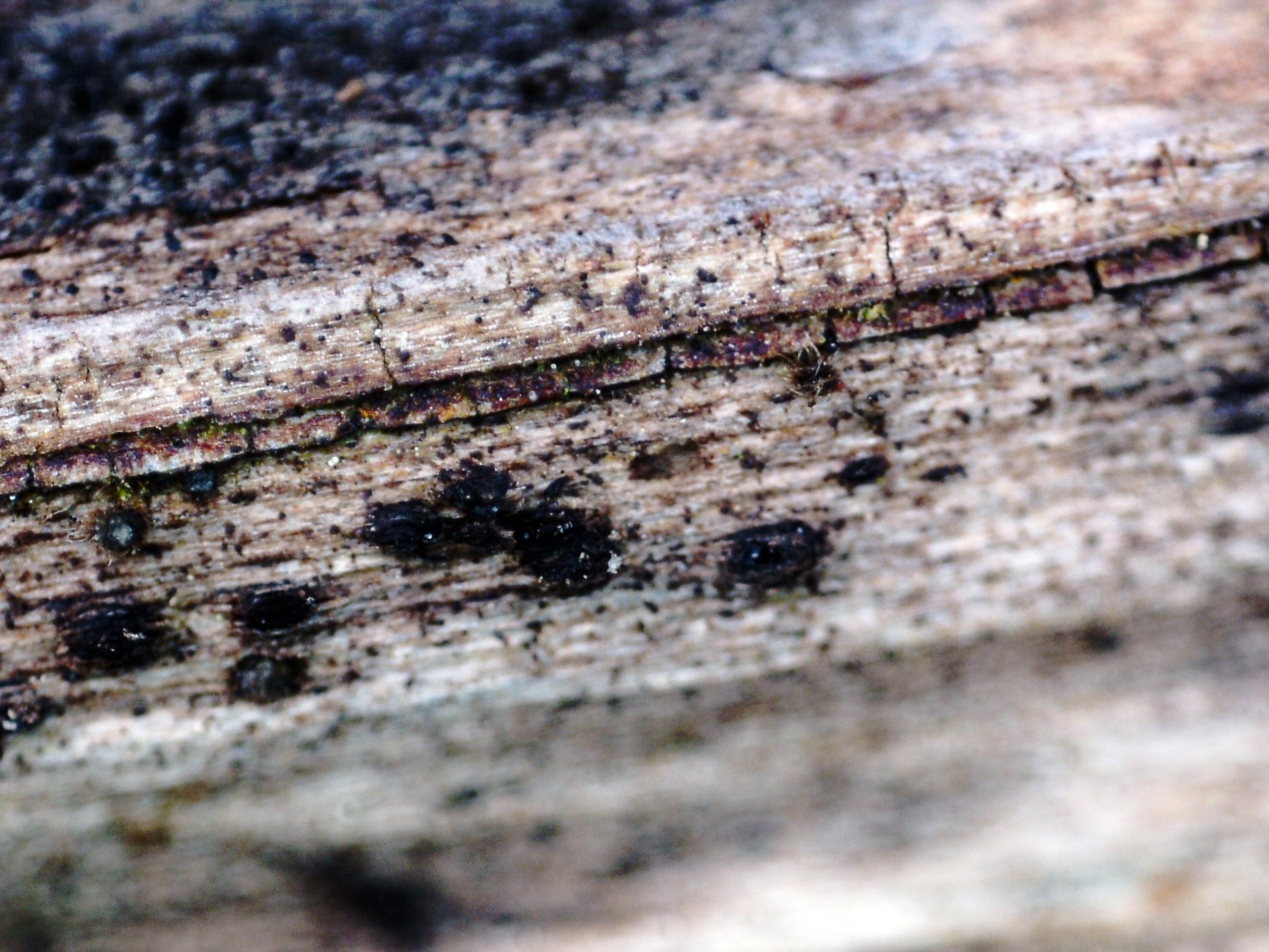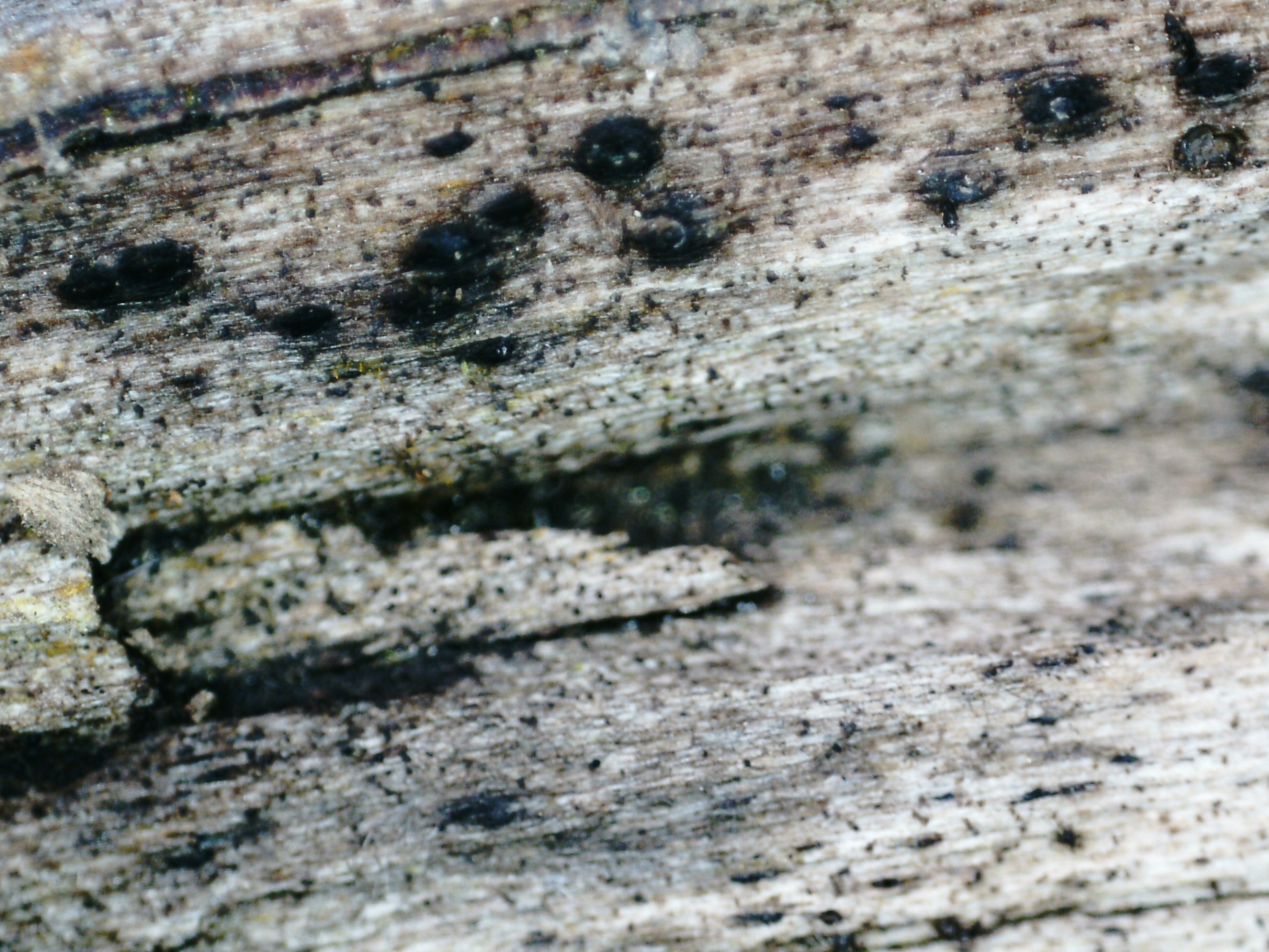 Un diminuto Pleosporal del pasado domingo, sobre un pequeño tronco descortezado de planifolio indeterminado, en soto fluvial donde predominaban los robles.
