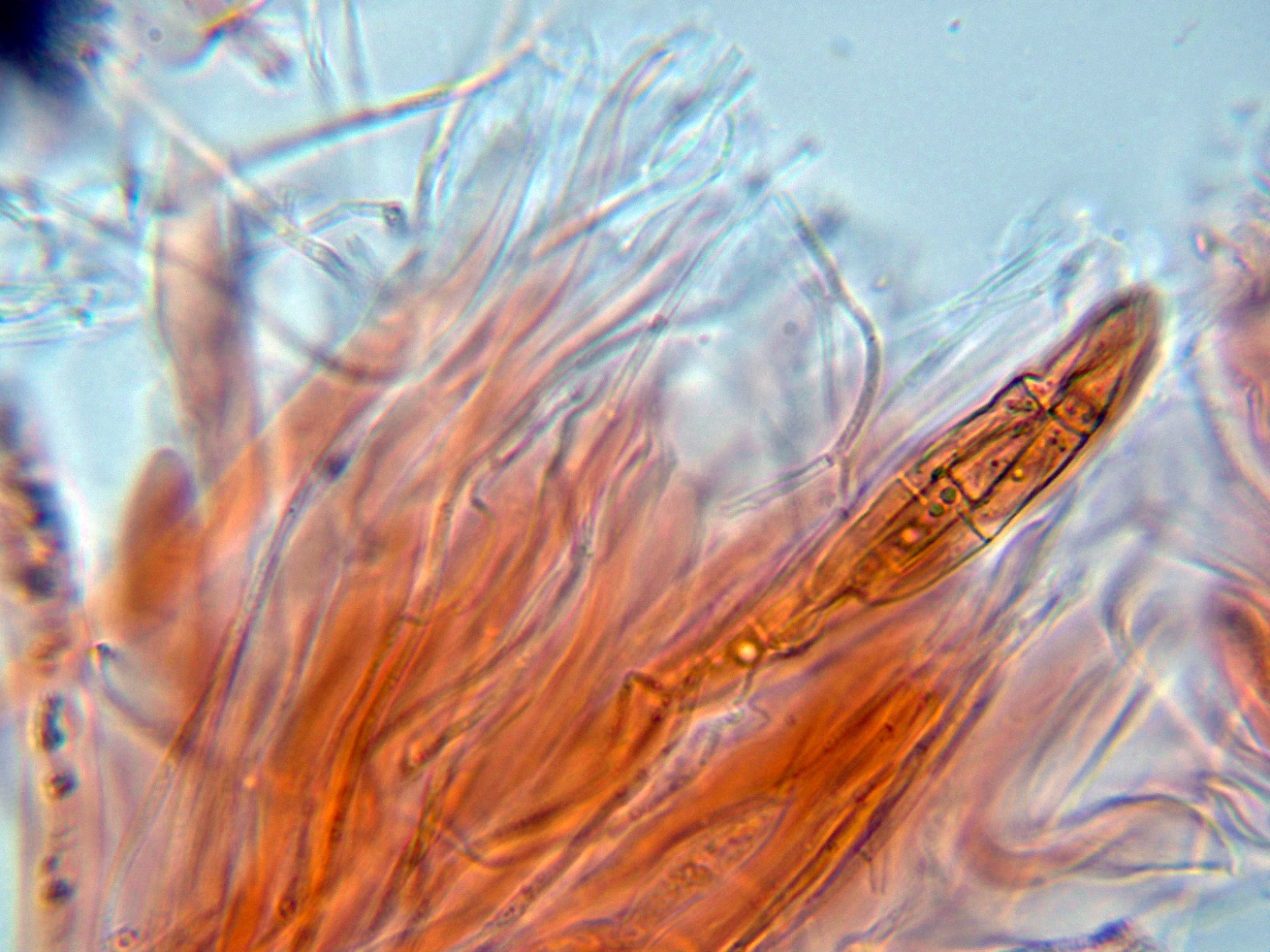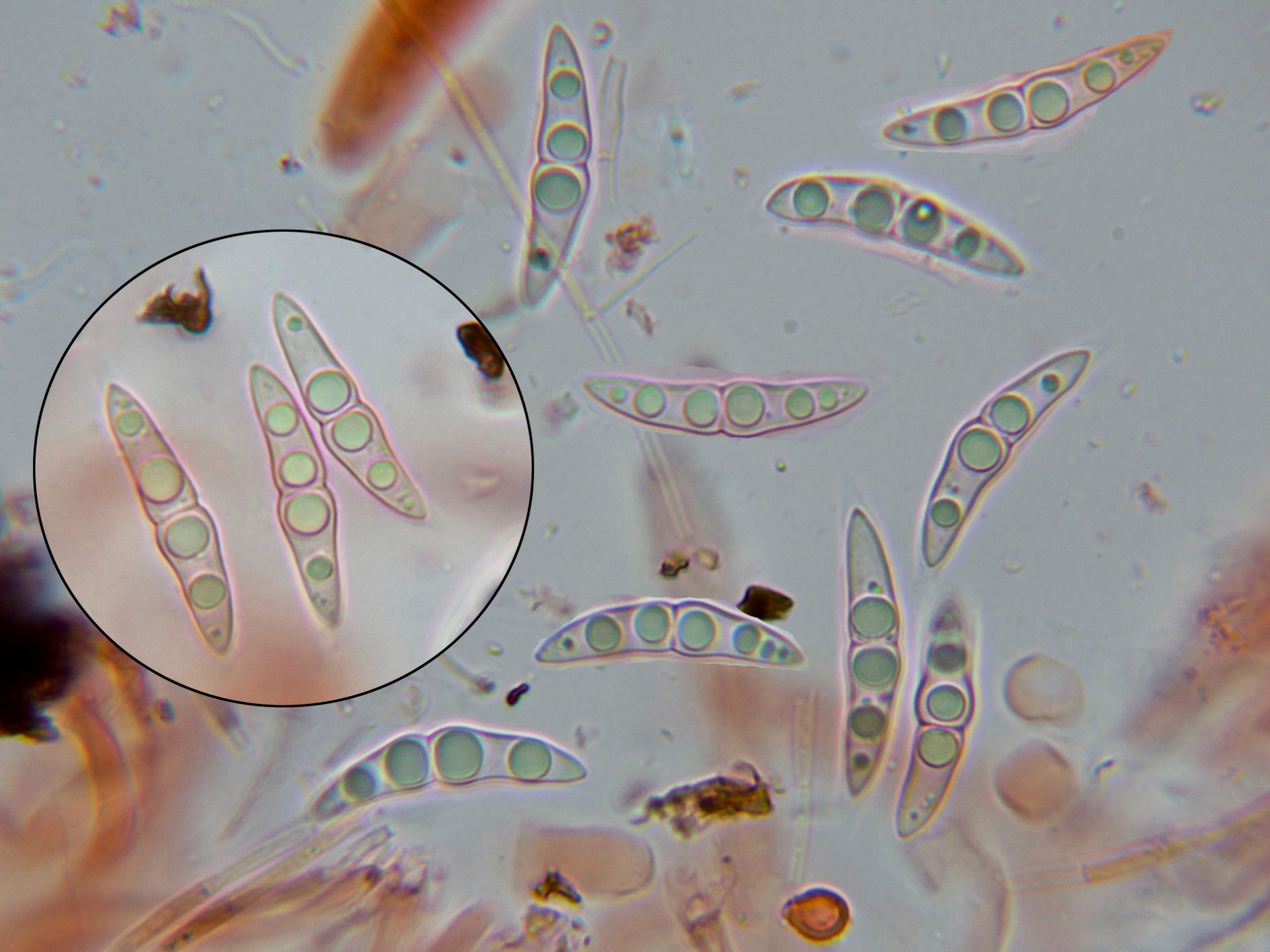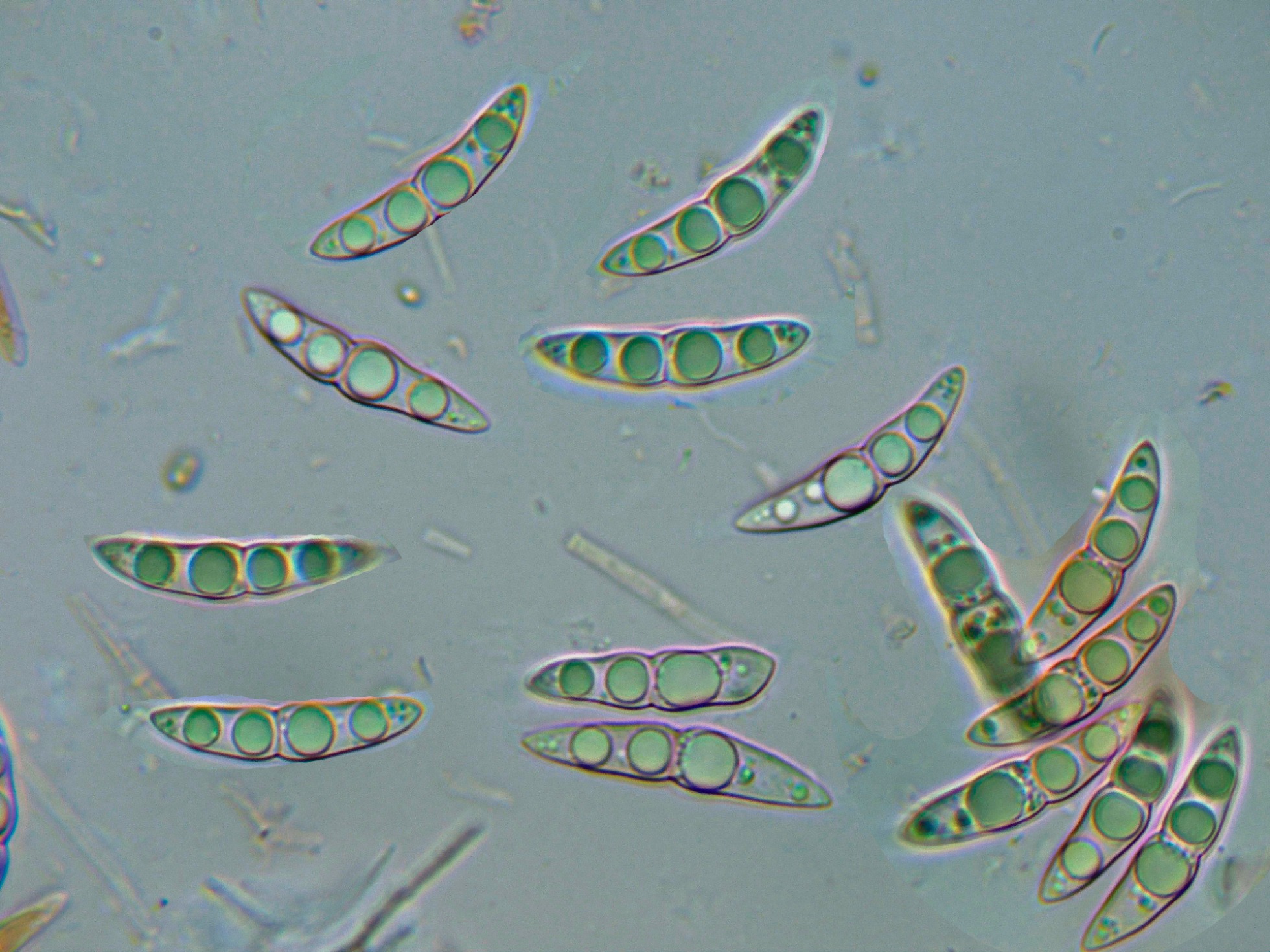 Se cita para la especie unos apéndices hialinos en los extremos de las ascosporas, tan importantes a nivel taxonómico, como difíciles de observar, adjunto unas imágenes señalando estos apéndices, de hasta 5 micras de largo.