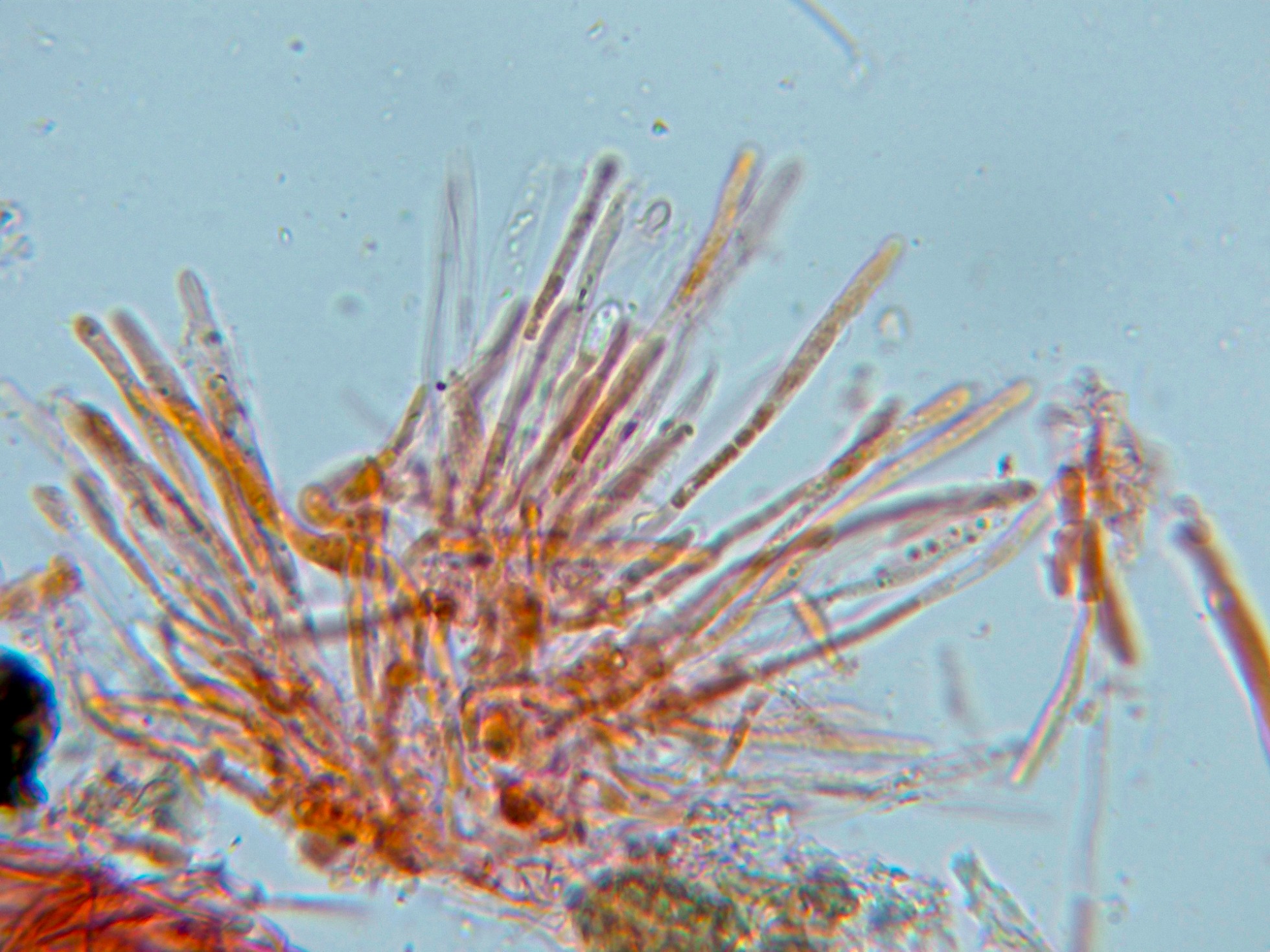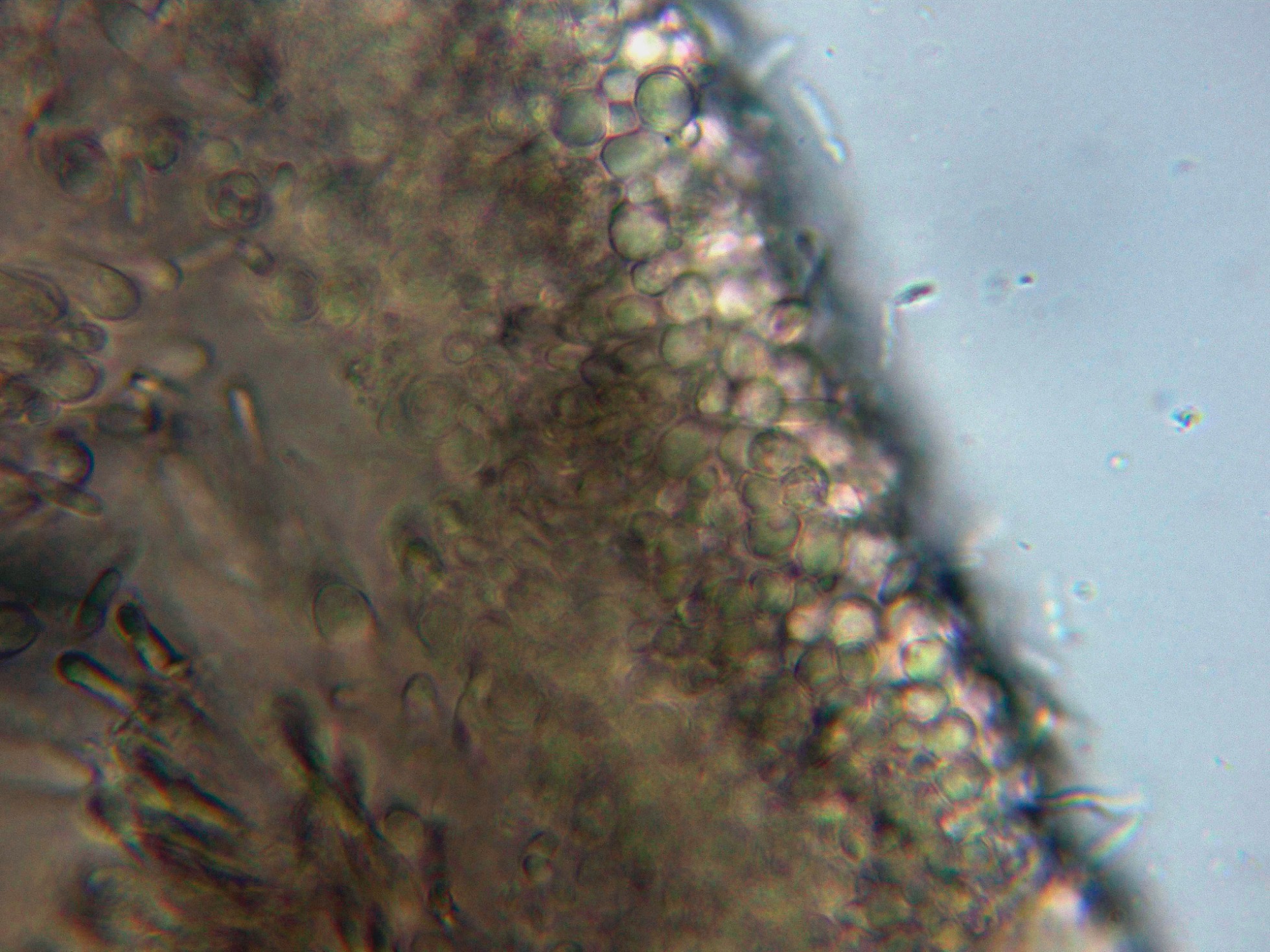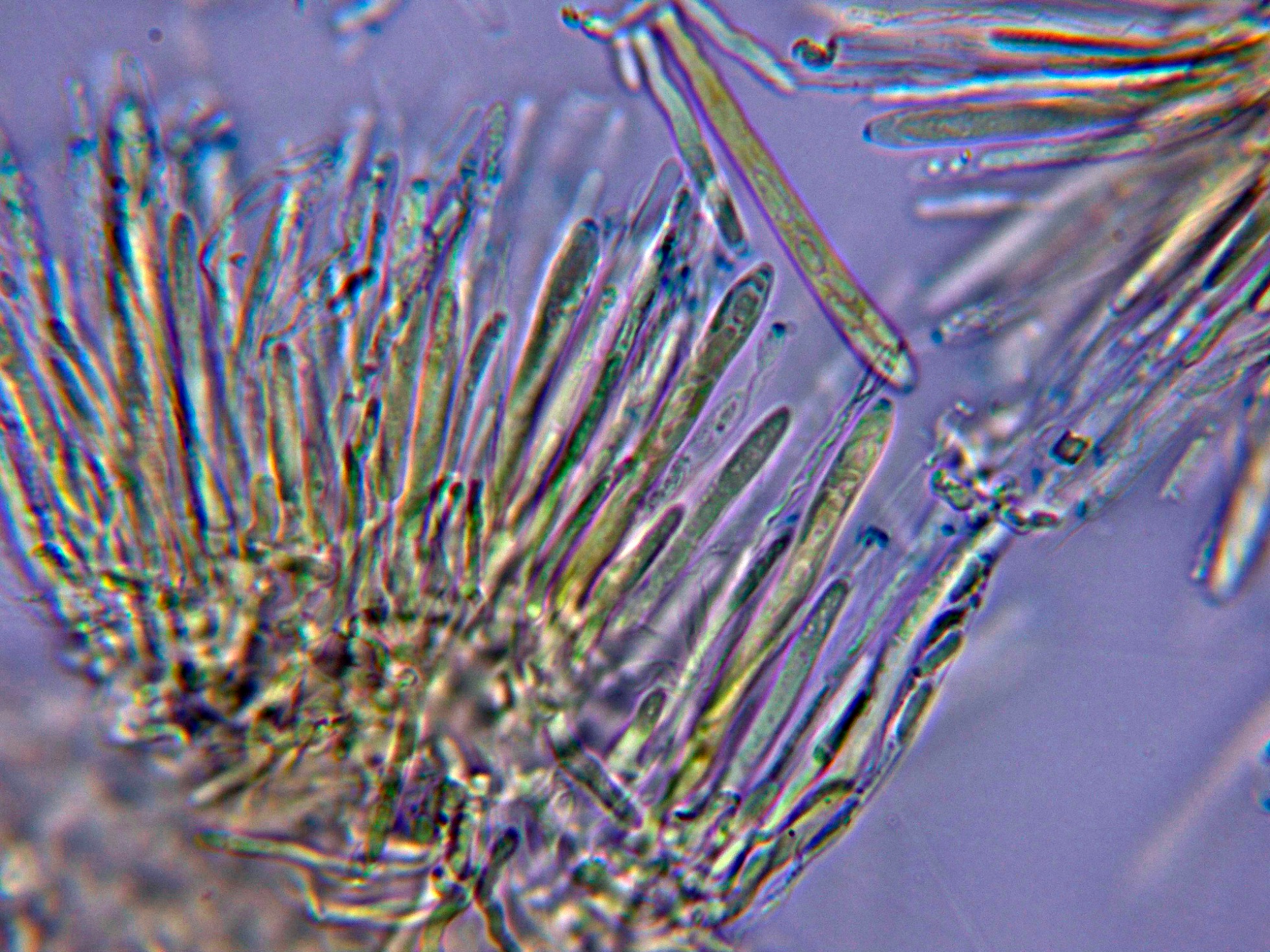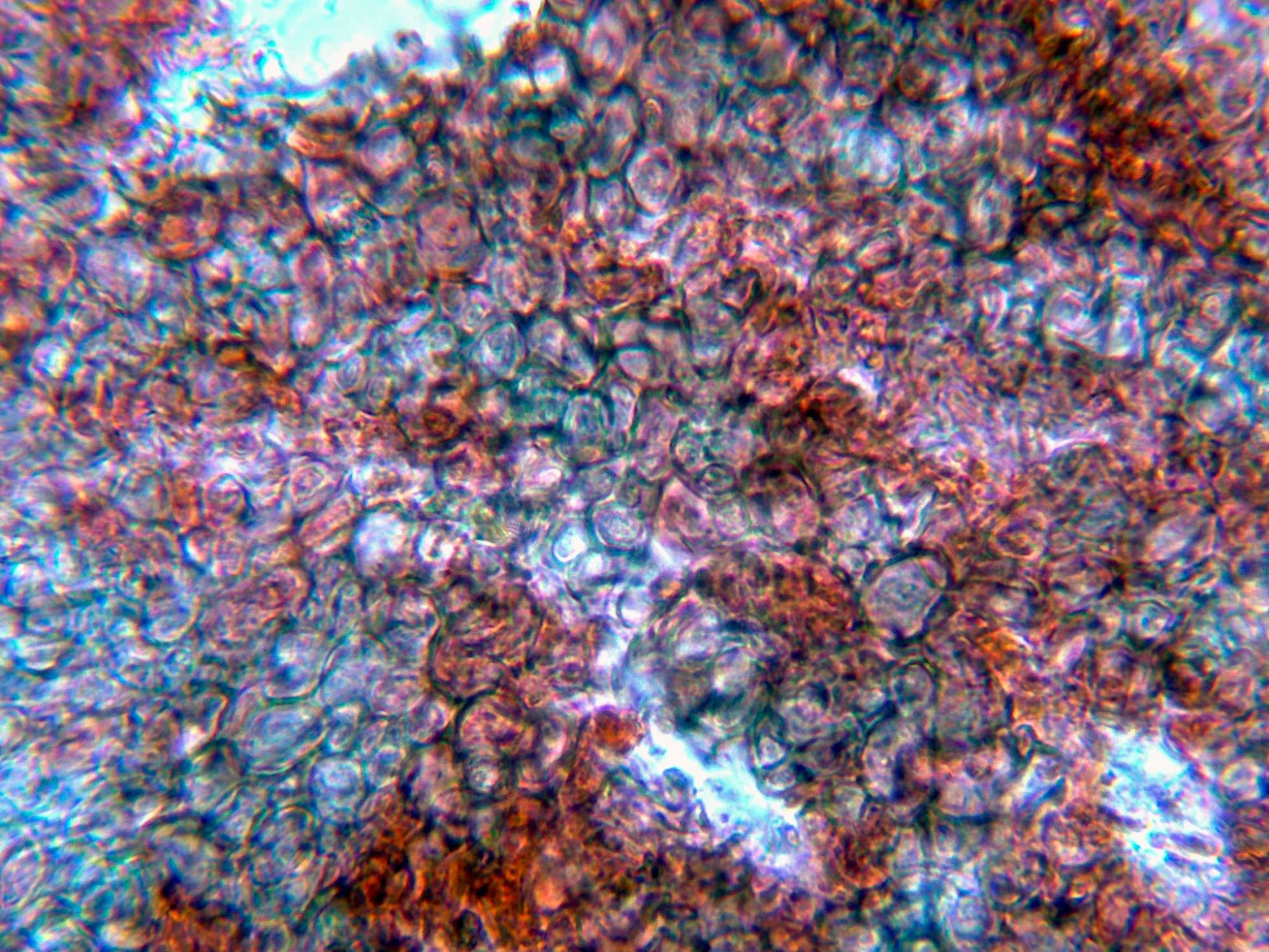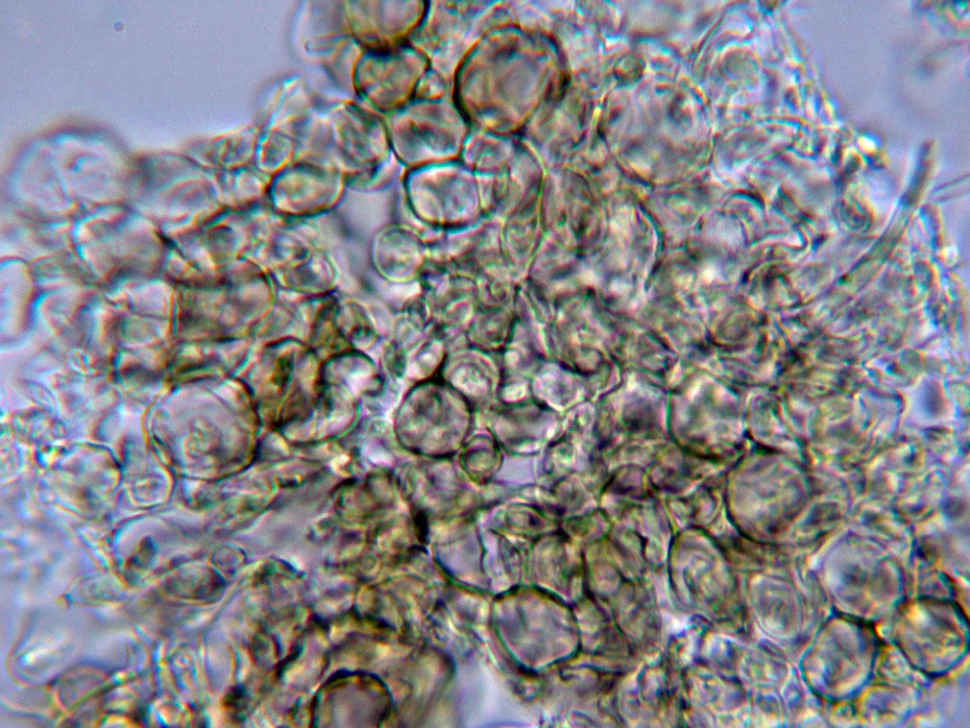 Los mismos ascos en Melzer, previo tratamiento con KOH, con un comportamiento parecido.