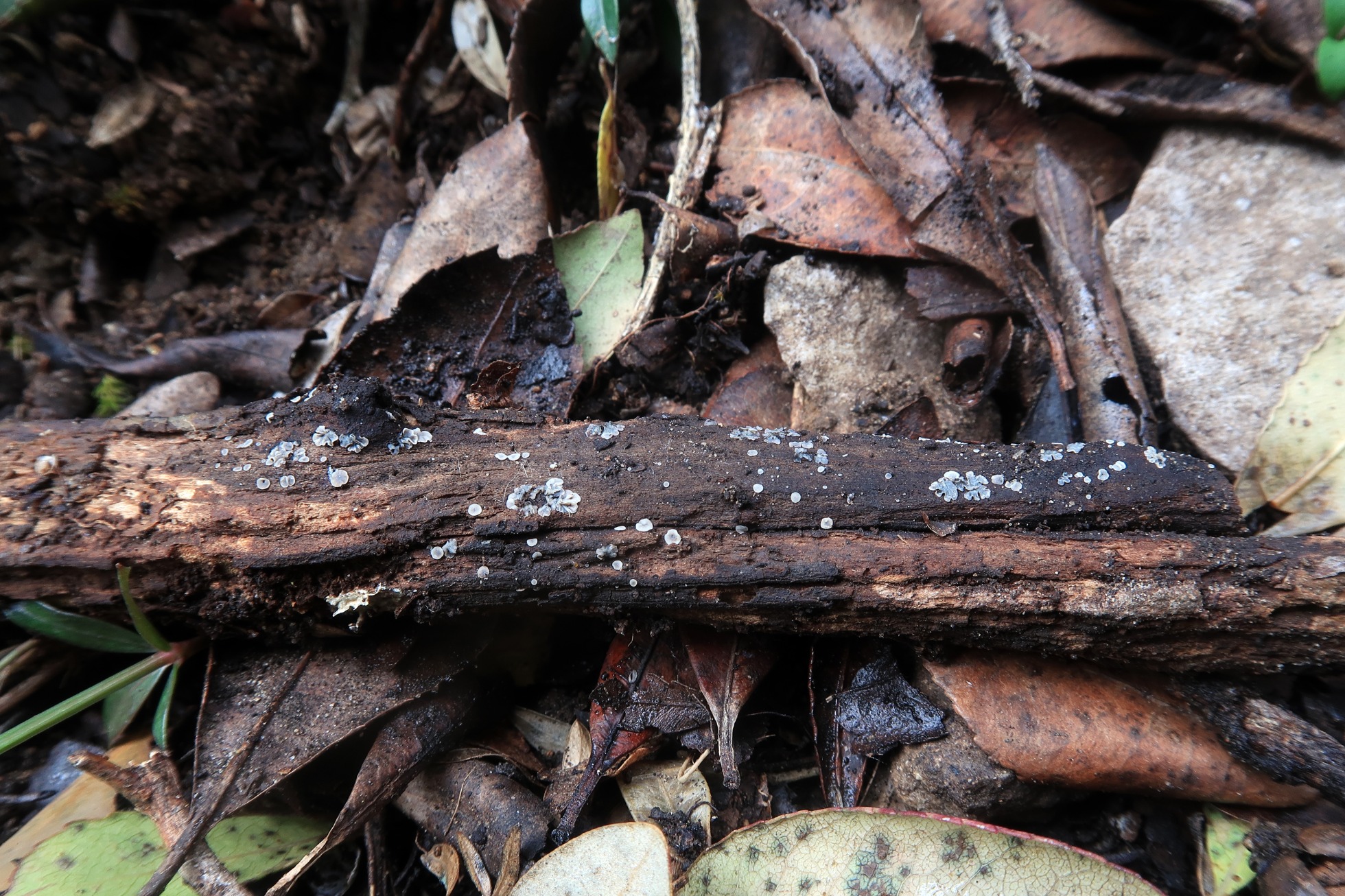 Una Mollisia del domingo 23 de Abril, sobre la superficie de un tronco del suelo en un punto donde predominaban los robles.