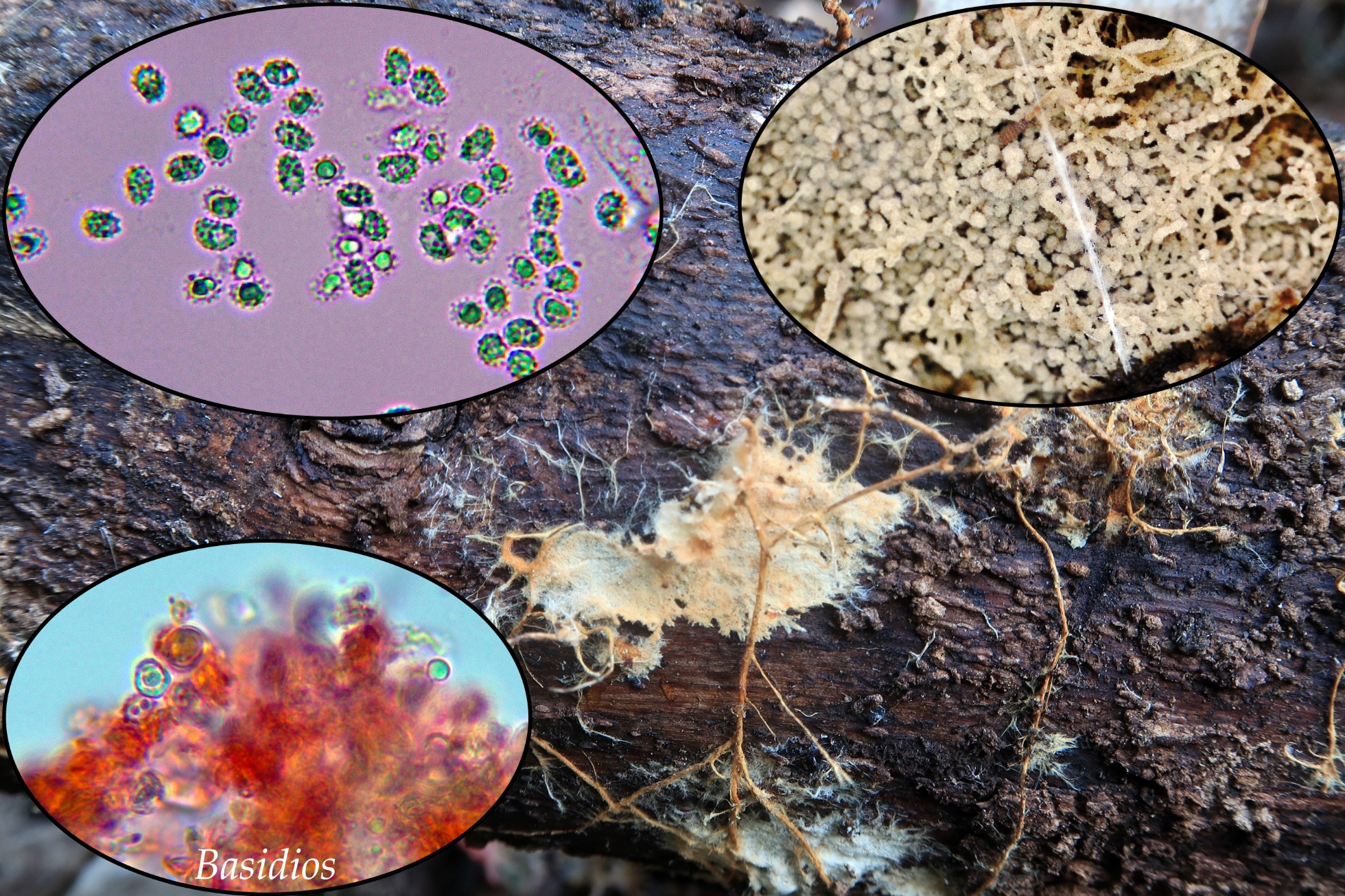 Por último un Cortical con rizomorfos, bastante abundante pero que hacía cierto tiempo que no veía, la Xenasmatella vaga: