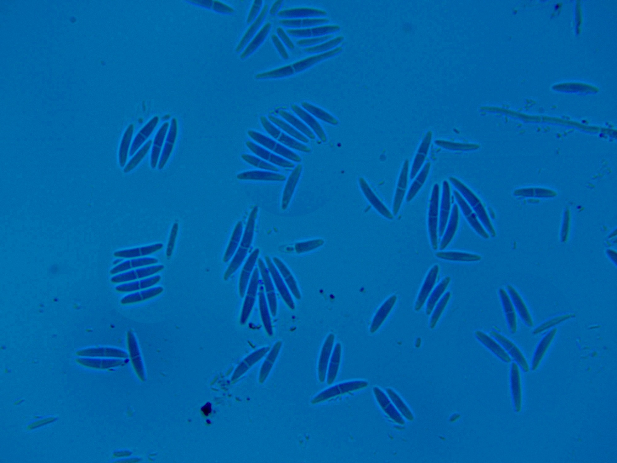 Para intentar ver mejor este septo central probé con Azul de Lactofenol, las esporas en este medio: