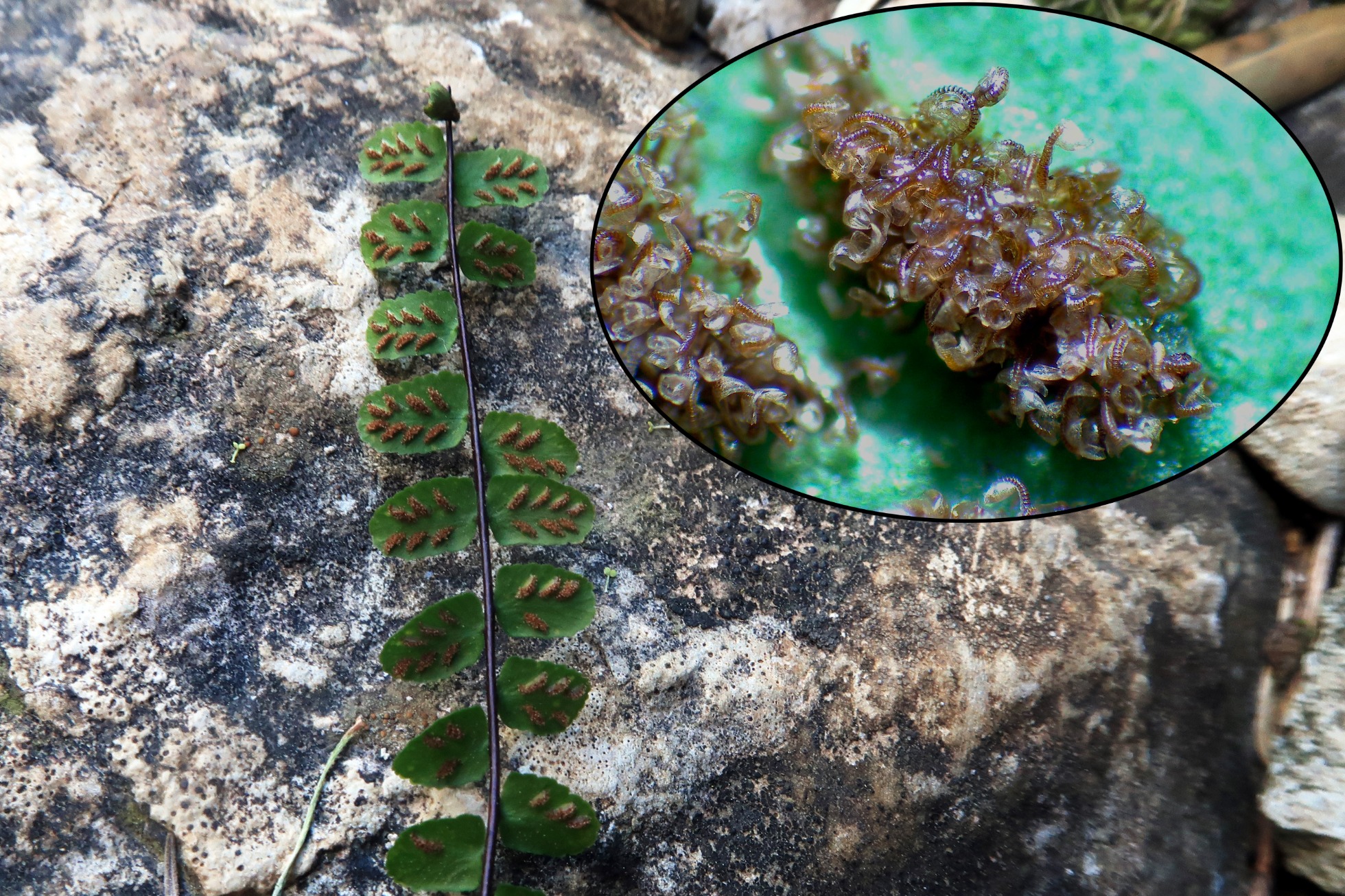 Como no había nada más, cogí incluso una muestra de un helecho rocoso para observar con el micro sus esporangios, parece ser que estos fructifican durante todo el año, el Asplenium trichomanes.