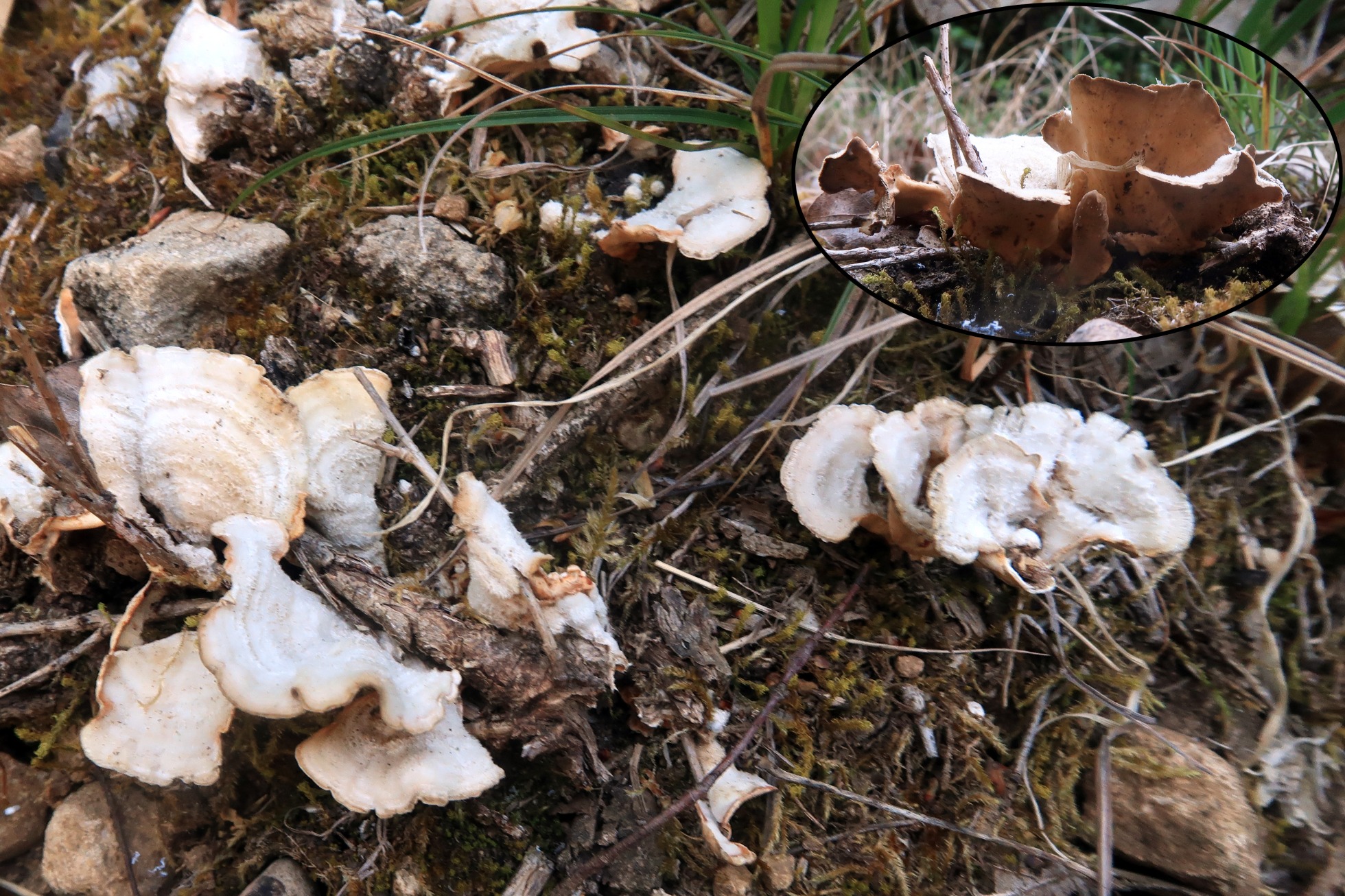 Lo más parecido a una seta de todo lo que vi, el muy abundante y ya en no su mejor momento Stereum hirsutum.
