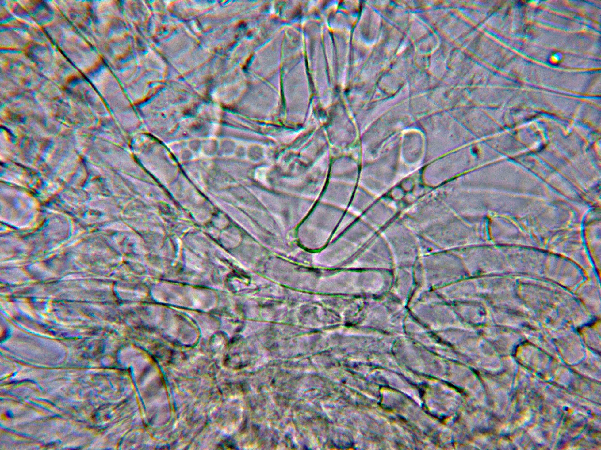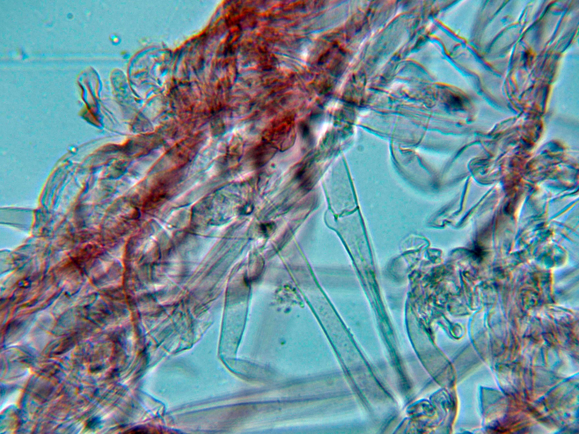 Las hifas de la estipitipellis, asimismo fibuladas.
