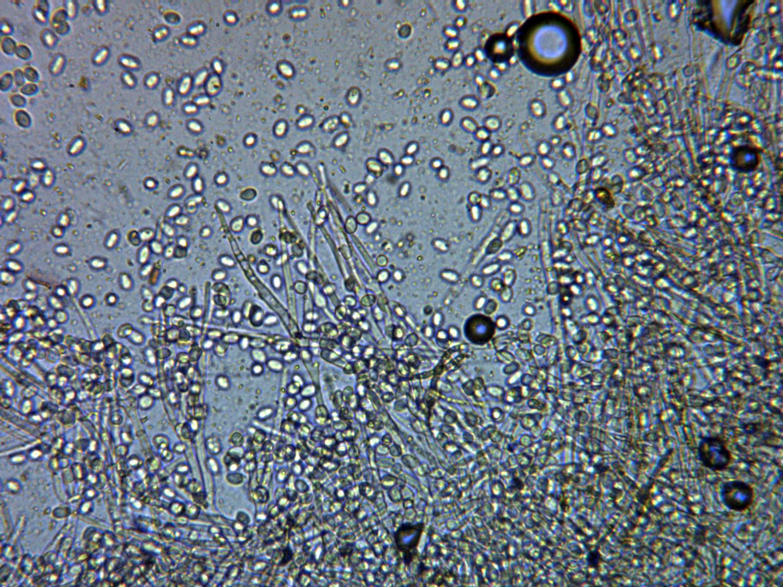 Los conidios muchos de ellos con una o dos gútulas, con una pared de hasta 0,5 micras.