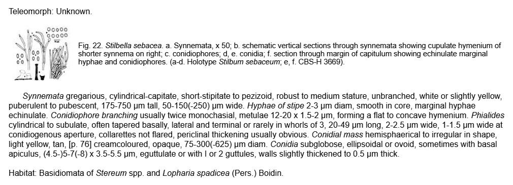 Añado un recorte de las claves de Stilbella con la descripción de la Stilbella sebacea:
