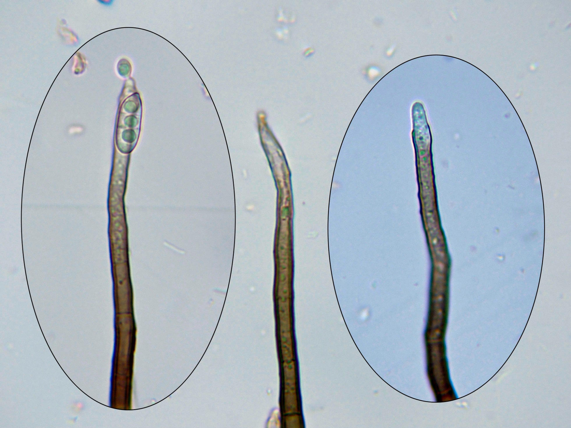 Añado un enlace que me parece bastante fiable, con imágenes de los conidios de la Cirrenalia lignicola.