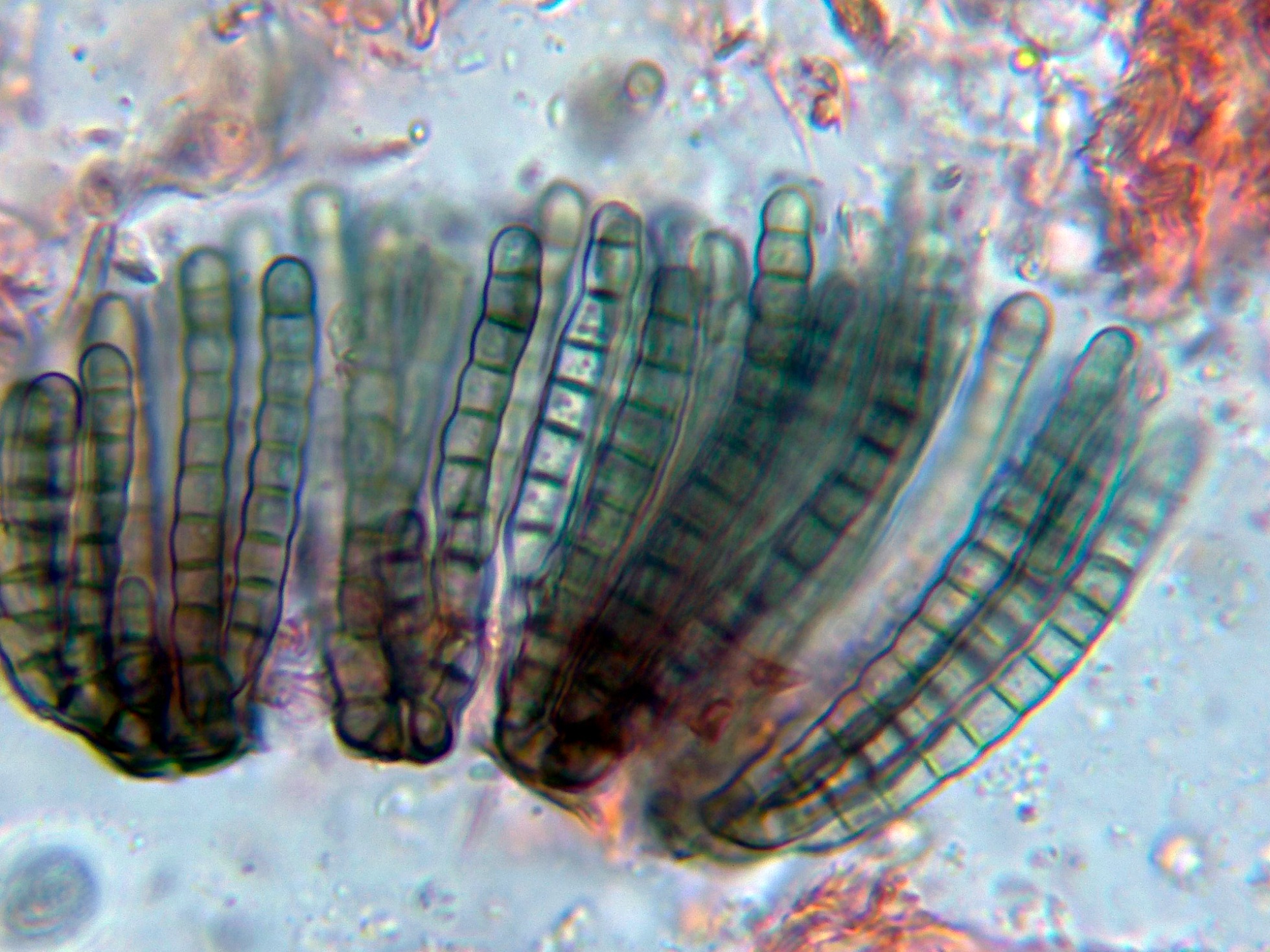 Observaciones: Según la poca bibliografía que he podido encontrar de la especie sus conidios pueden llegar a presentar hasta 17 septos y una longitud de 85 micras.