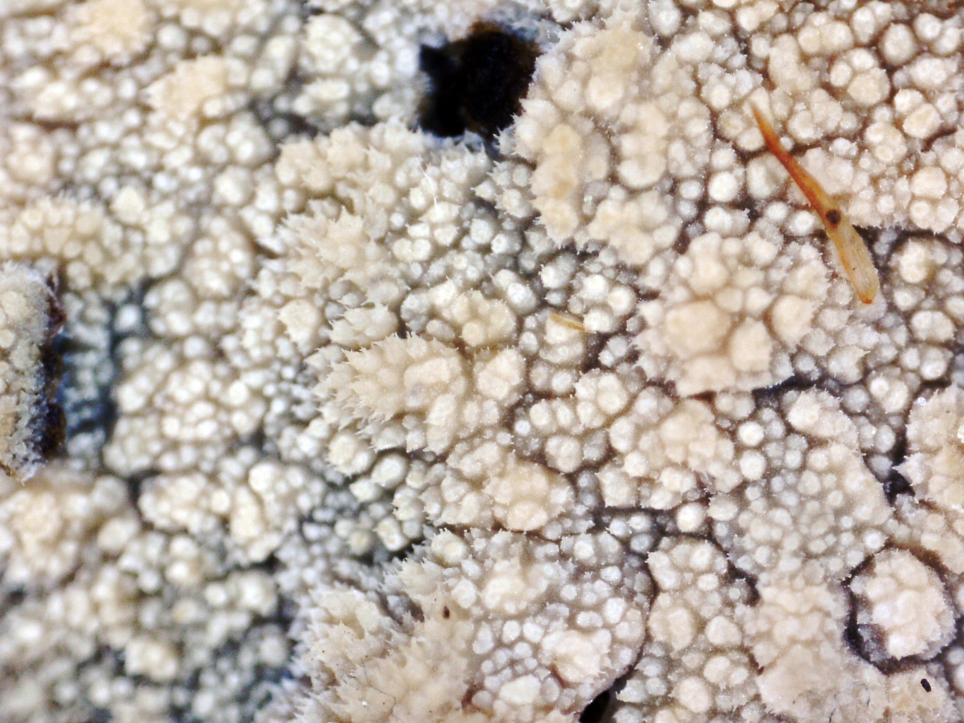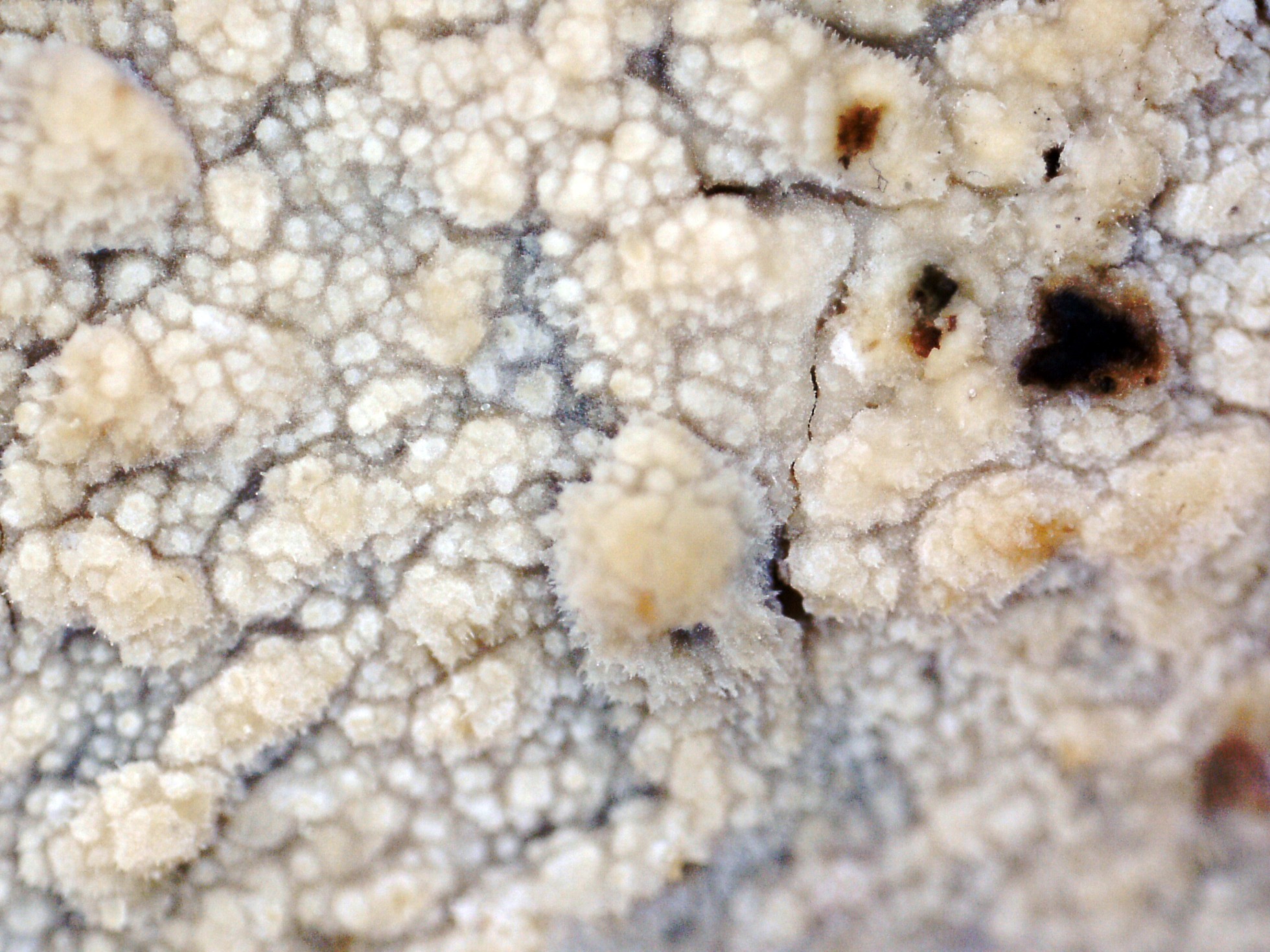 Ampliación de su superficie entre granulosa y algo hydnoide a 20 aumentos.