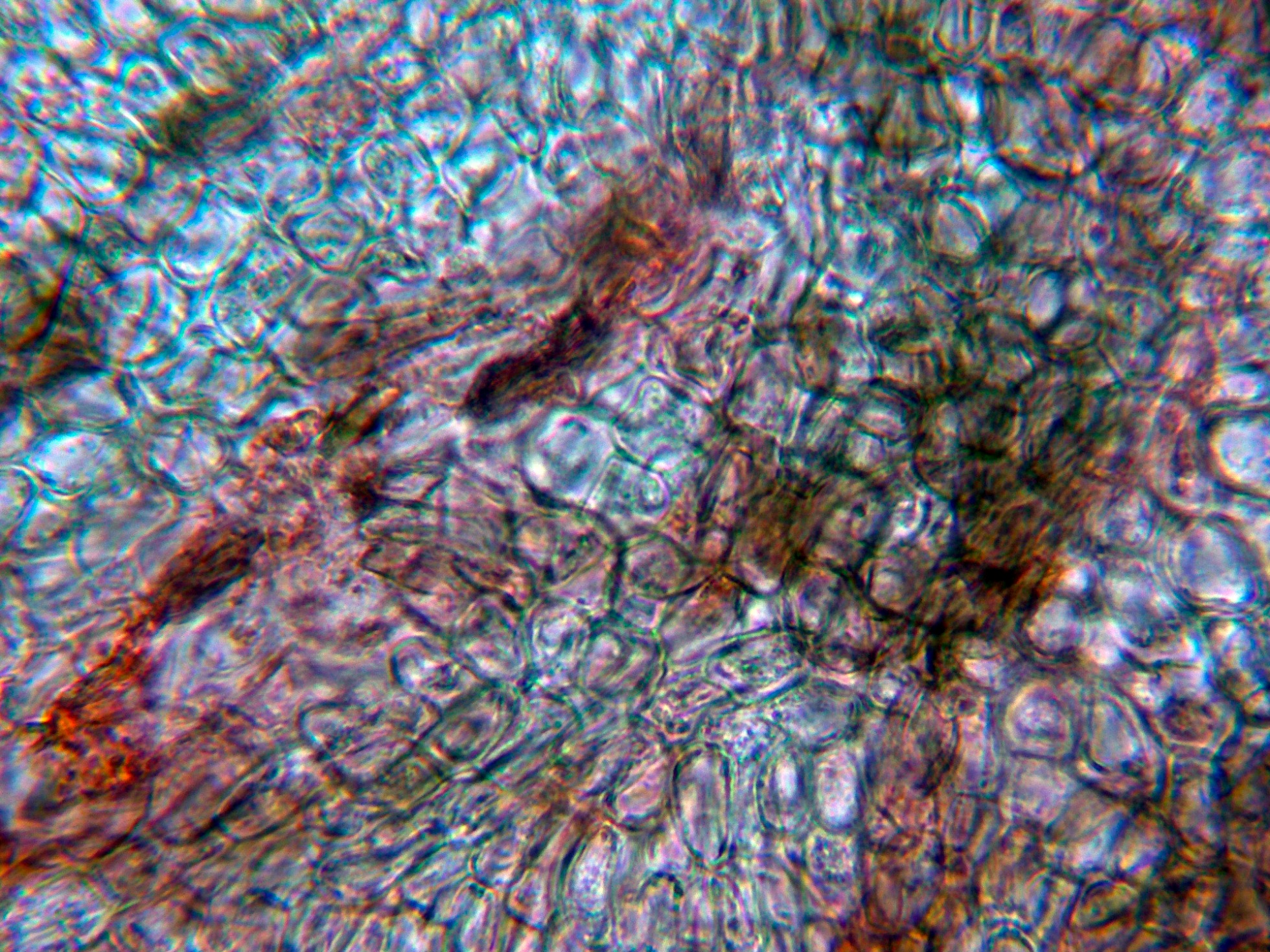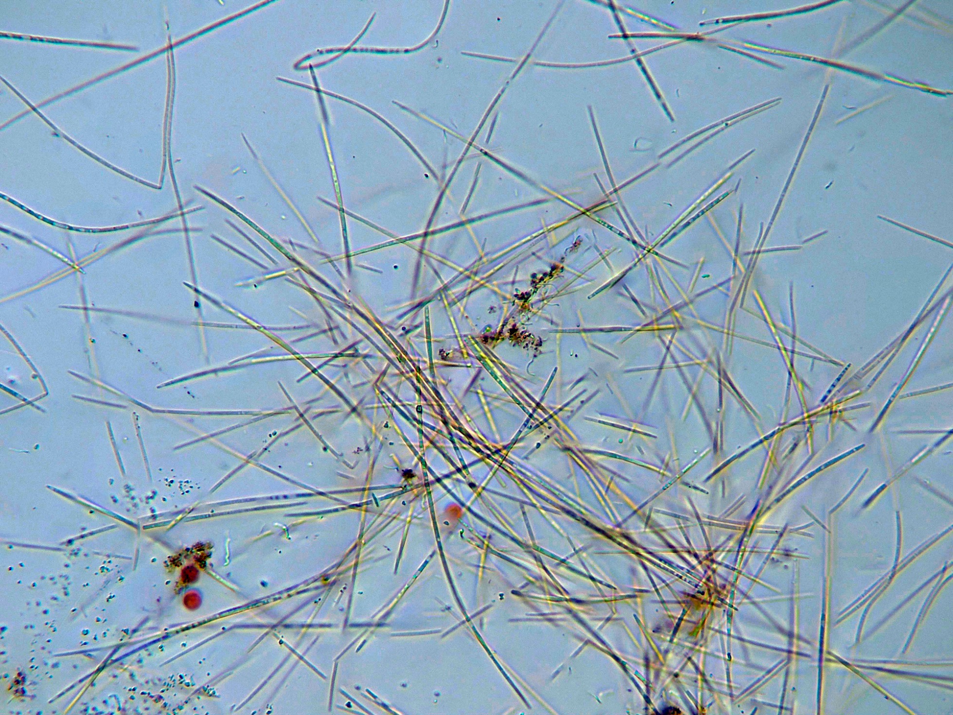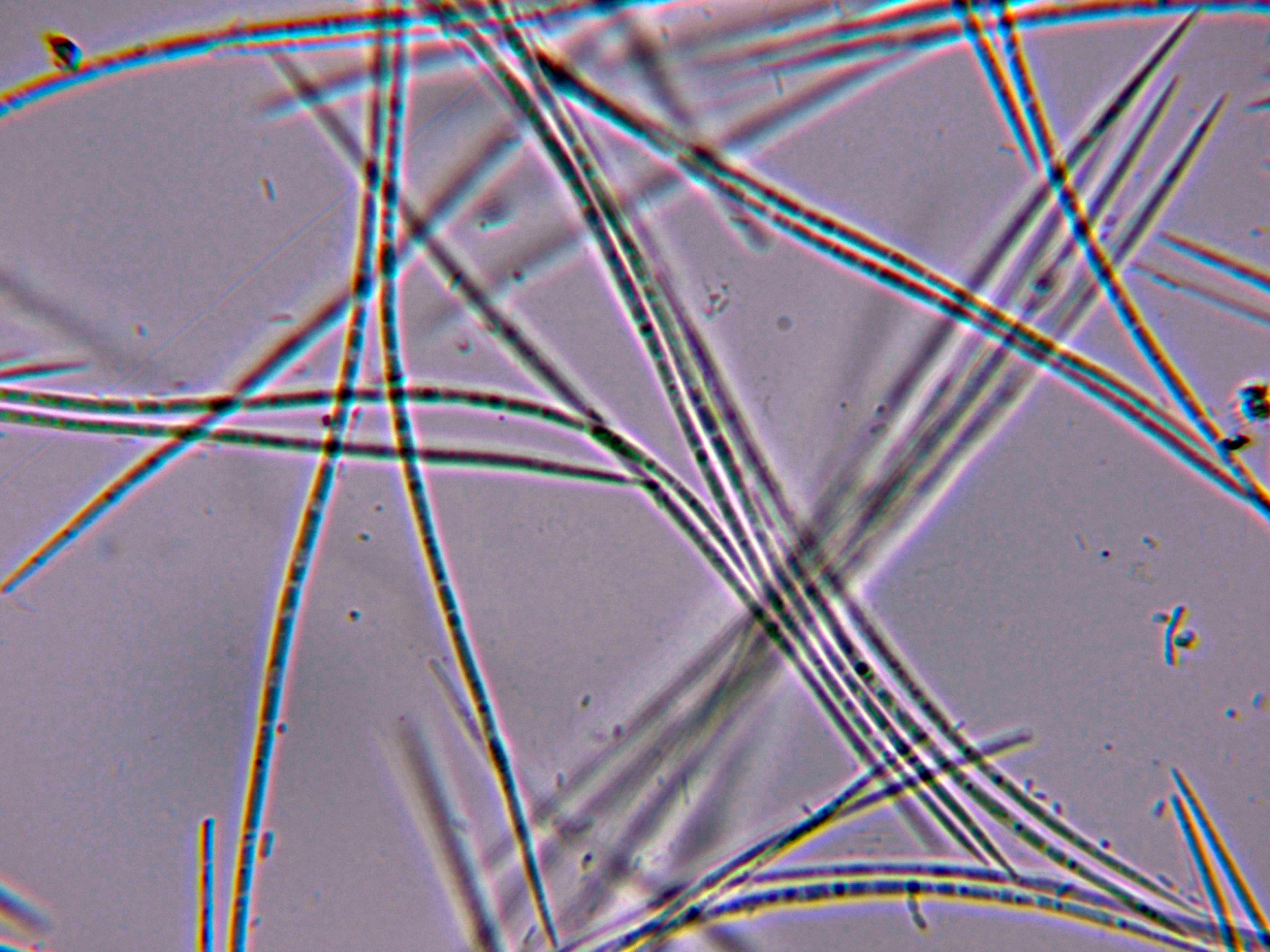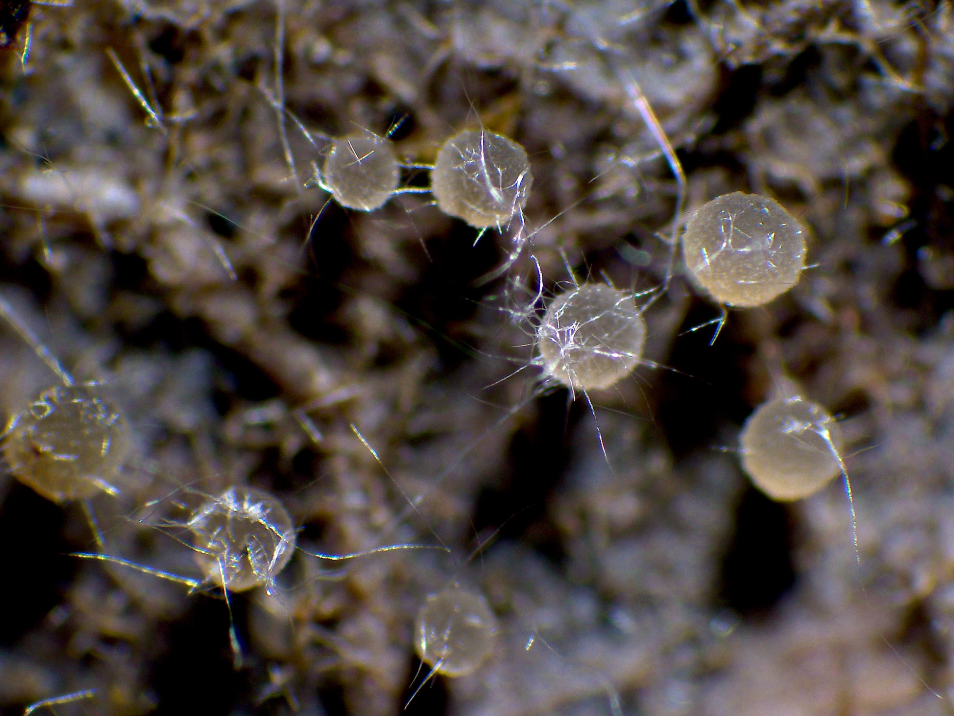A 40 aumentos con las esporas saliendo (son los pequeños hilillos blancos).