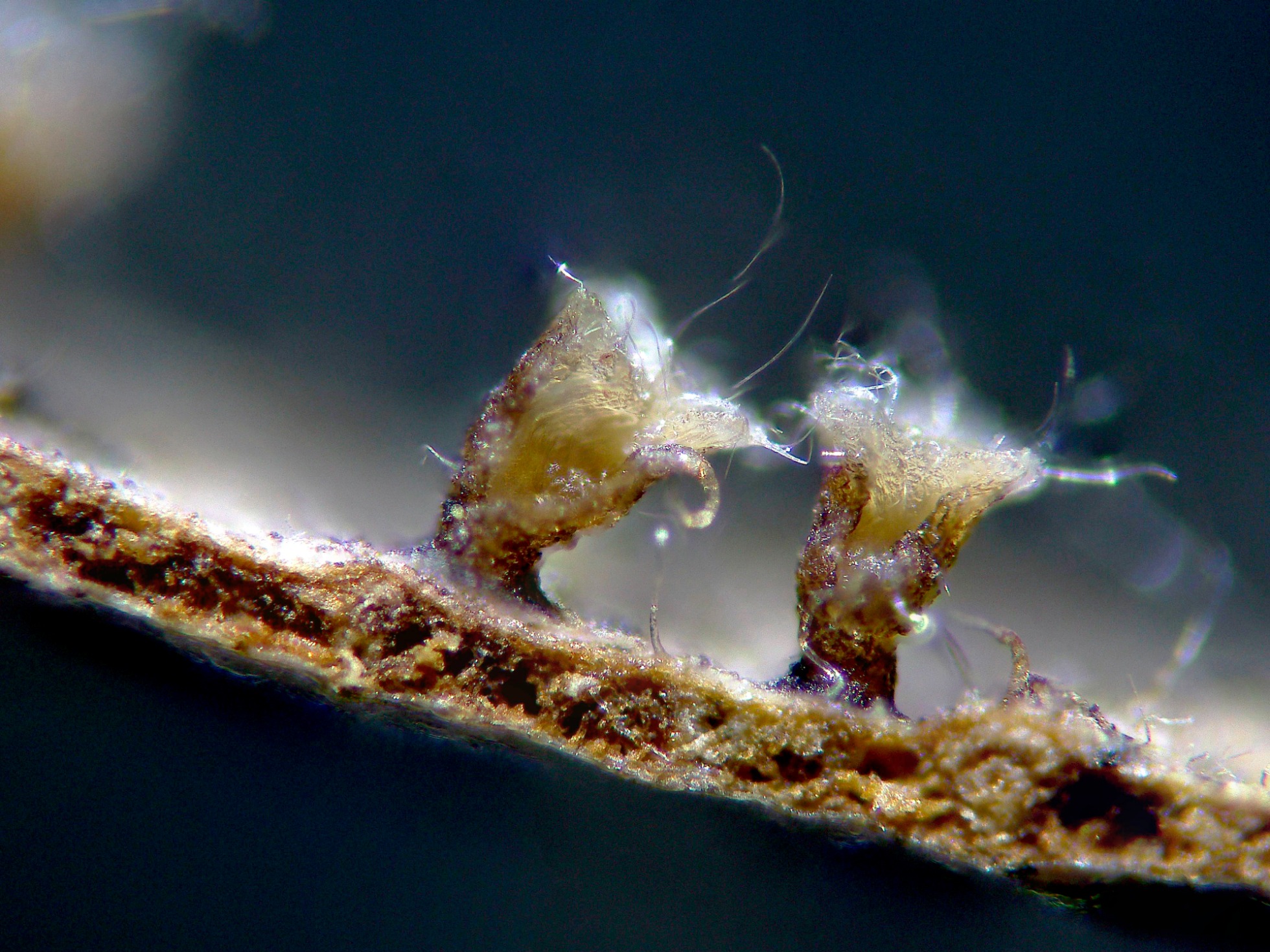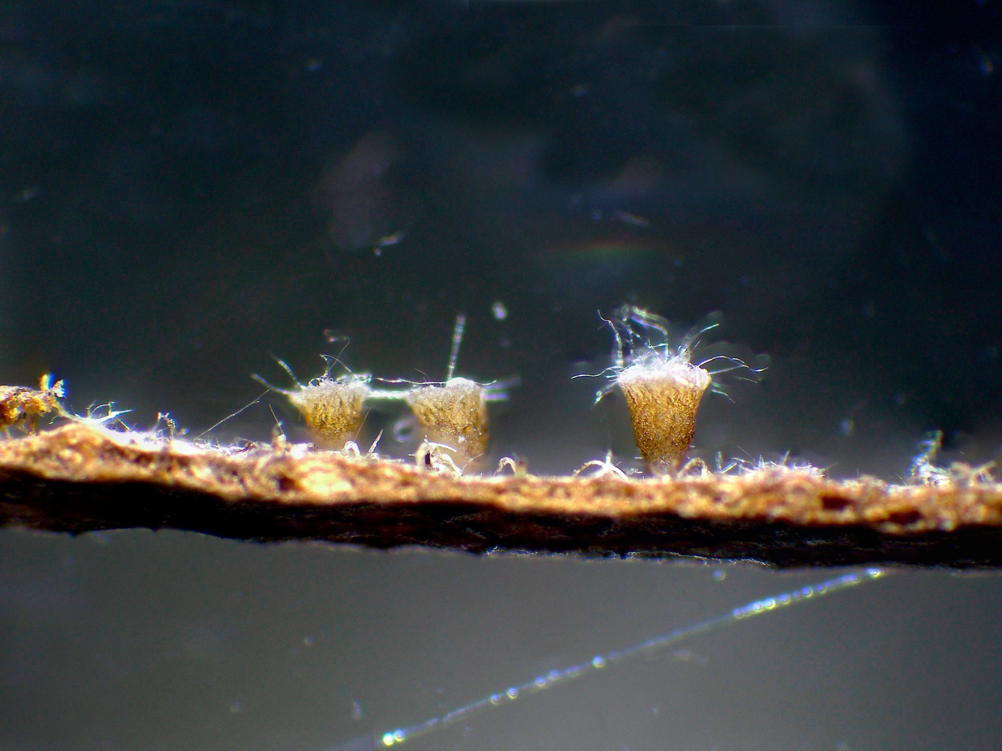 Un diminuto ascomiceto que por su microscopía no podía pensar en nada más que no sea Vibrissea, lo curioso es que no lo encontré en un medio acuático y tampoco subacuático, ni tan siquiera había un charco, estaba al borde de un sendero y si la hoja estaba mojada era debido a la lluvia del día anterior. Ante las dudas pedí consejo a los expertos y Baral me despejó las dudas.