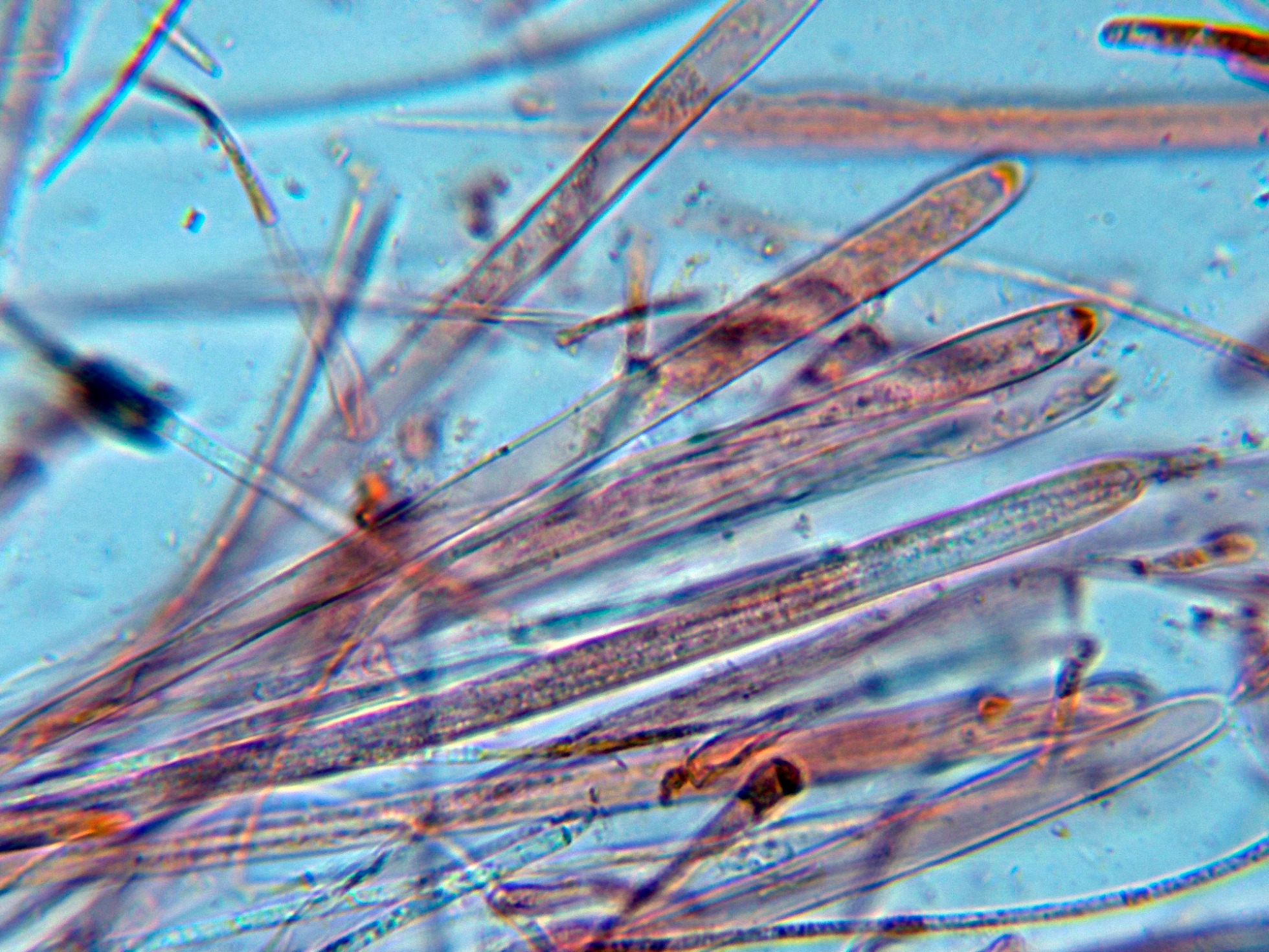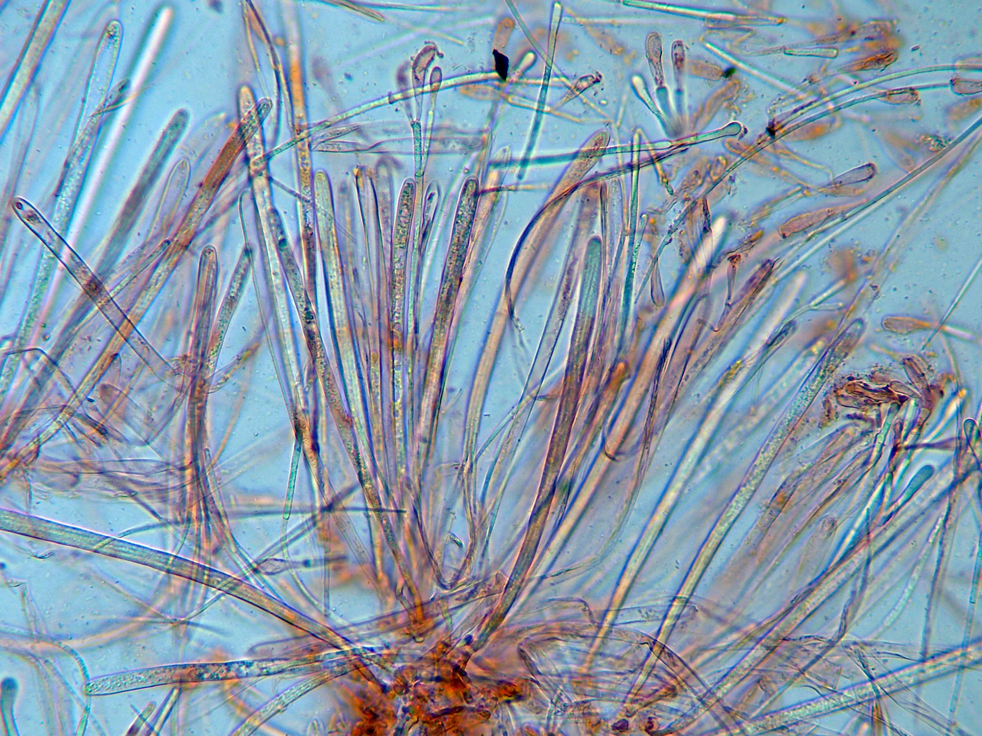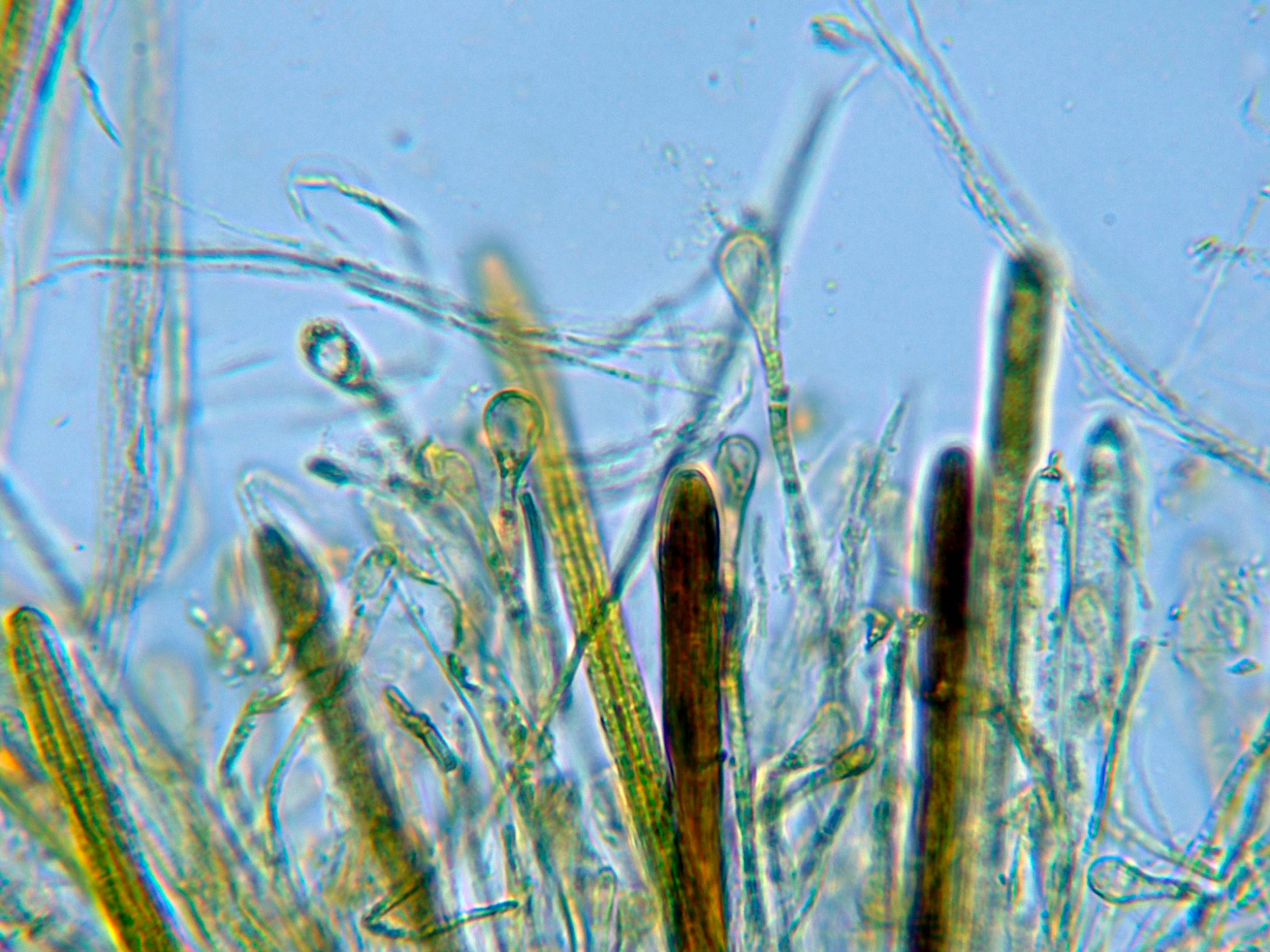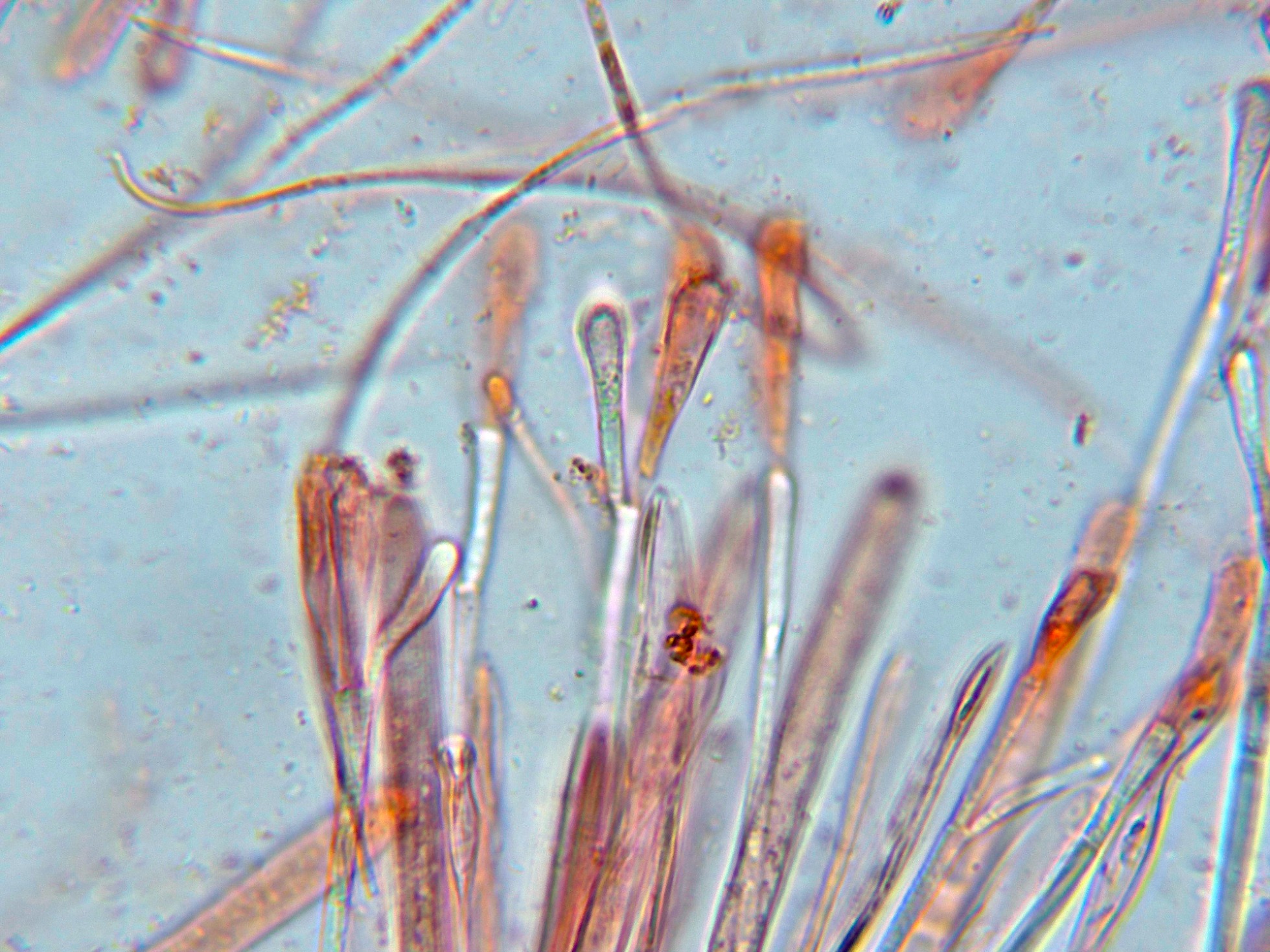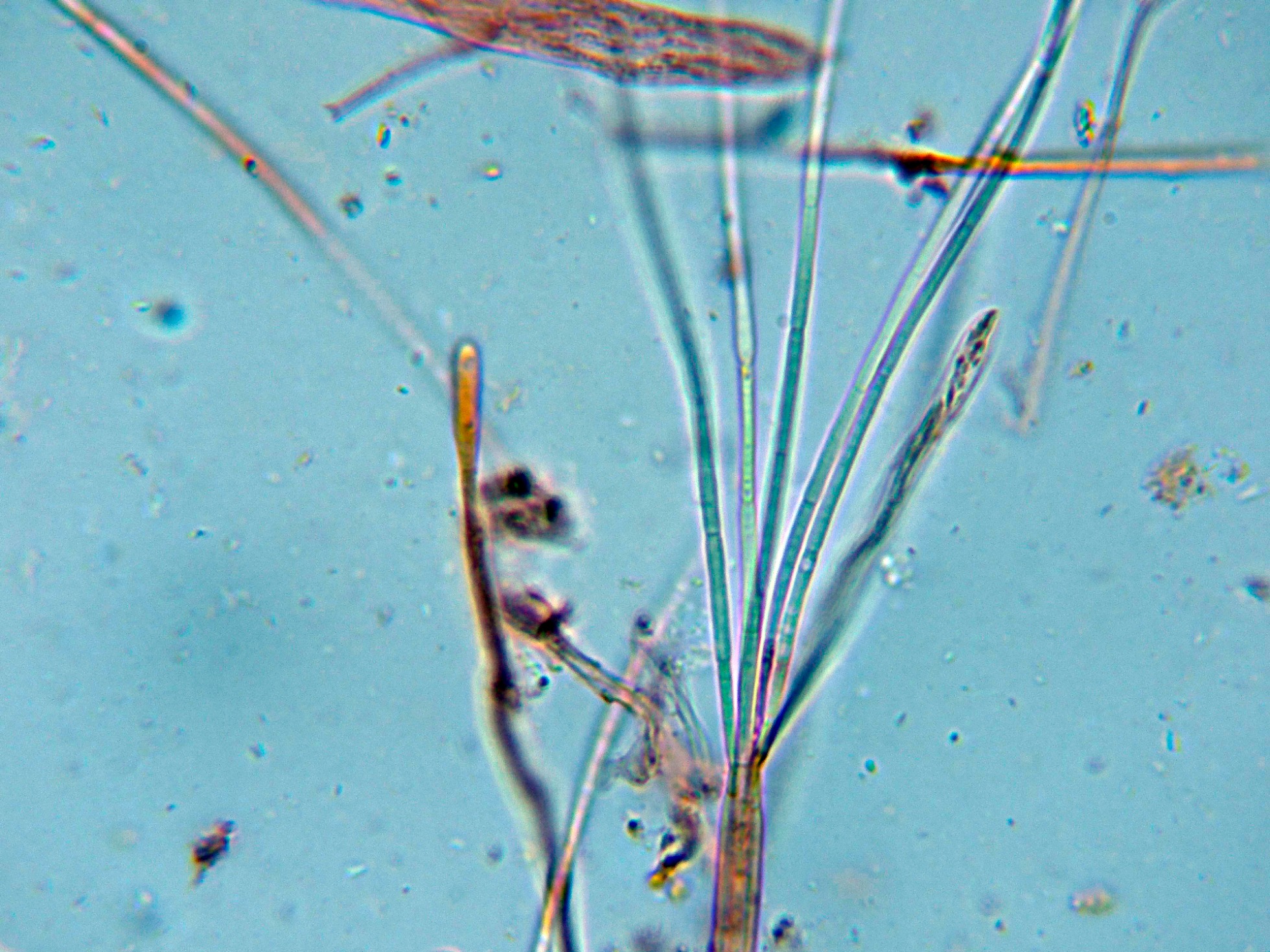 - Pocillum cesatii = Vibrissea cesatii (Mont.) Baral. Microscopía.