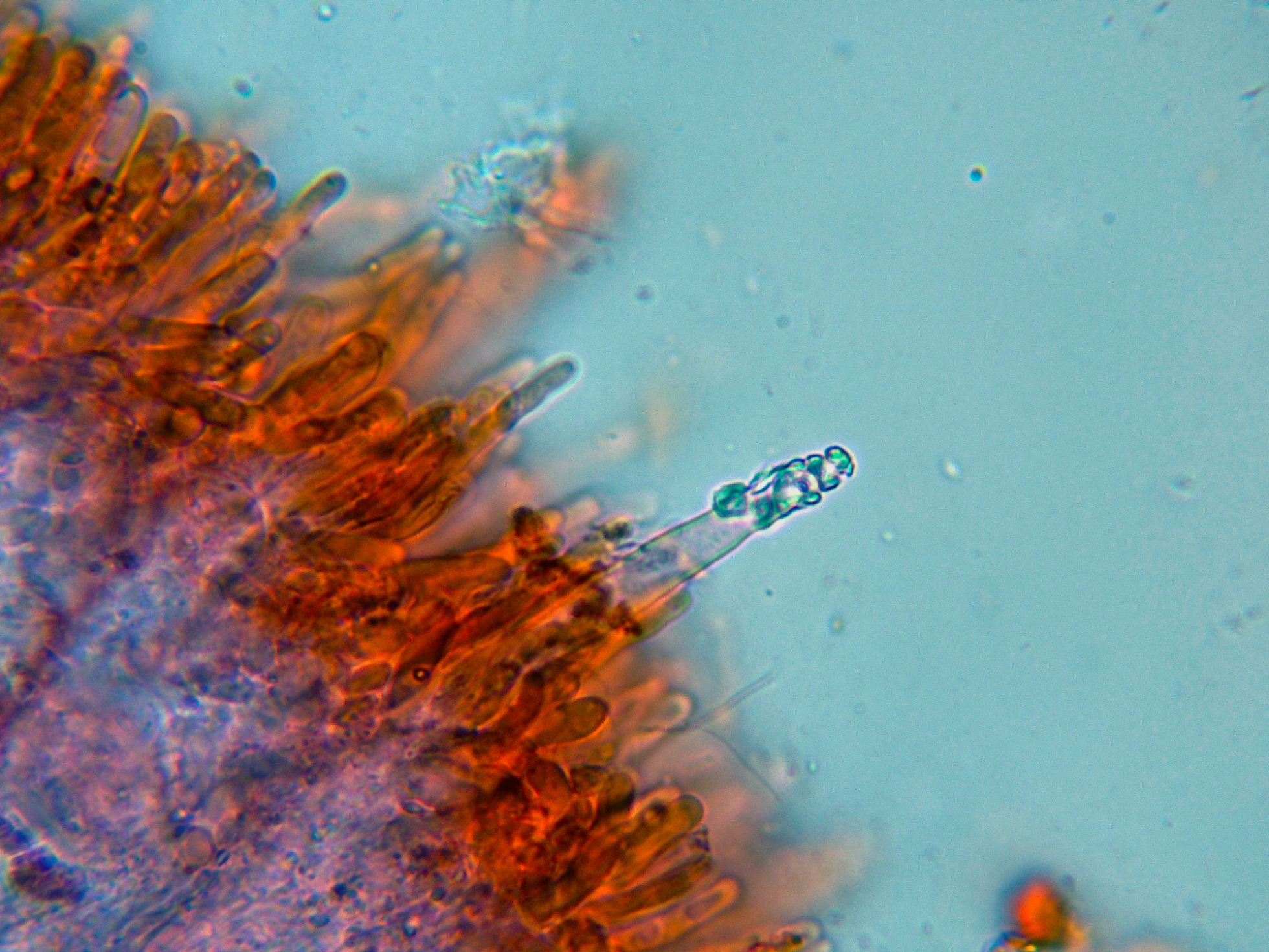 Al lado de los cistidios los basidios.