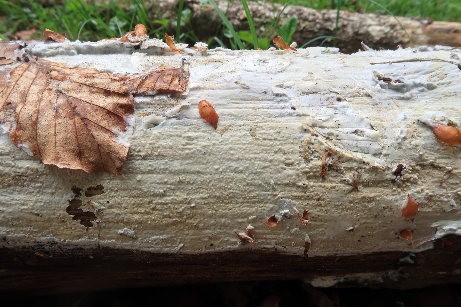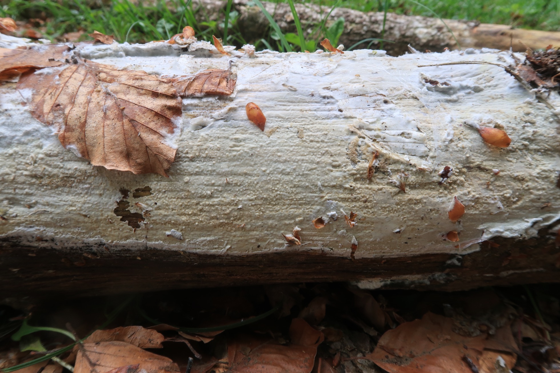 Un Phanerochaete típico de hayedos que no había visto hasta ahora, presumiblemente porqué no suelo visitar hayedos, ya que no abundan por mi zona y si quiero visitar alguno debo desplazarme muchos quilómetros, como ha sido este el caso (ida y vuelta 350 Km.).