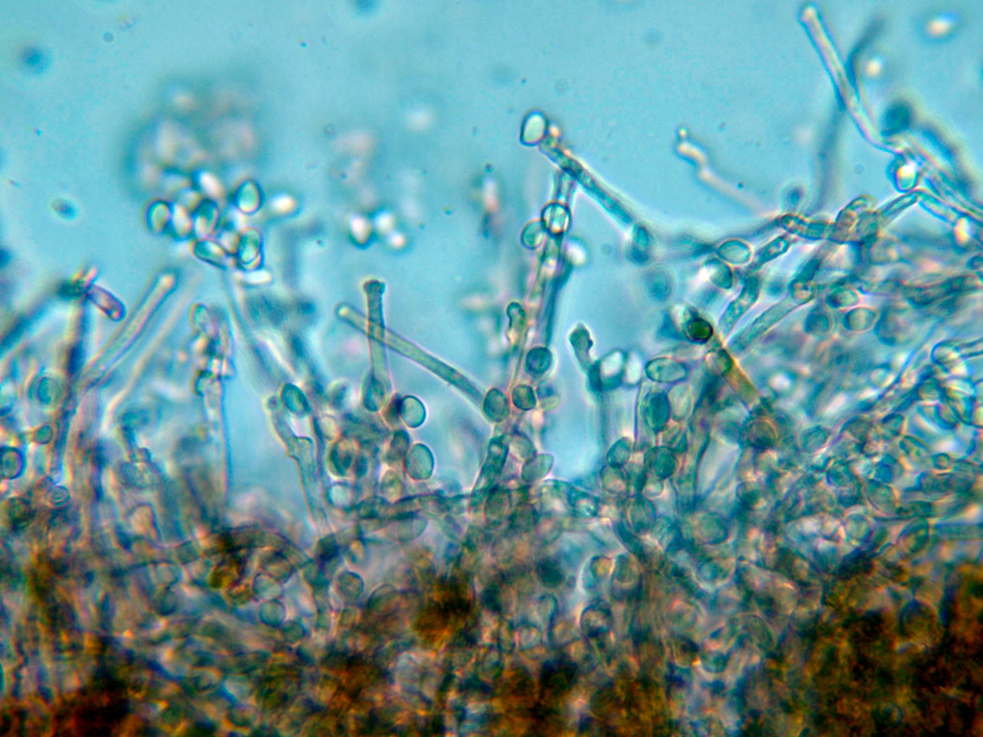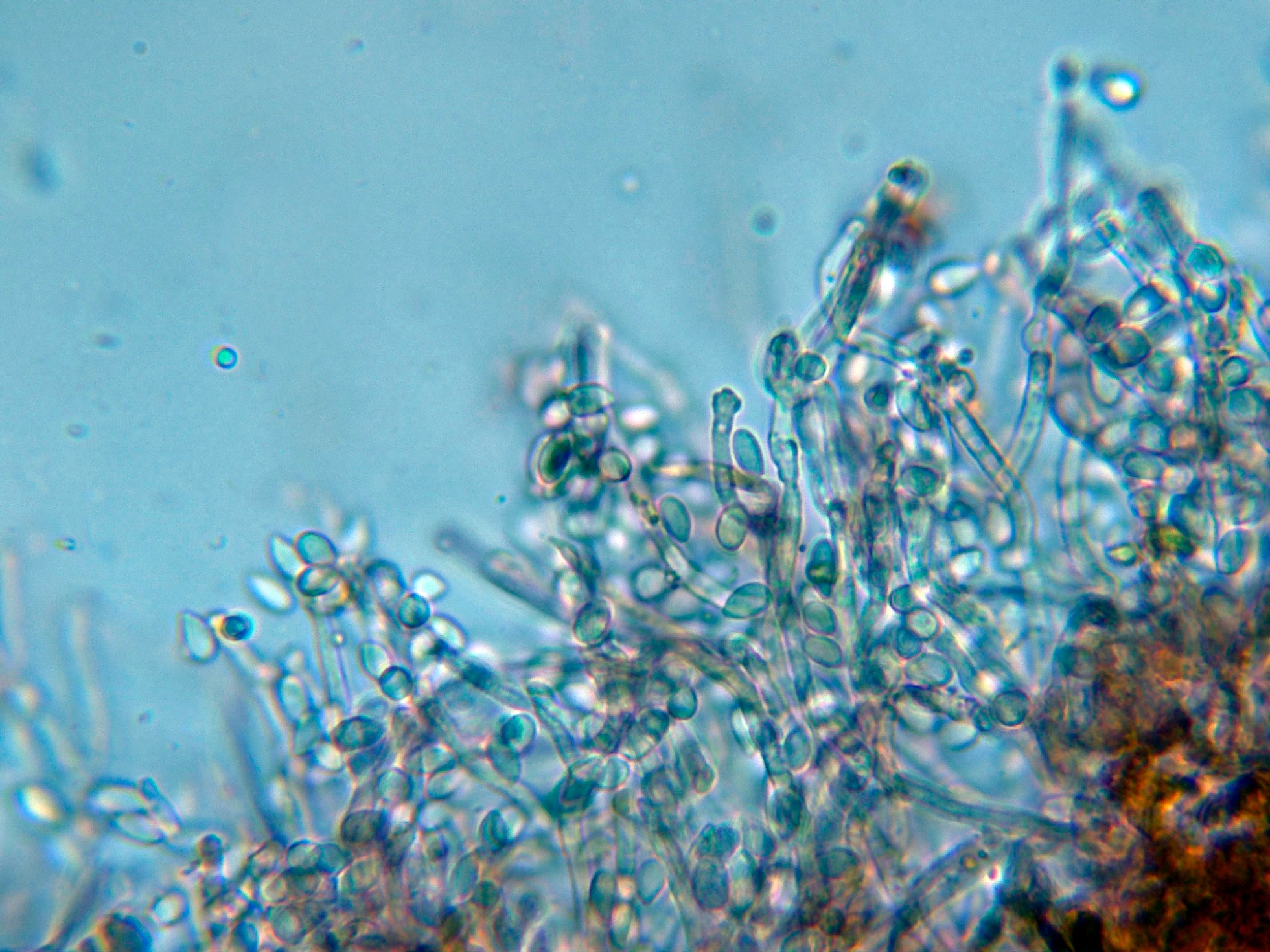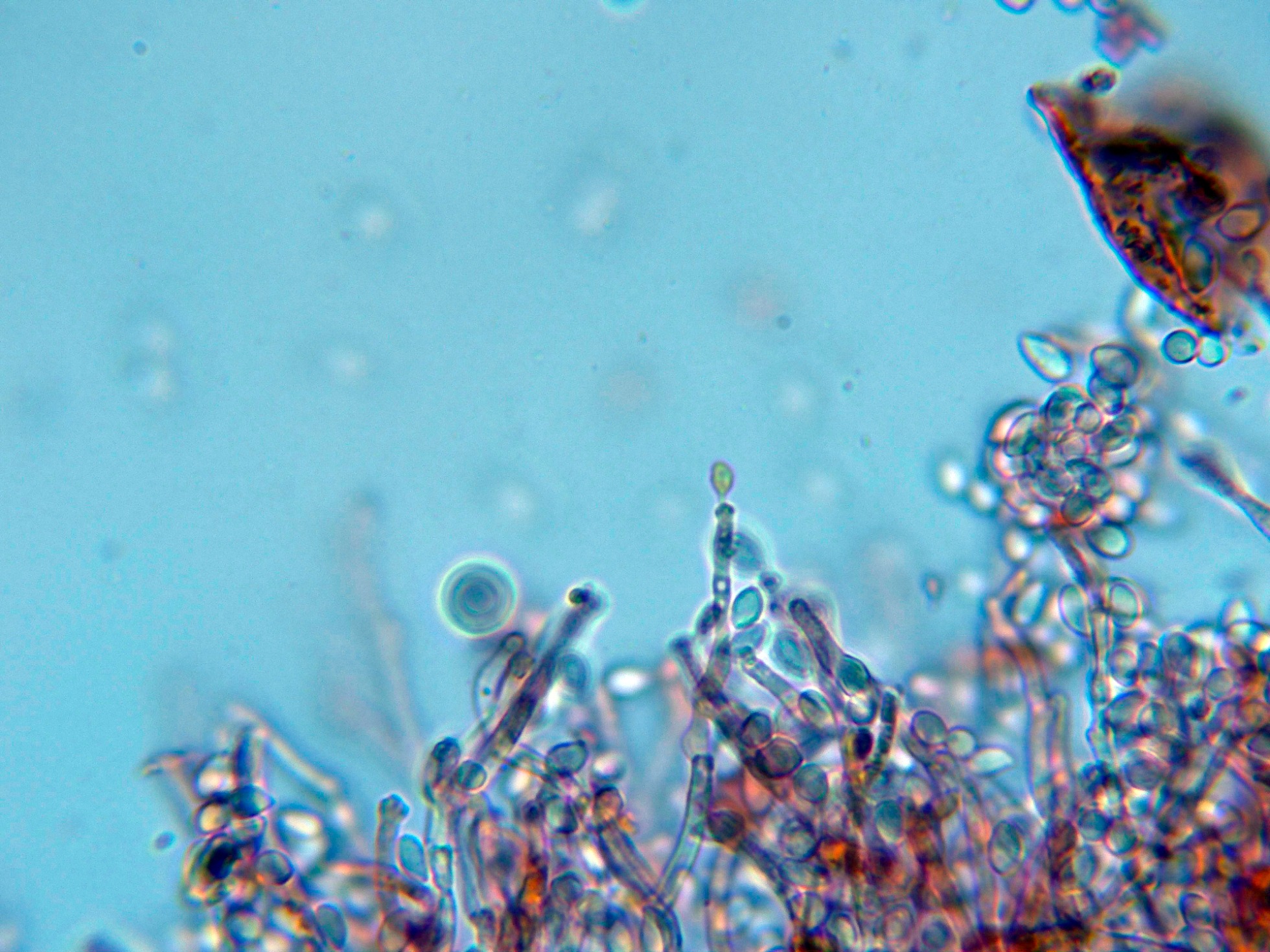 Medidas que entran bien dentro del rango de las que se indican en la Claves del género, donde se atribuyen a los conidios del Hypoxylon cohaerens unas medidas de 5-6 x 3-4 μm.