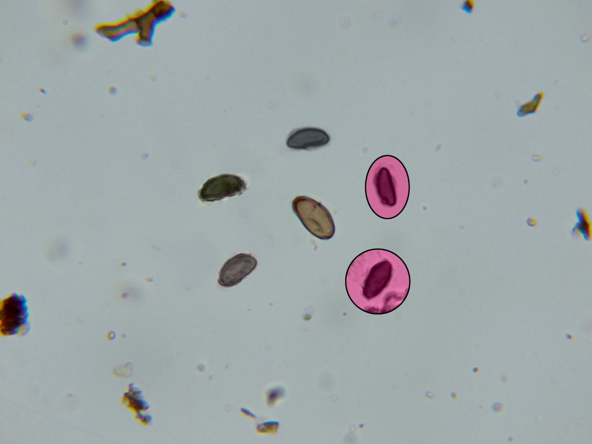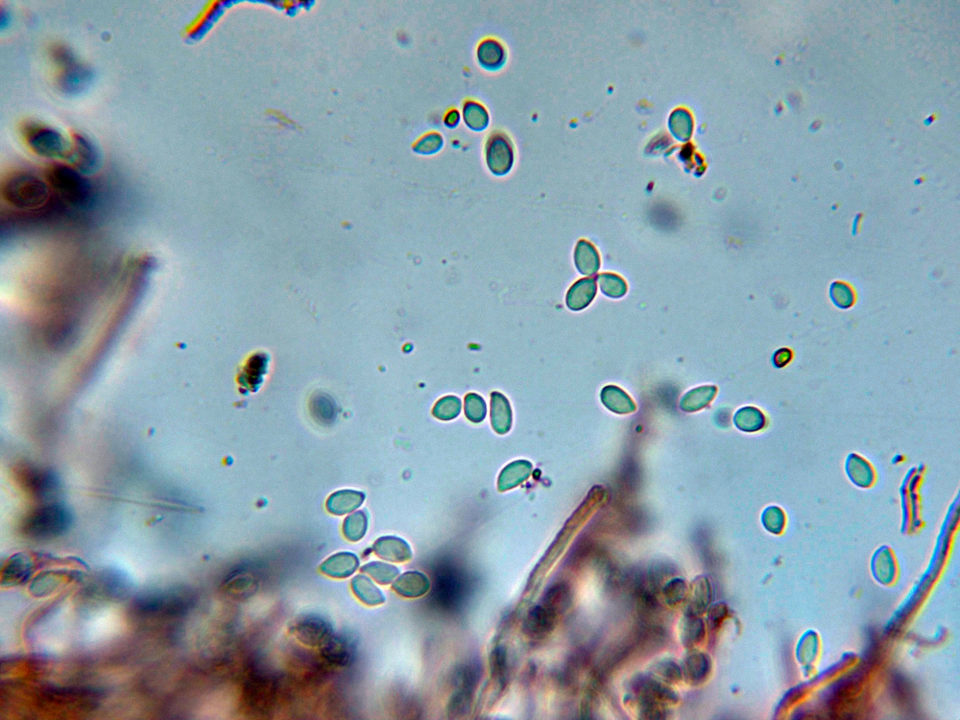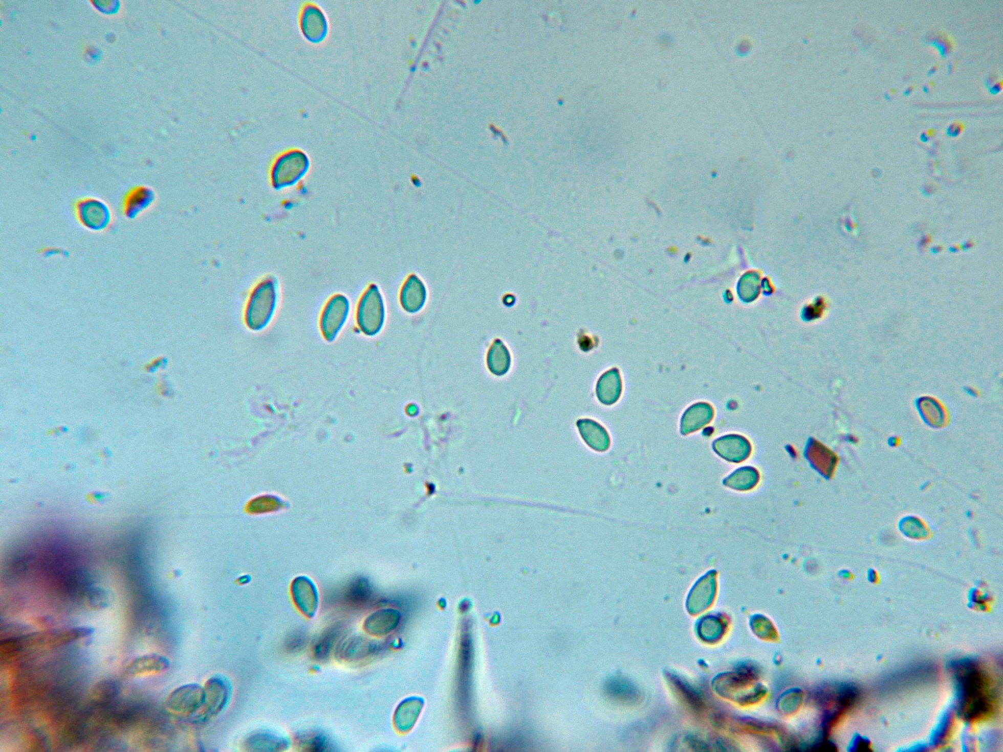 Solo pude observar unas pocas ascosporas ya muy maduras, buscando entre los ejemplares más viejos.