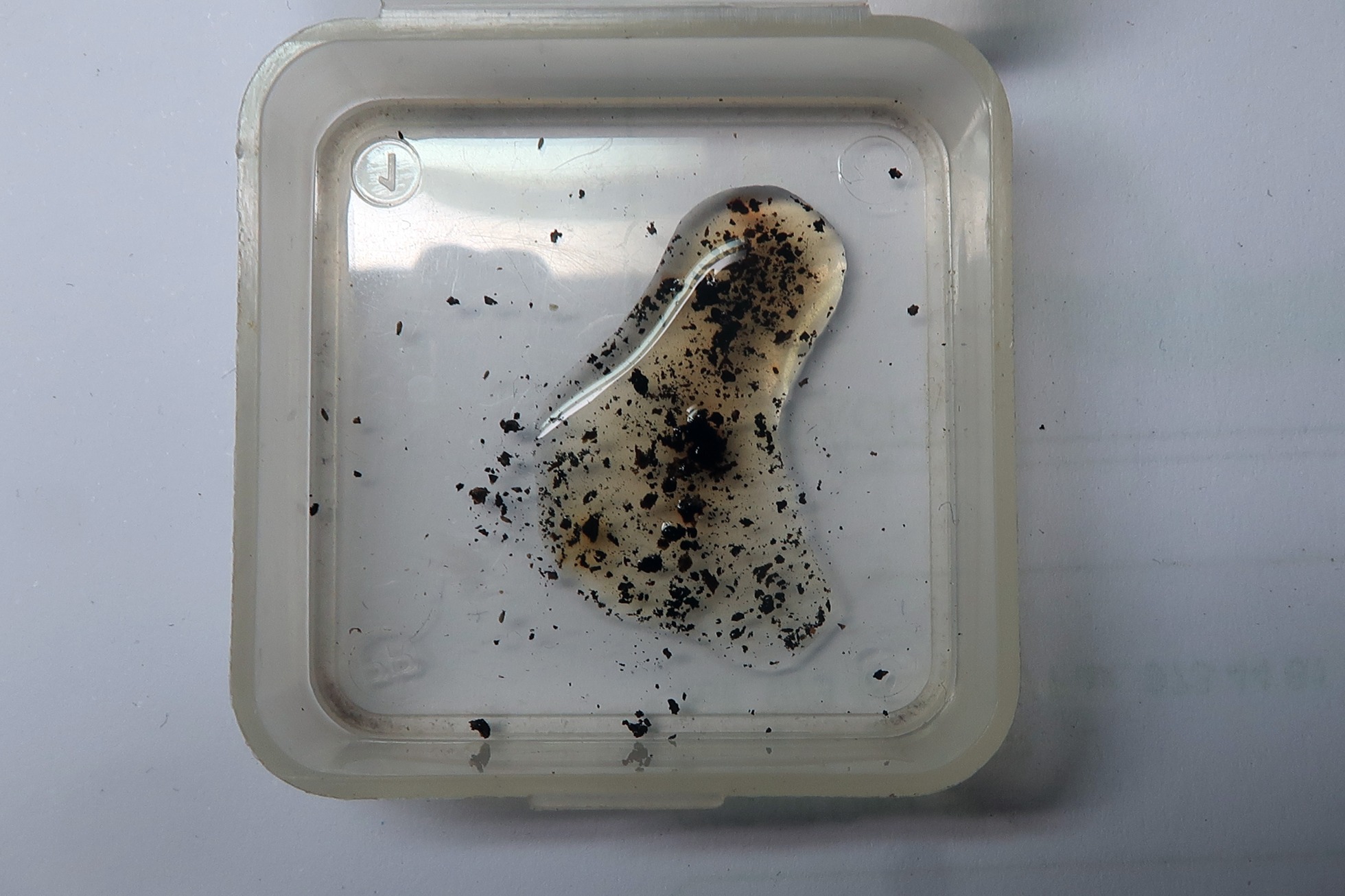 Prácticamente sin pigmento extraíble en KOH, solo un tenue color sepia.