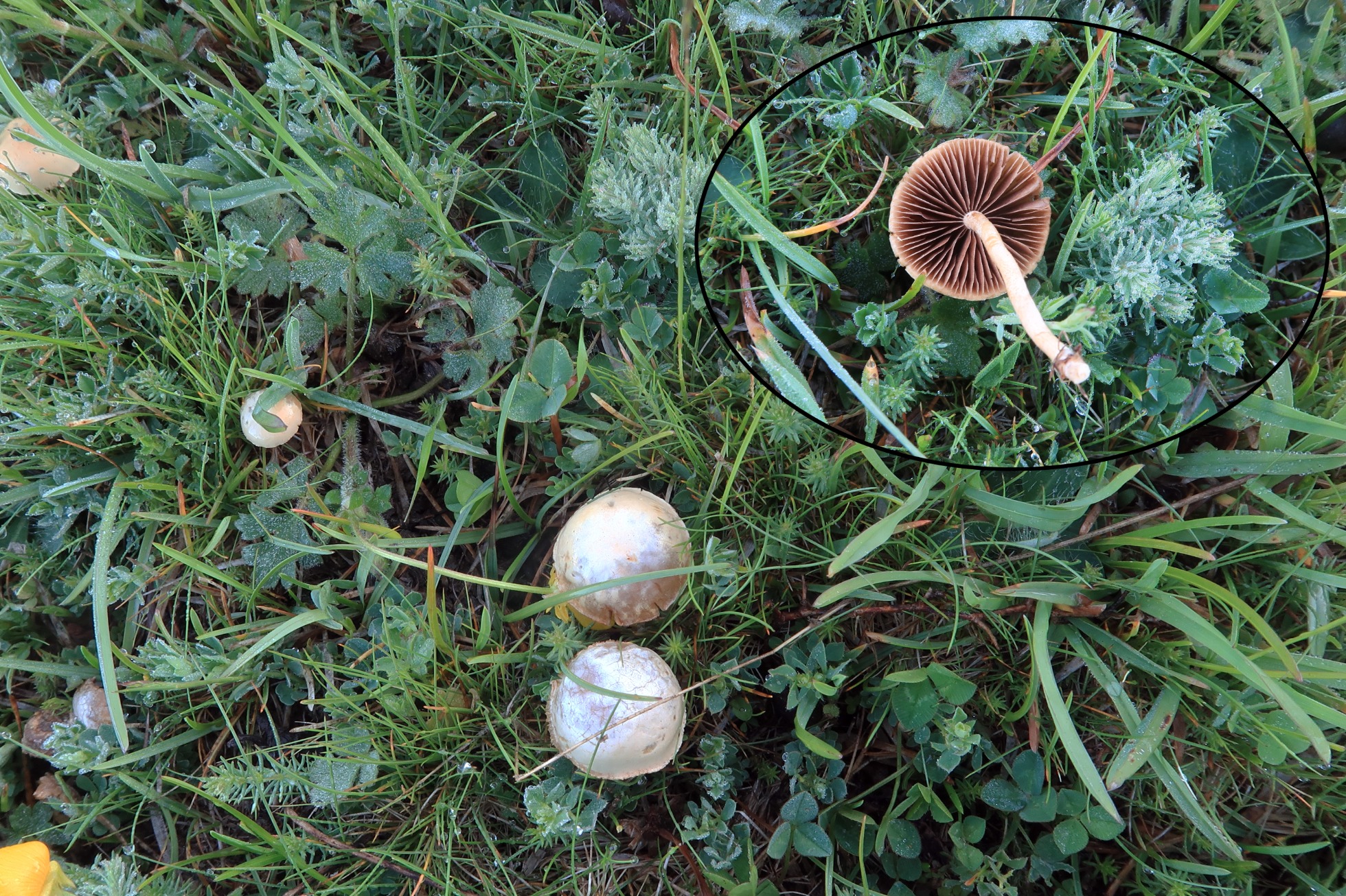 Un Agrocybe del pasado domingo brotando directamente sobre excrementos de ganado vacuno.