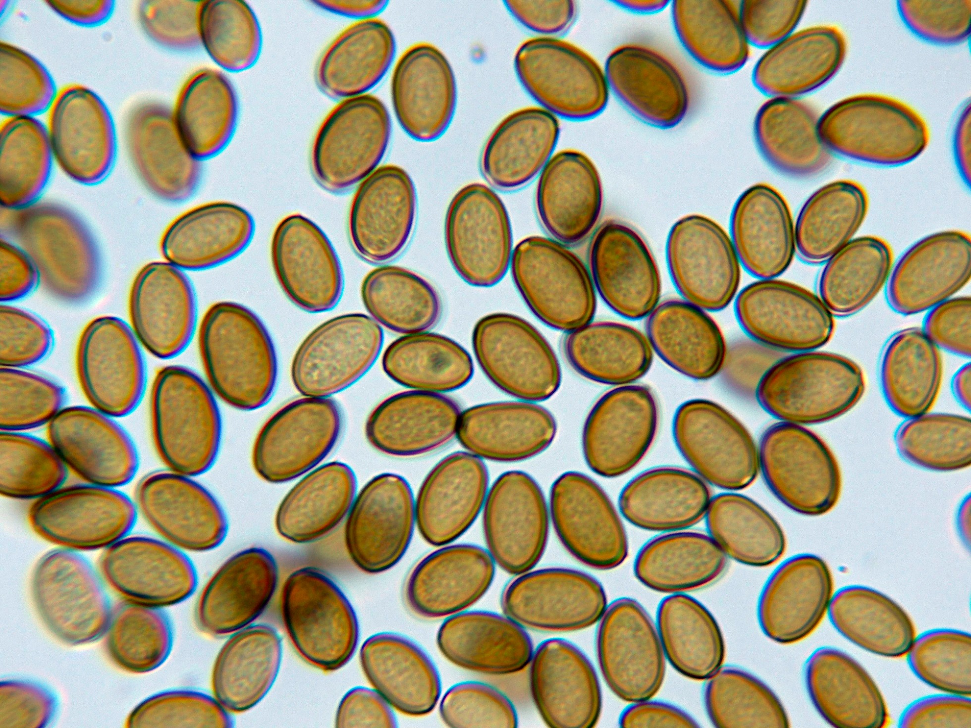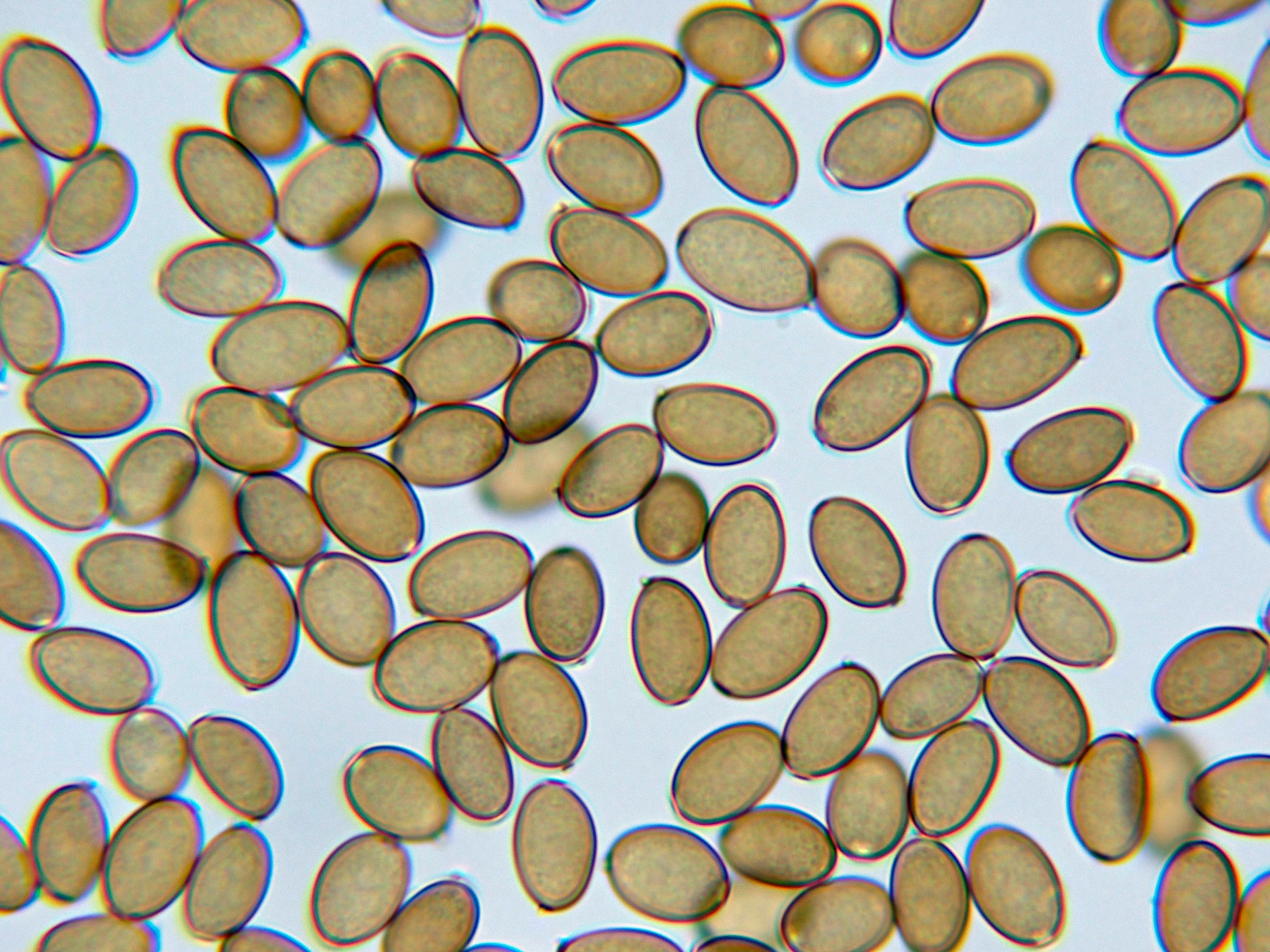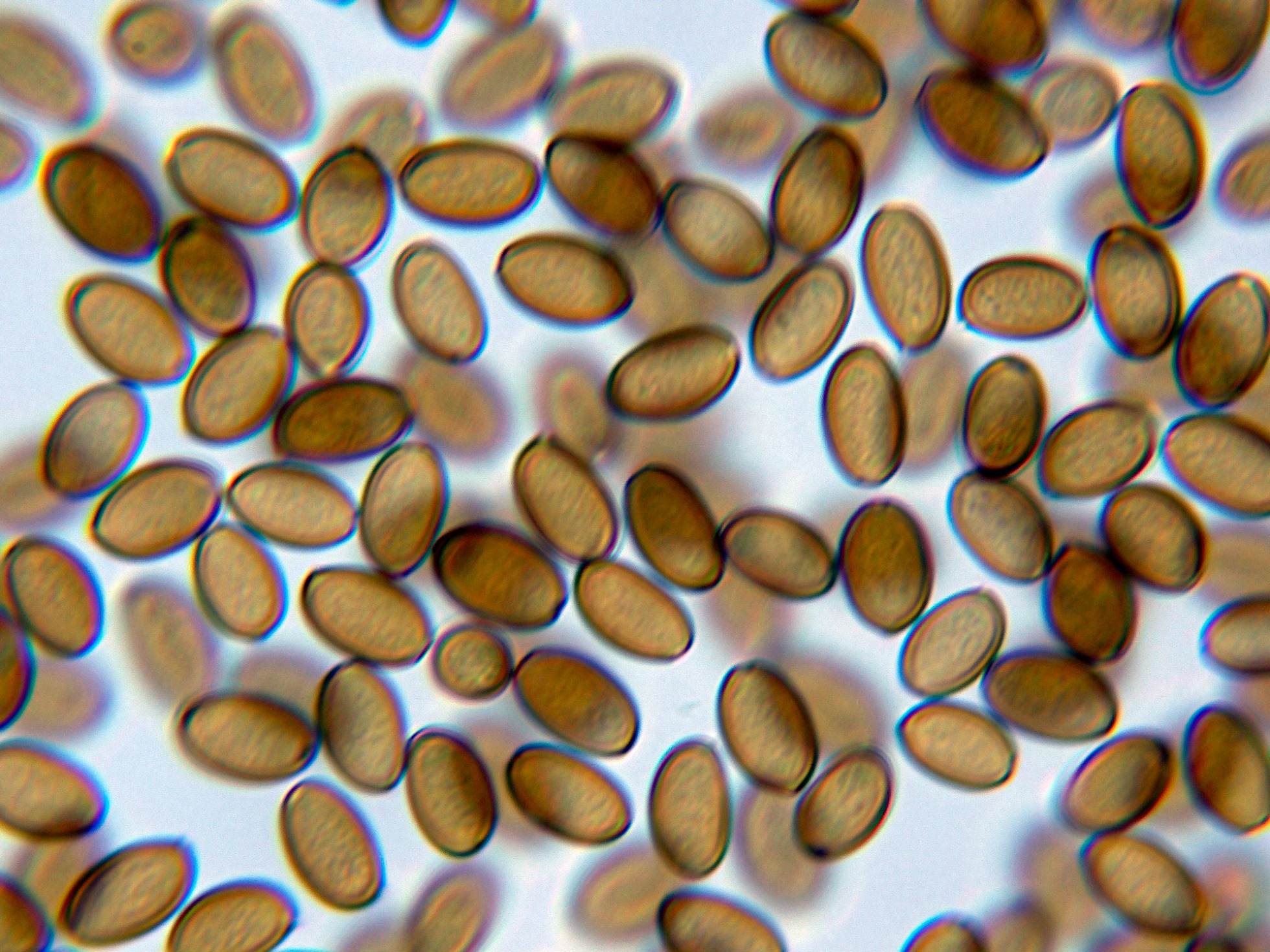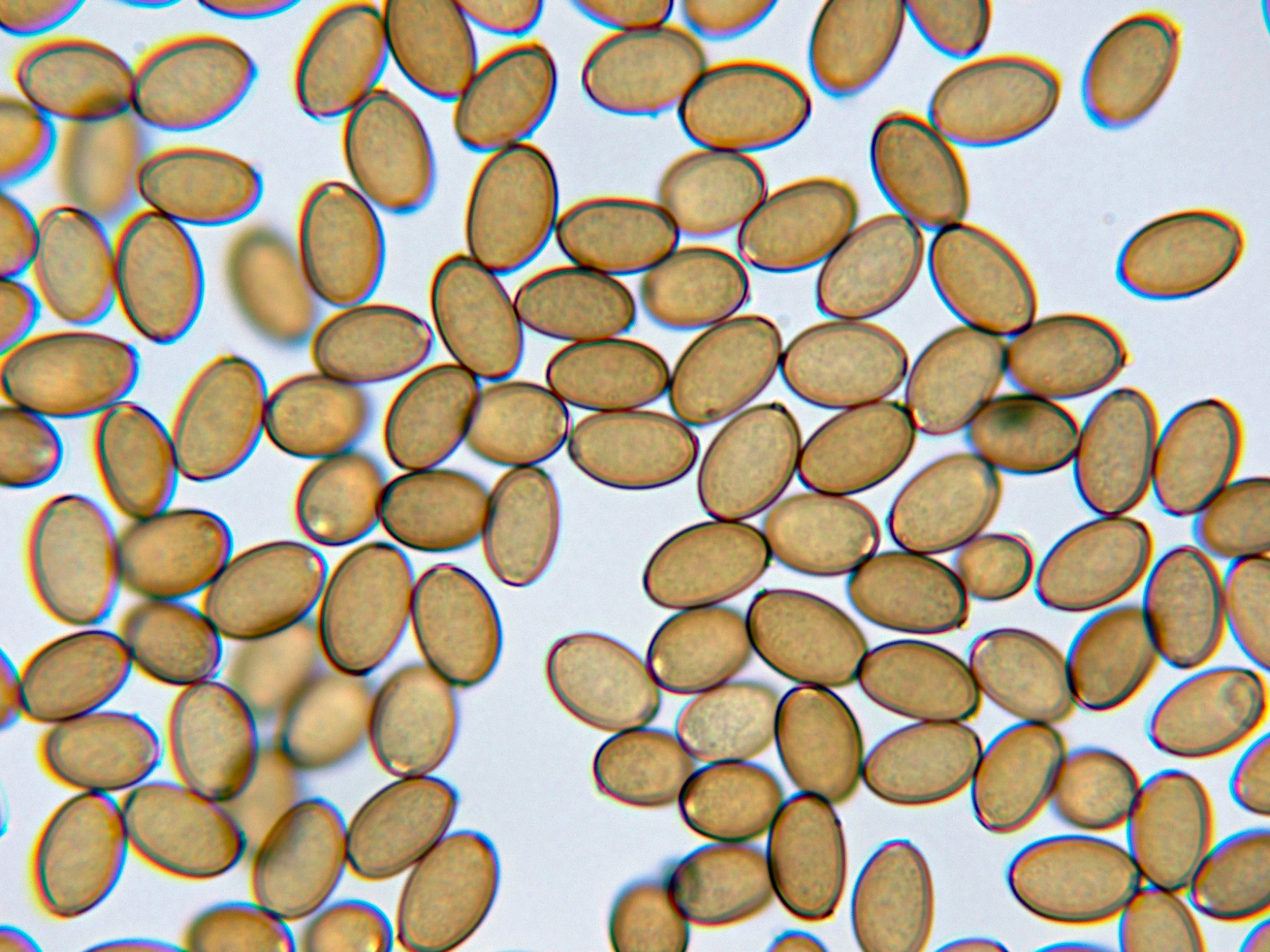 Las medidas esporales también estarían acordes con llas citadas en Asturnatura, donde indican unas medidas de 12,7-18 x 8.8-12 µm., ahí dejo el enlace: