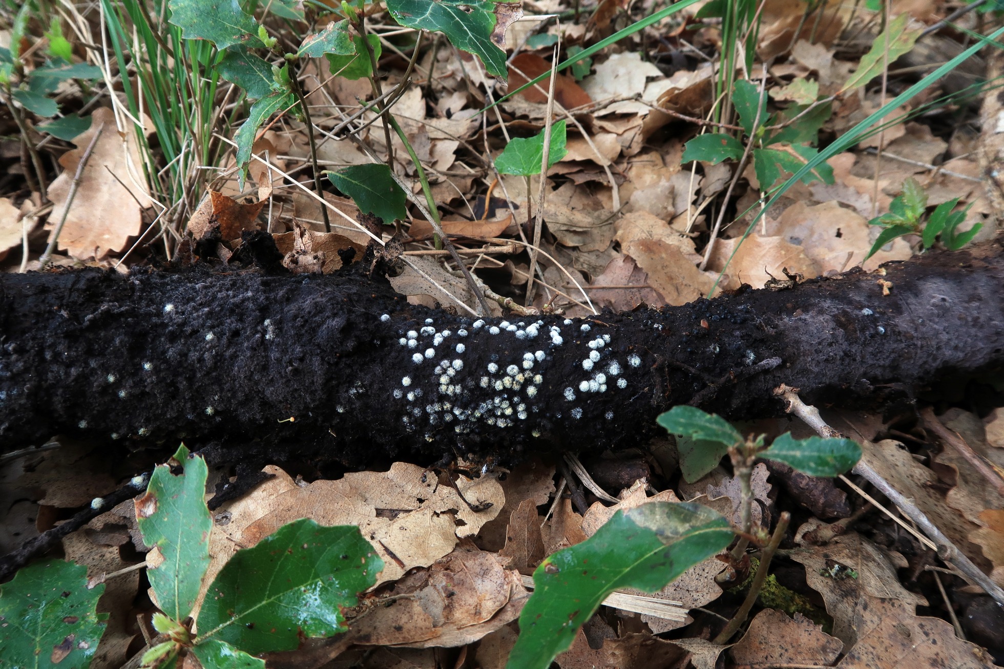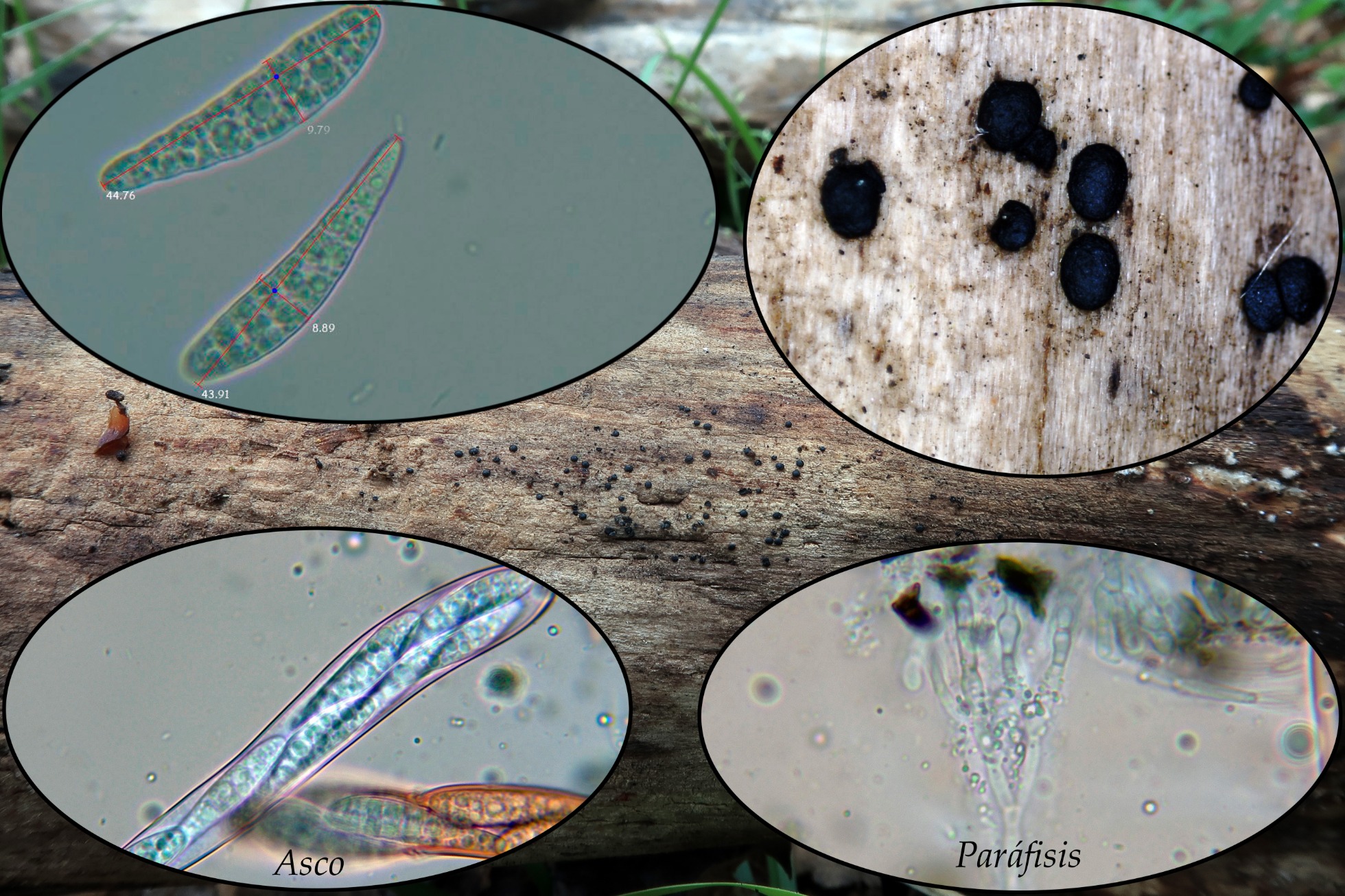El hongo parasitando unos estromas de Rosellinia spp.