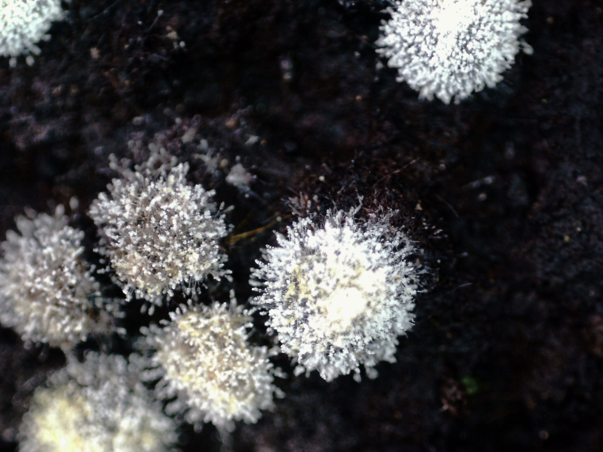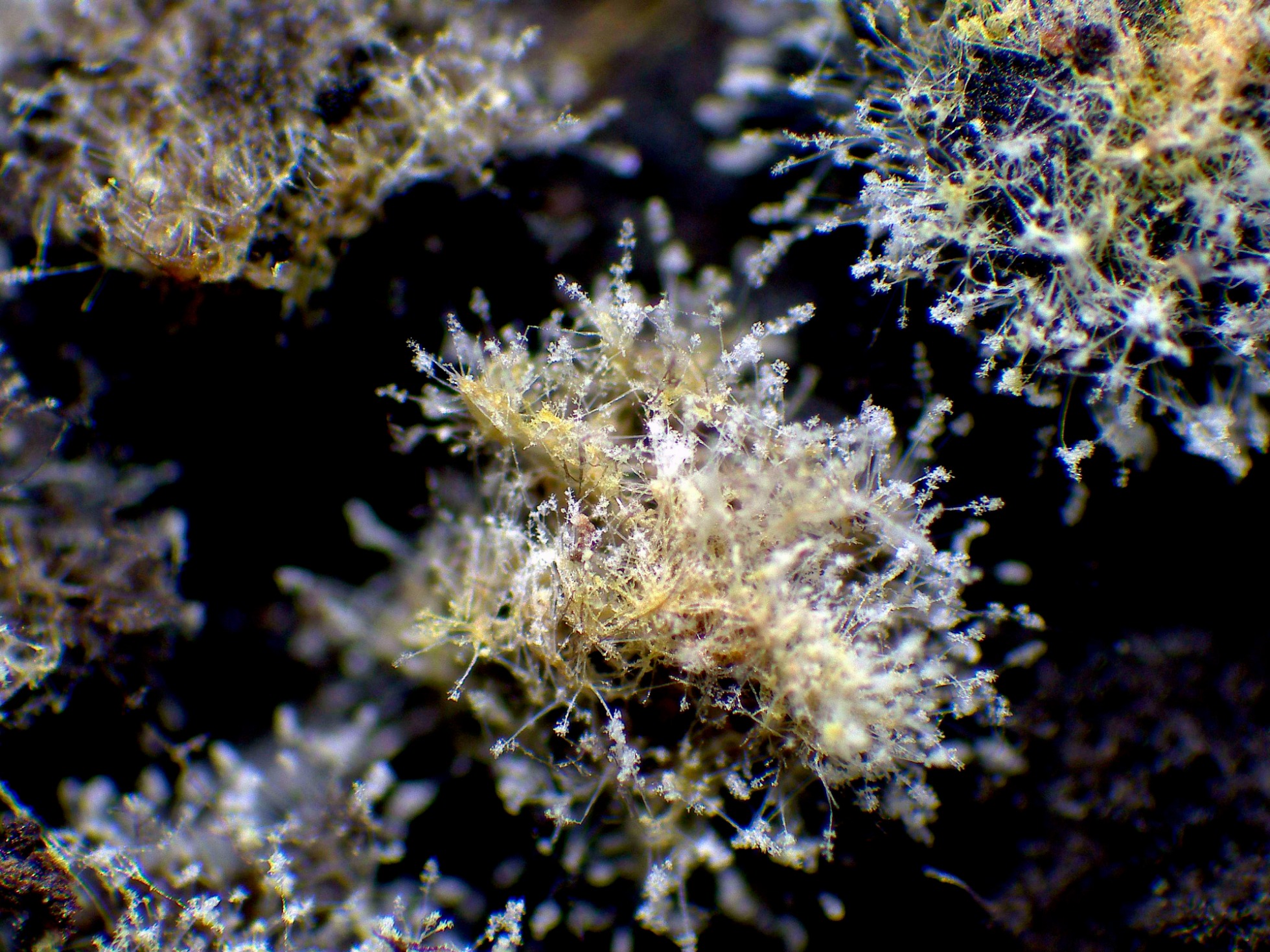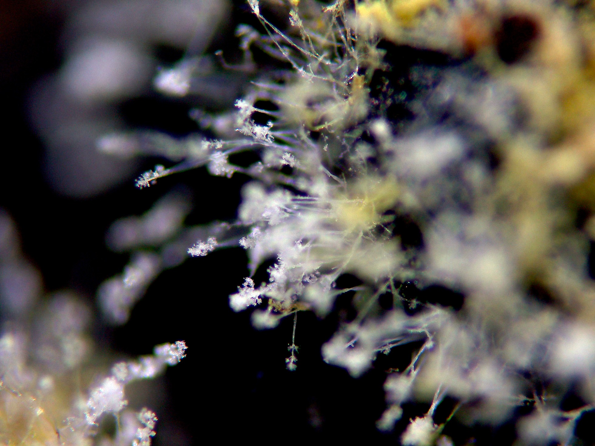 Los pequeños conidióforos a 1000 aumentos, ampliando la imágen.