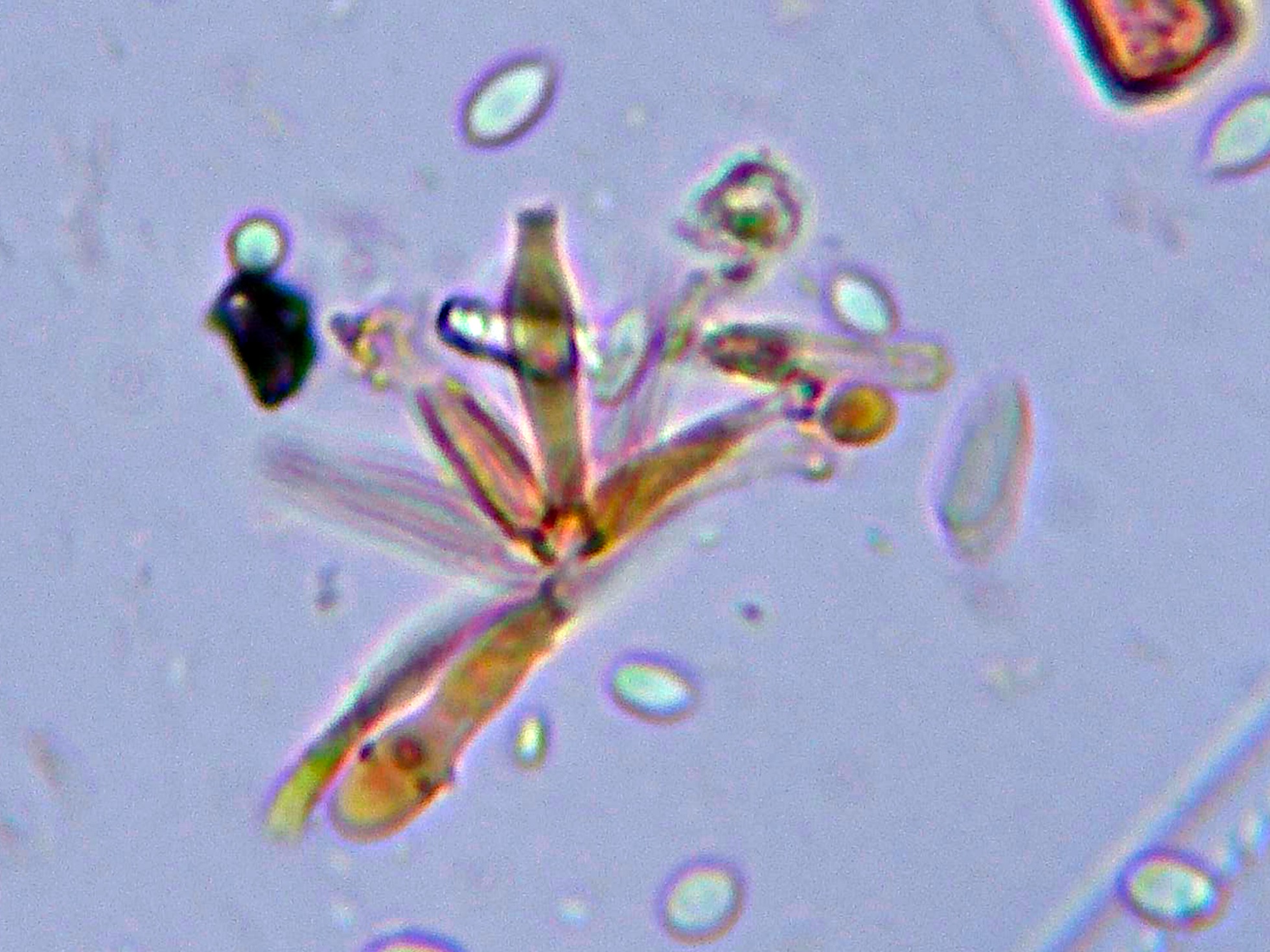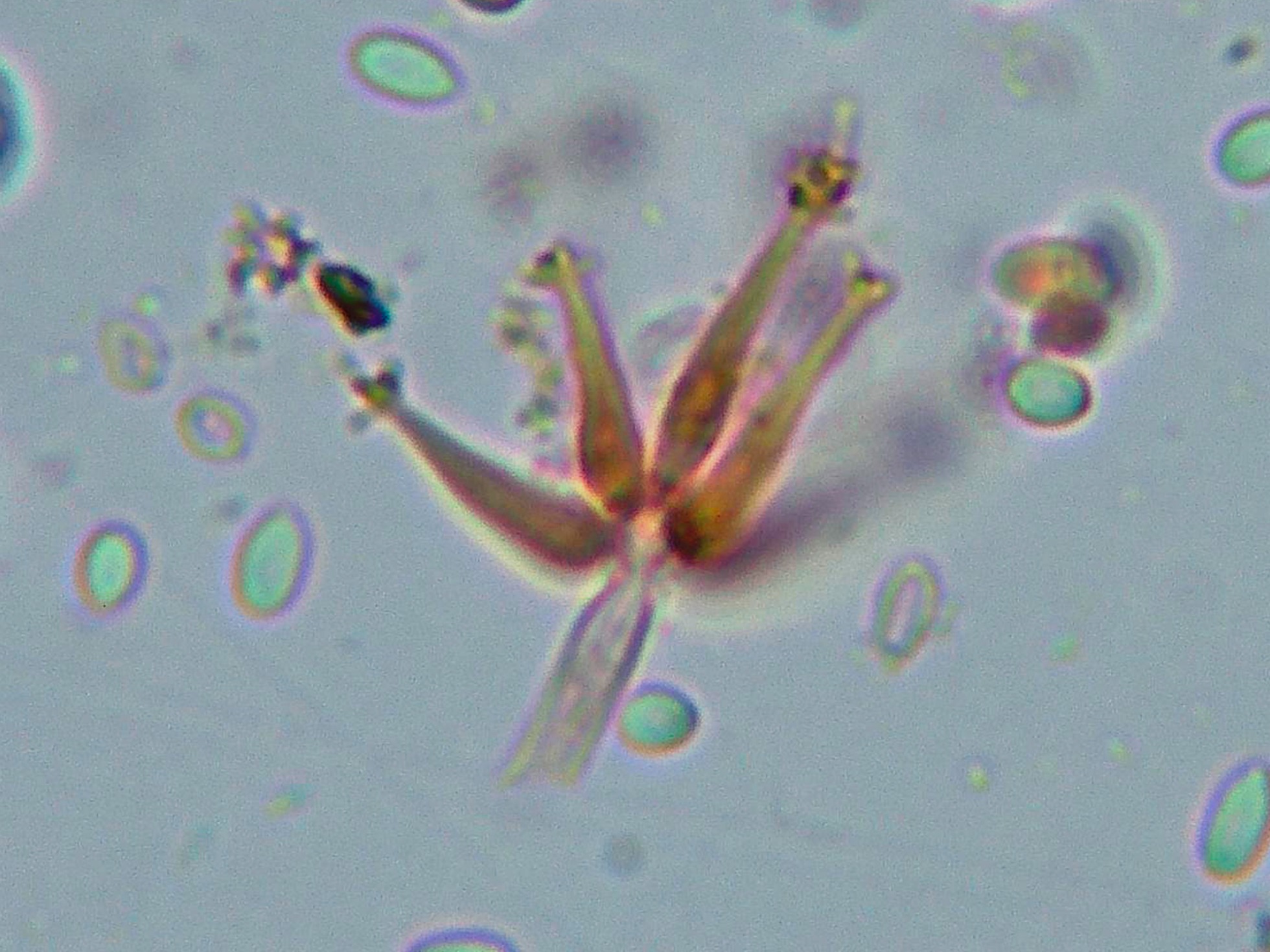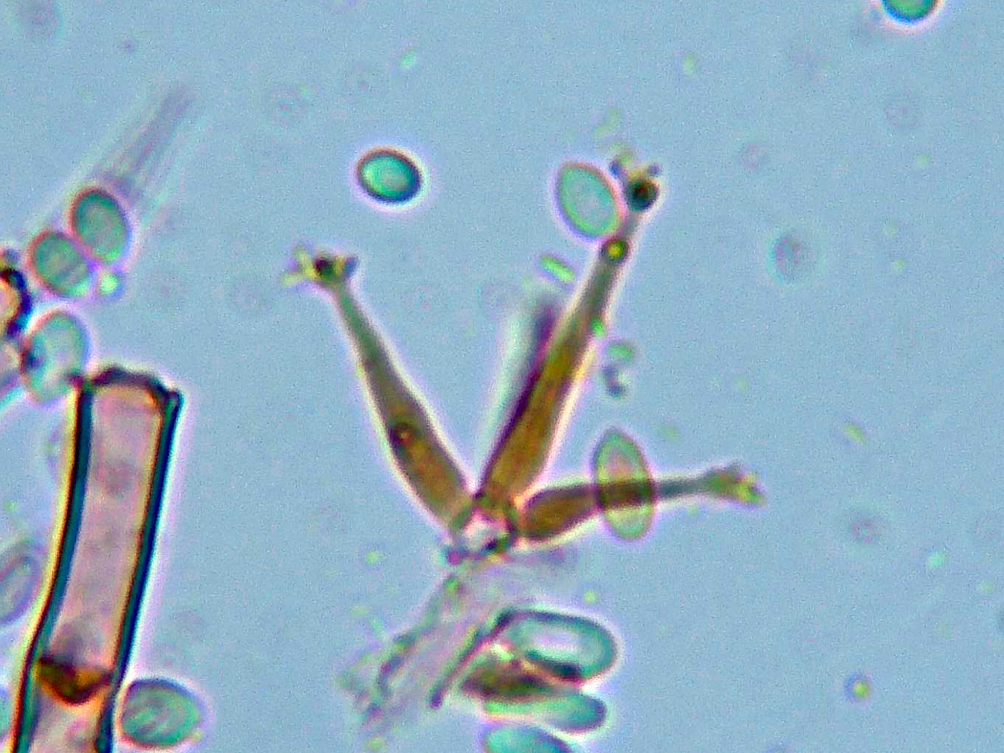 El primero es un hongo que si bien creo haberlo estudiado ya en varias ocasiones, en todas ellas me surgieron dudas en cuanto a su correcta identidad, cuando no me encajaba el huésped, no veía clara la conidiogénesis, y cuando cuadraba lo anterior ya no lo hacía las medidas y morfología de los conidios, ahora si que parece que todos los parámetros entran bien dentro de lo que se podría considerar como Calcarisporium arbuscula.