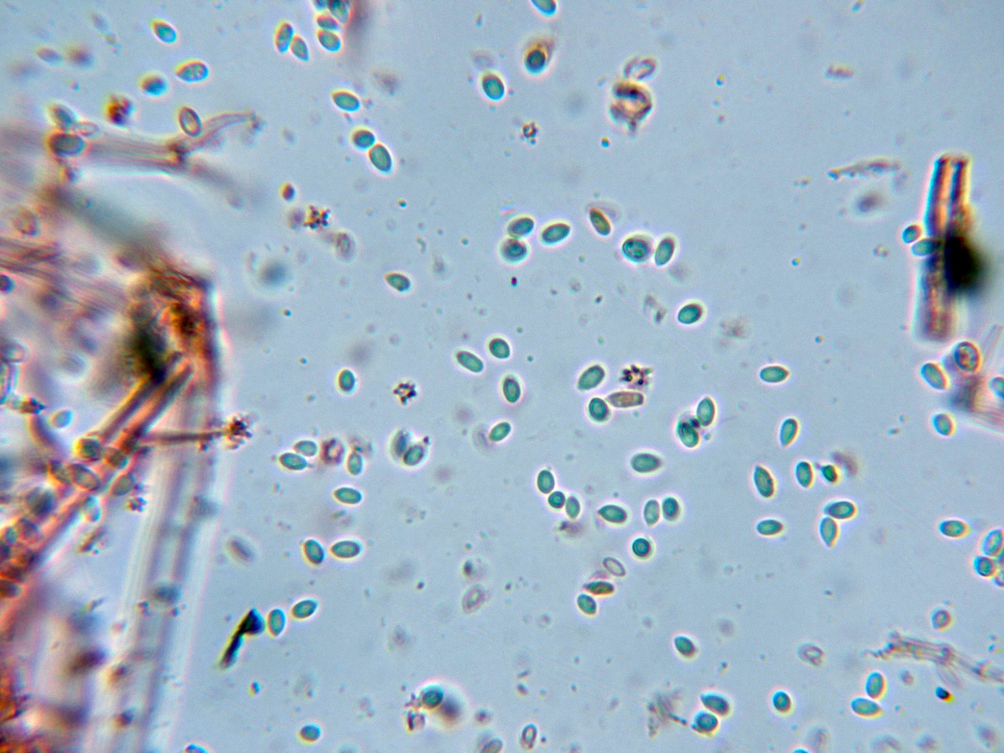 En este enésimo estudio realizado a la especie, sus esporas con unas medidas de: