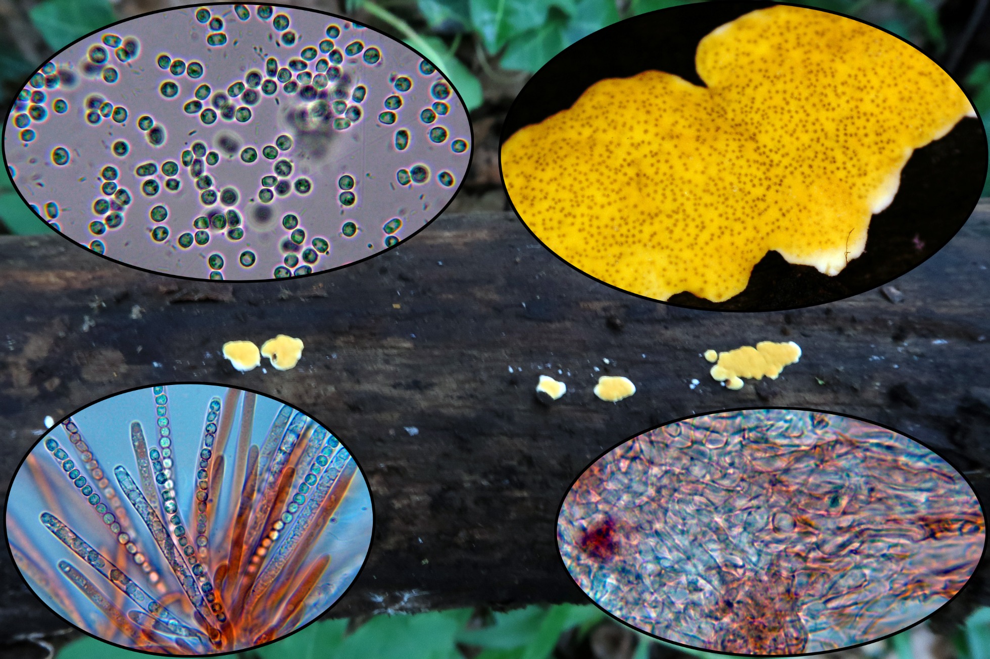 Muchas gracias a los dos, por fin he podido solucionar las dudas que tenía acerca del Calcarisporium. La Trametes troggi es muy abundante por los lugares donde me muevo, pero es que nunca la había visto con esta característica del comportamiento de los poros al roce, fue lo único que me llamó la atención y esto me animó a estudiarla de nuevo.
